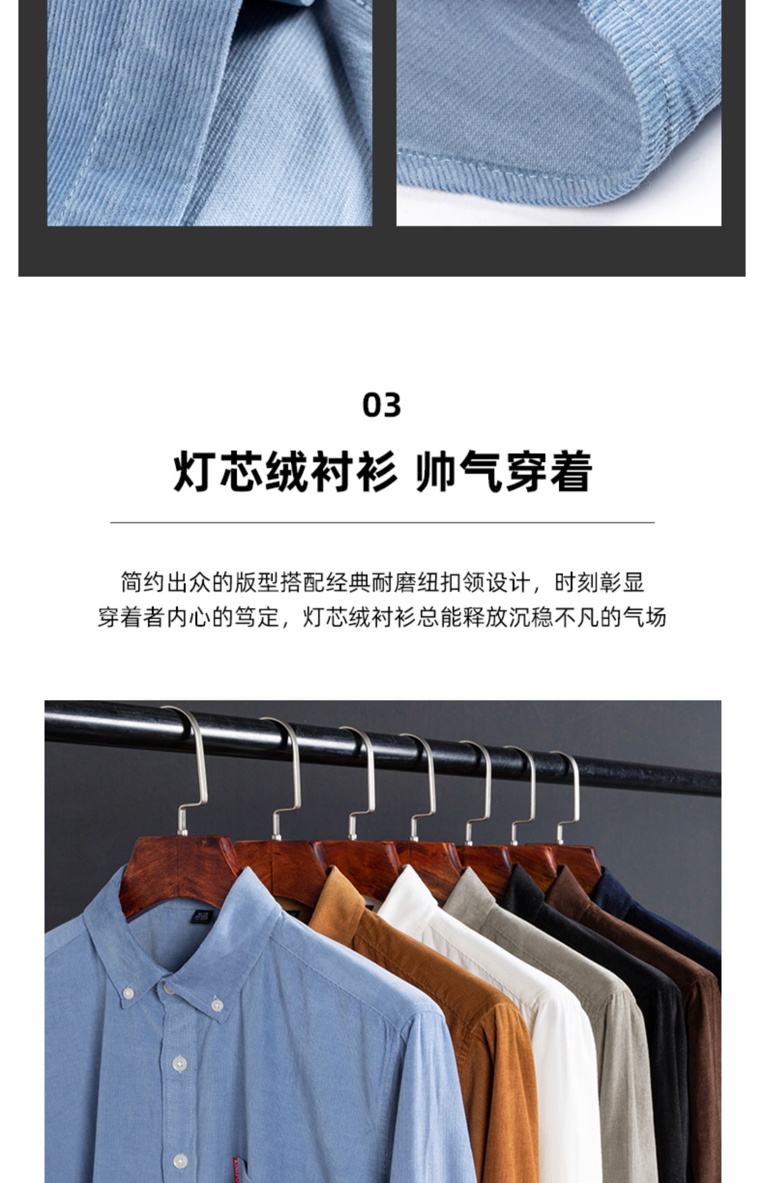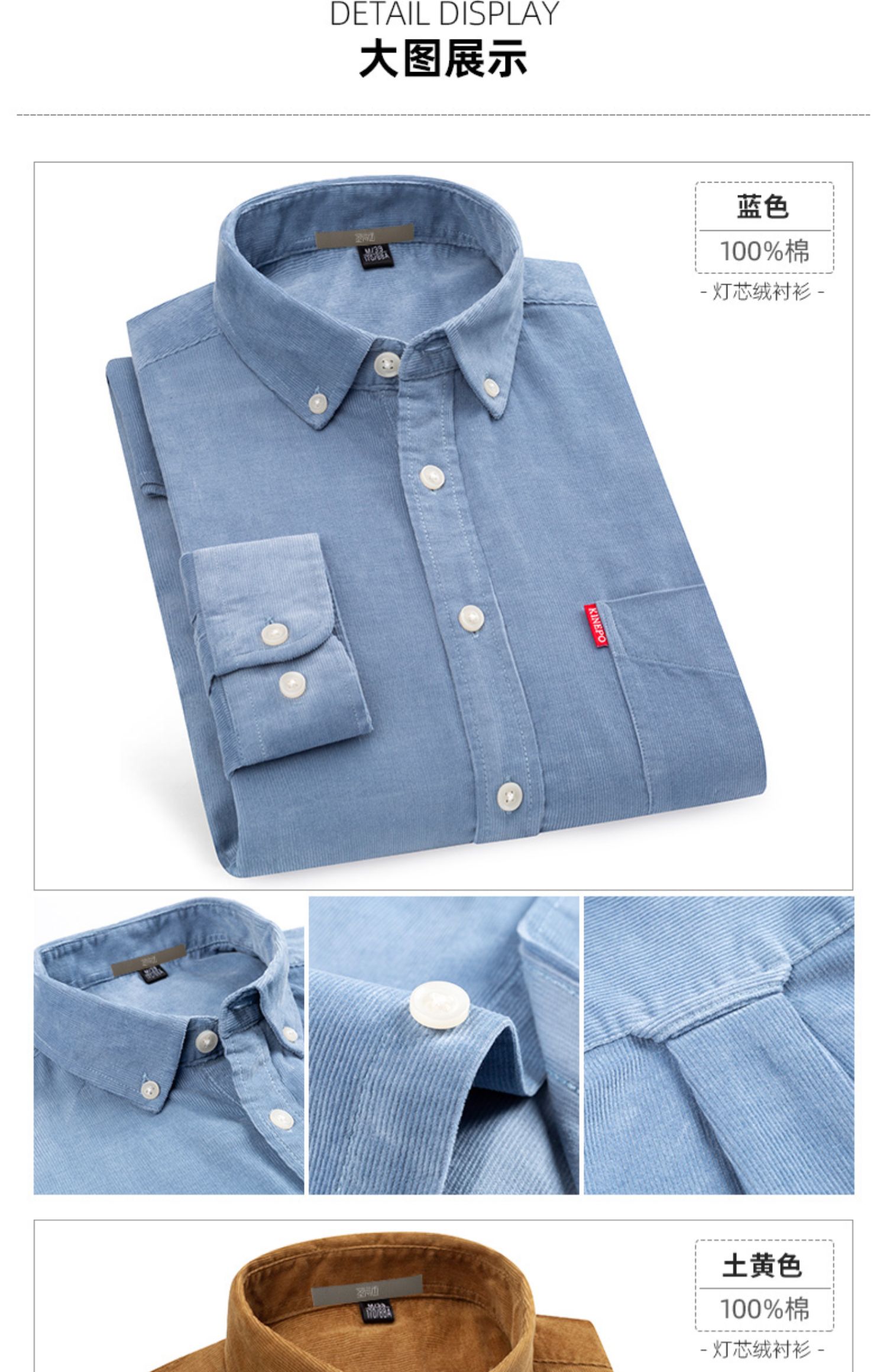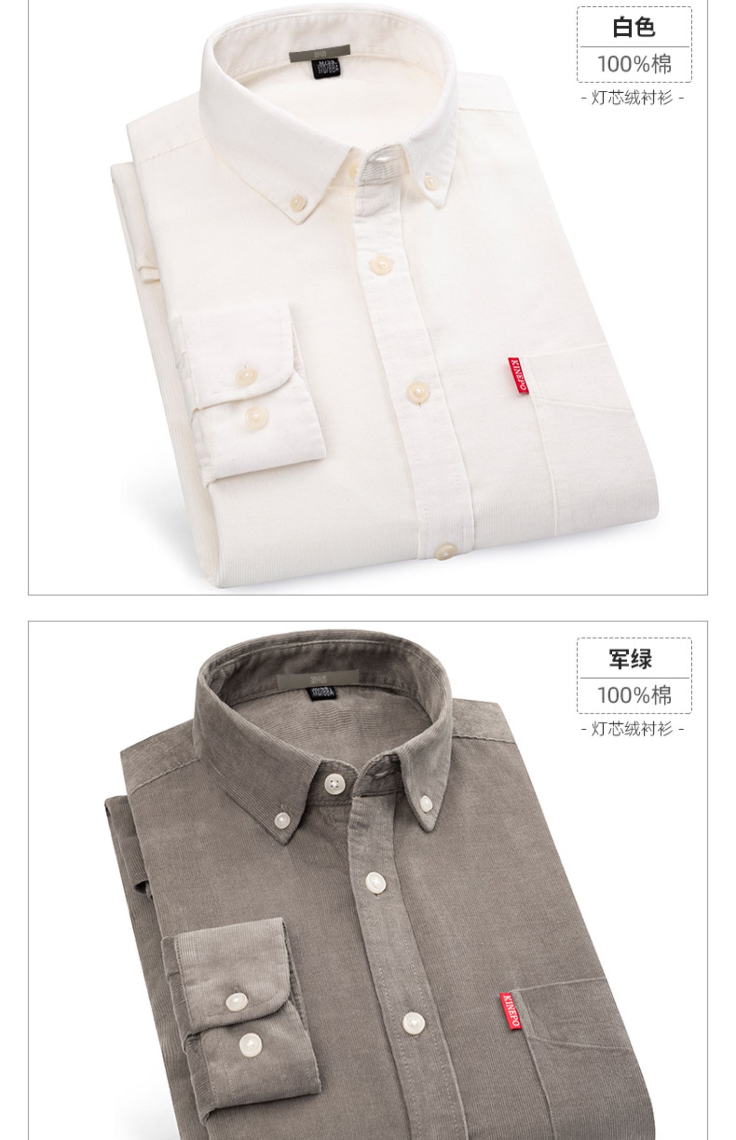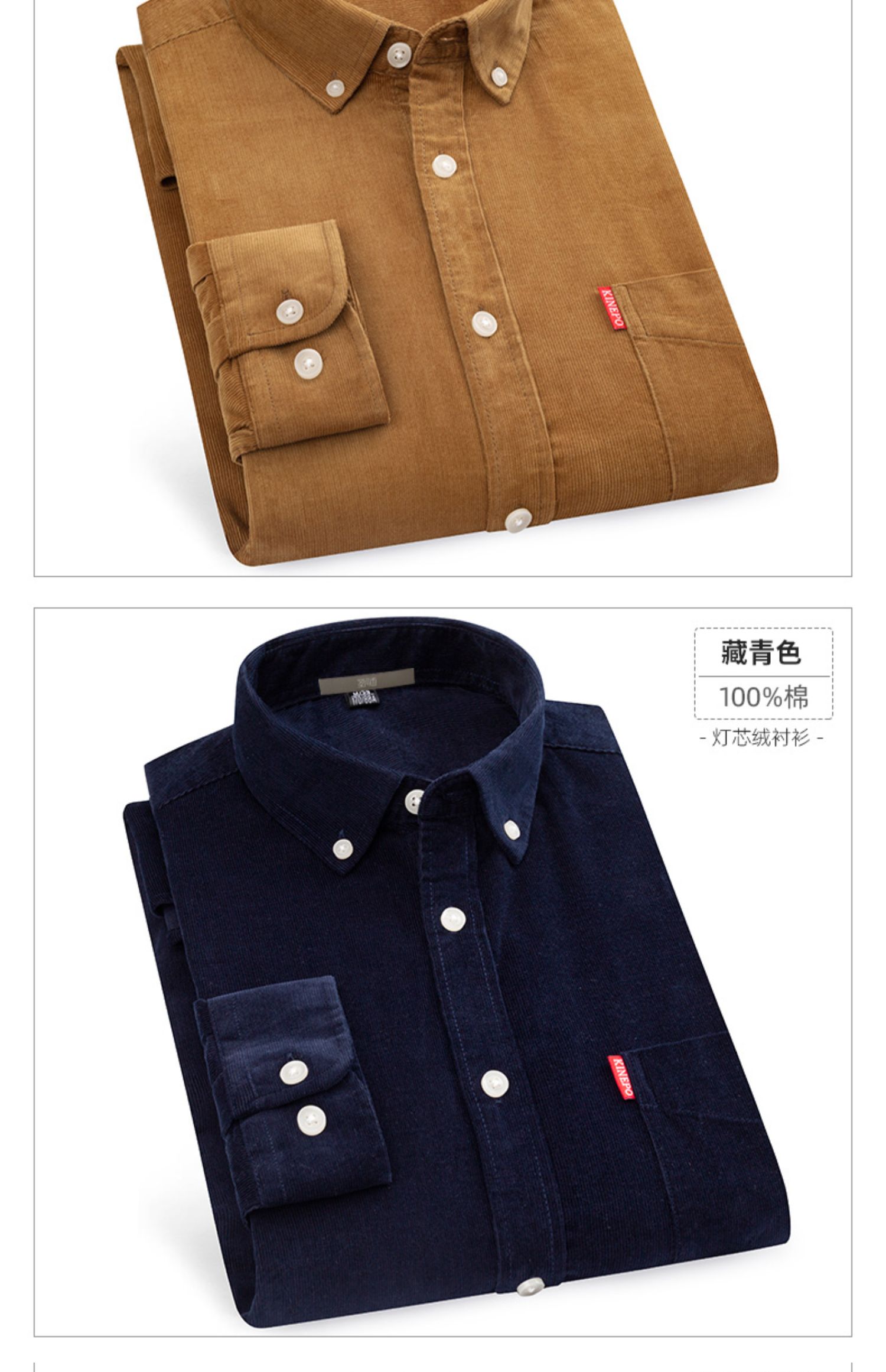 圣得西男士纯100%棉灯芯绒衬衫秋款时尚商务休闲长袖衬衣2362954740