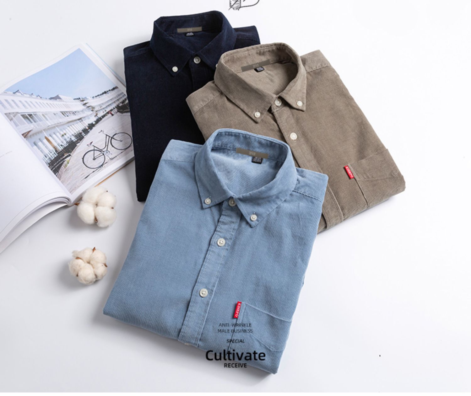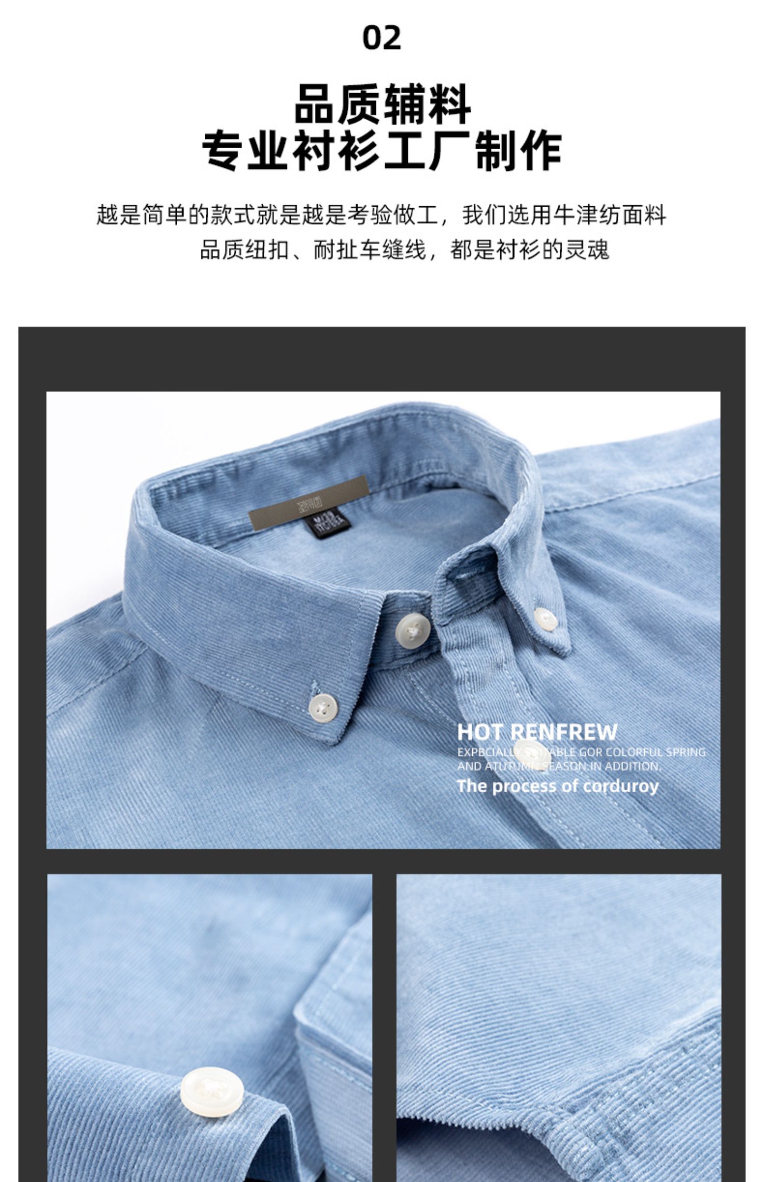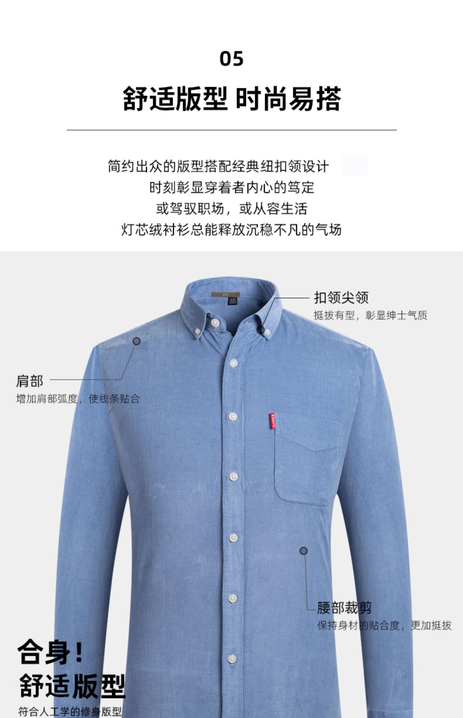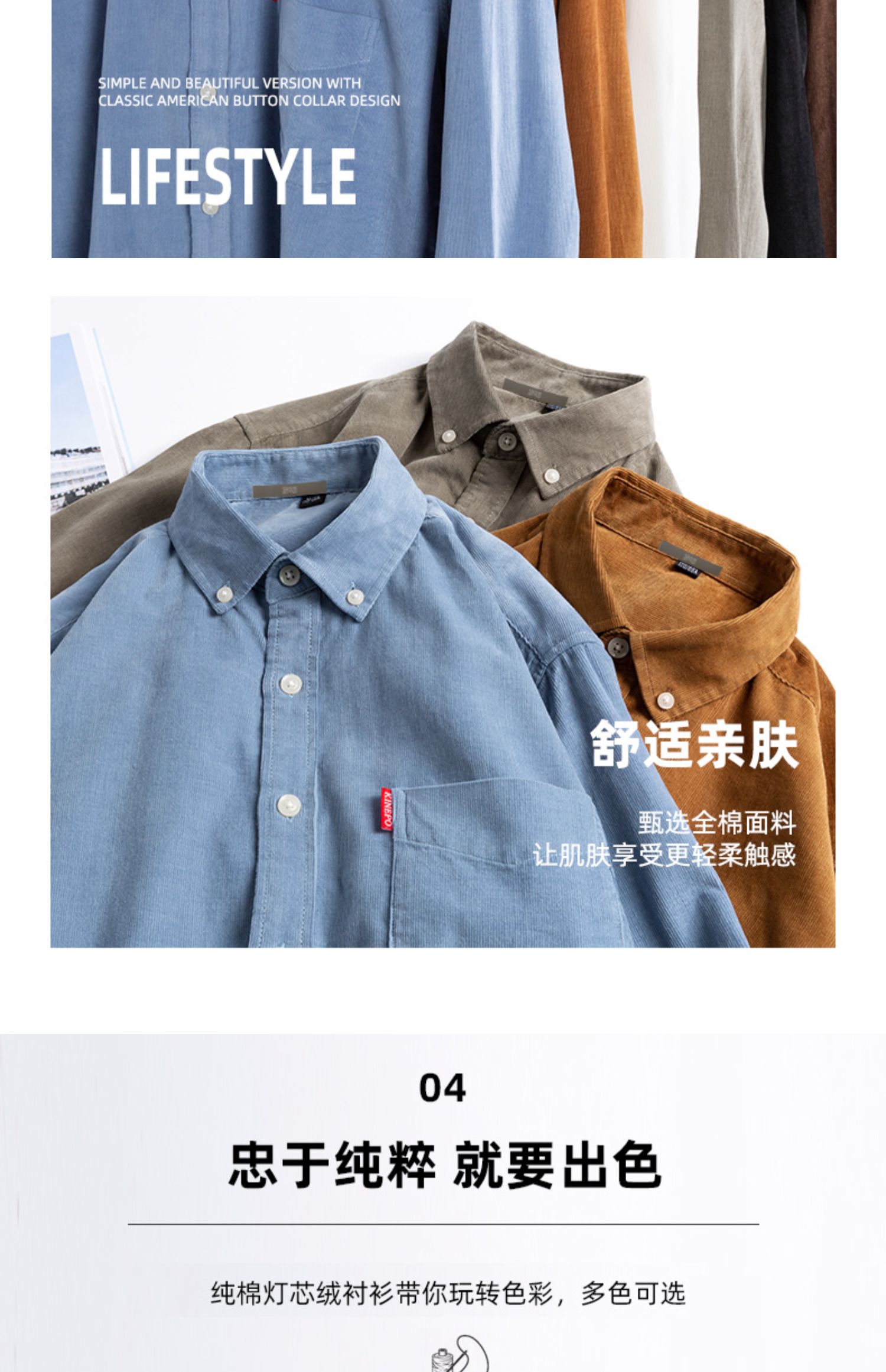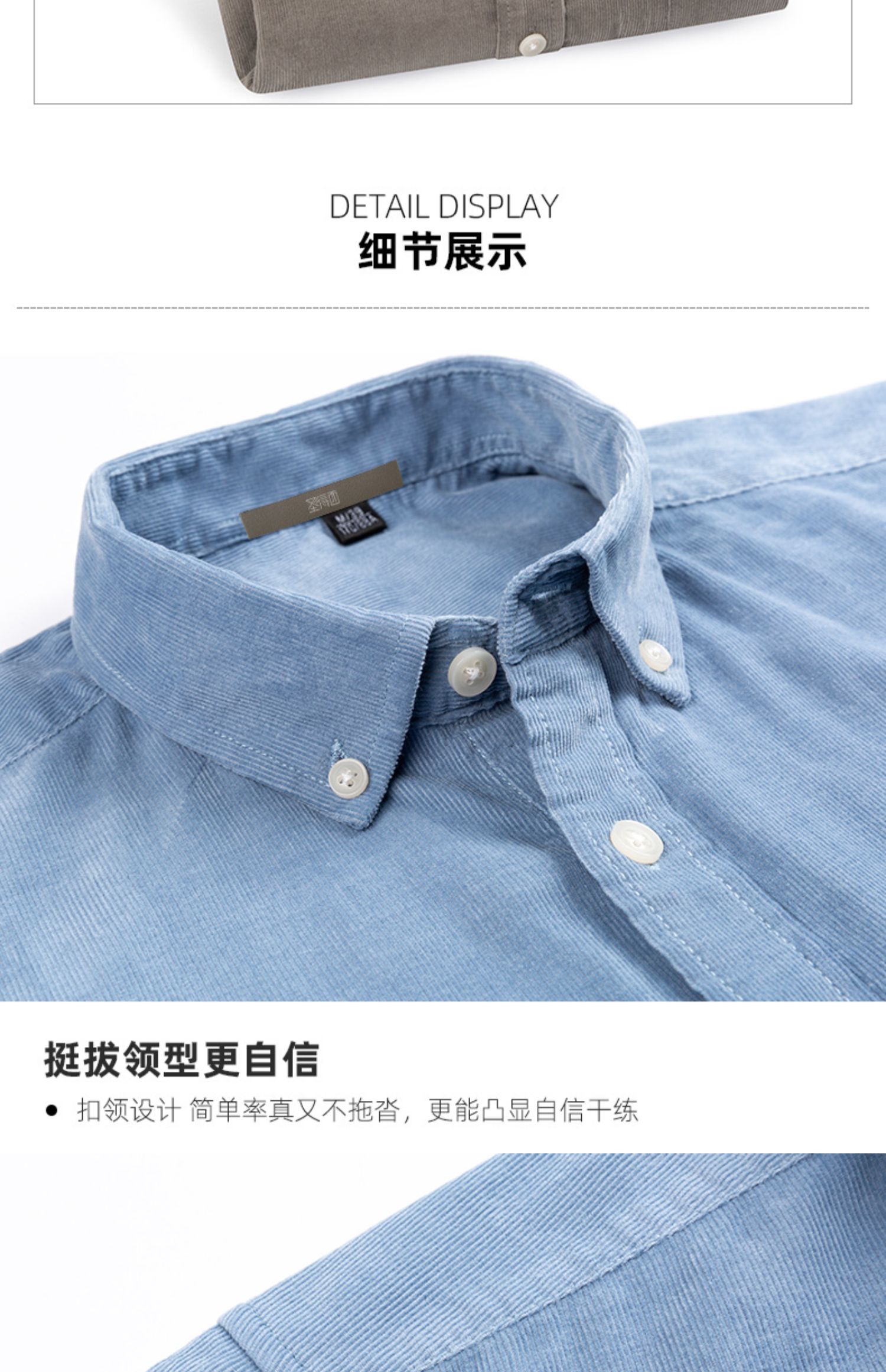 圣得西男士纯100%棉灯芯绒衬衫秋款时尚商务休闲长袖衬衣2362954740