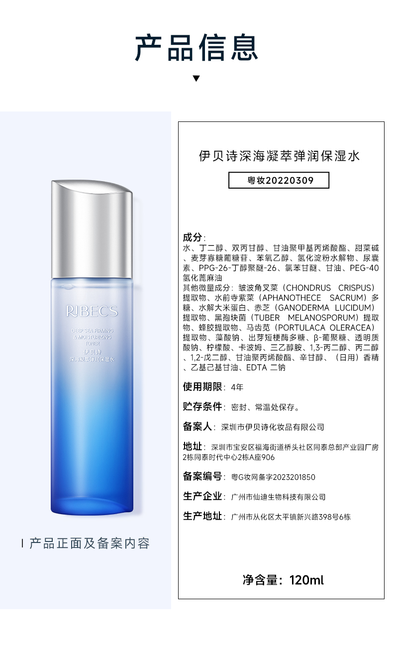 【官方】伊贝诗深海凝萃爽肤水女补水保湿精华水清爽干皮滋润化妆水护肤品官方正品