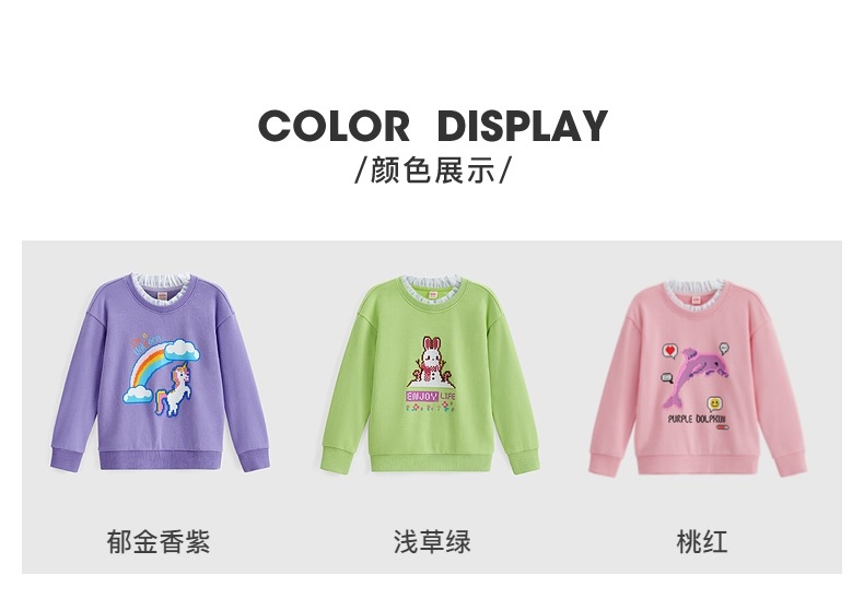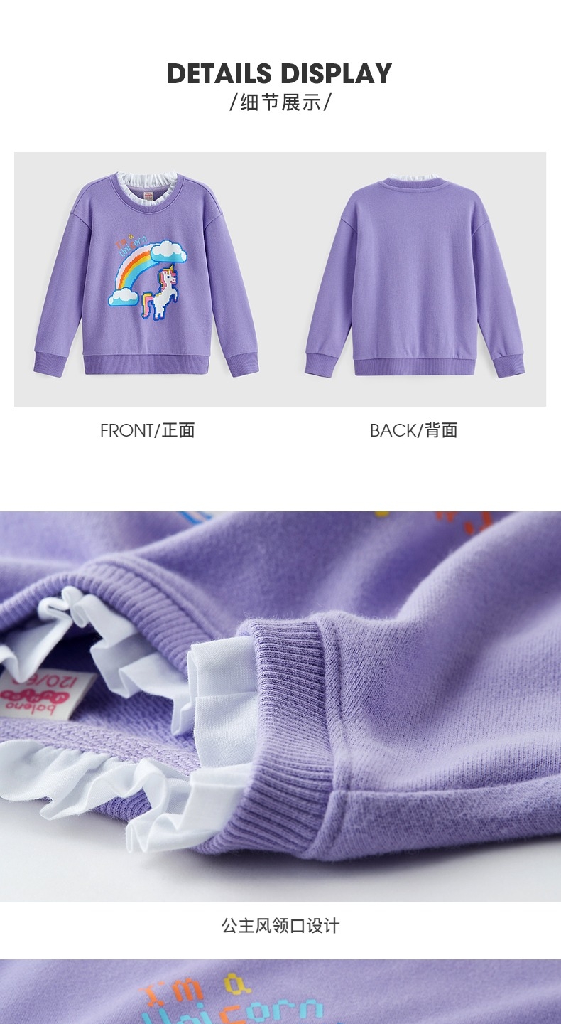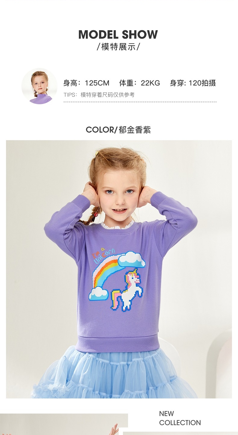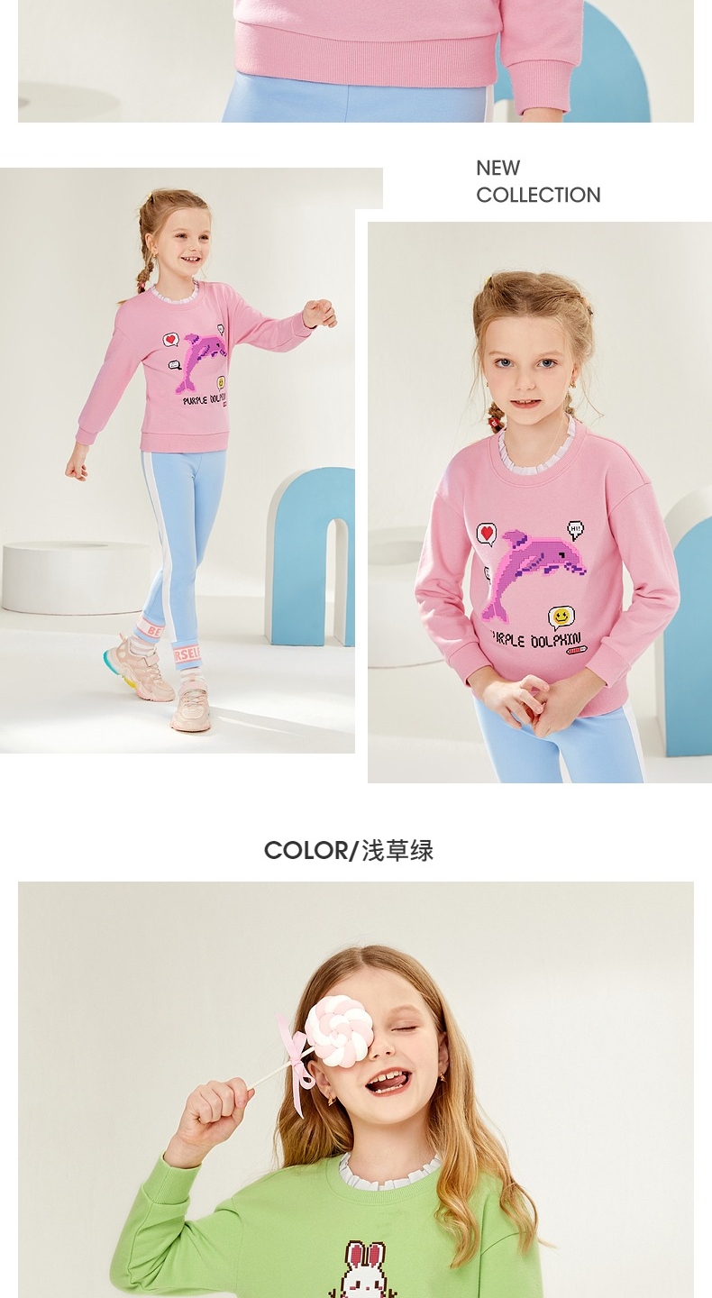 22FW 班尼路童装春秋冬新款休闲像素感印花女童圆领卫衣宽松儿童上衣