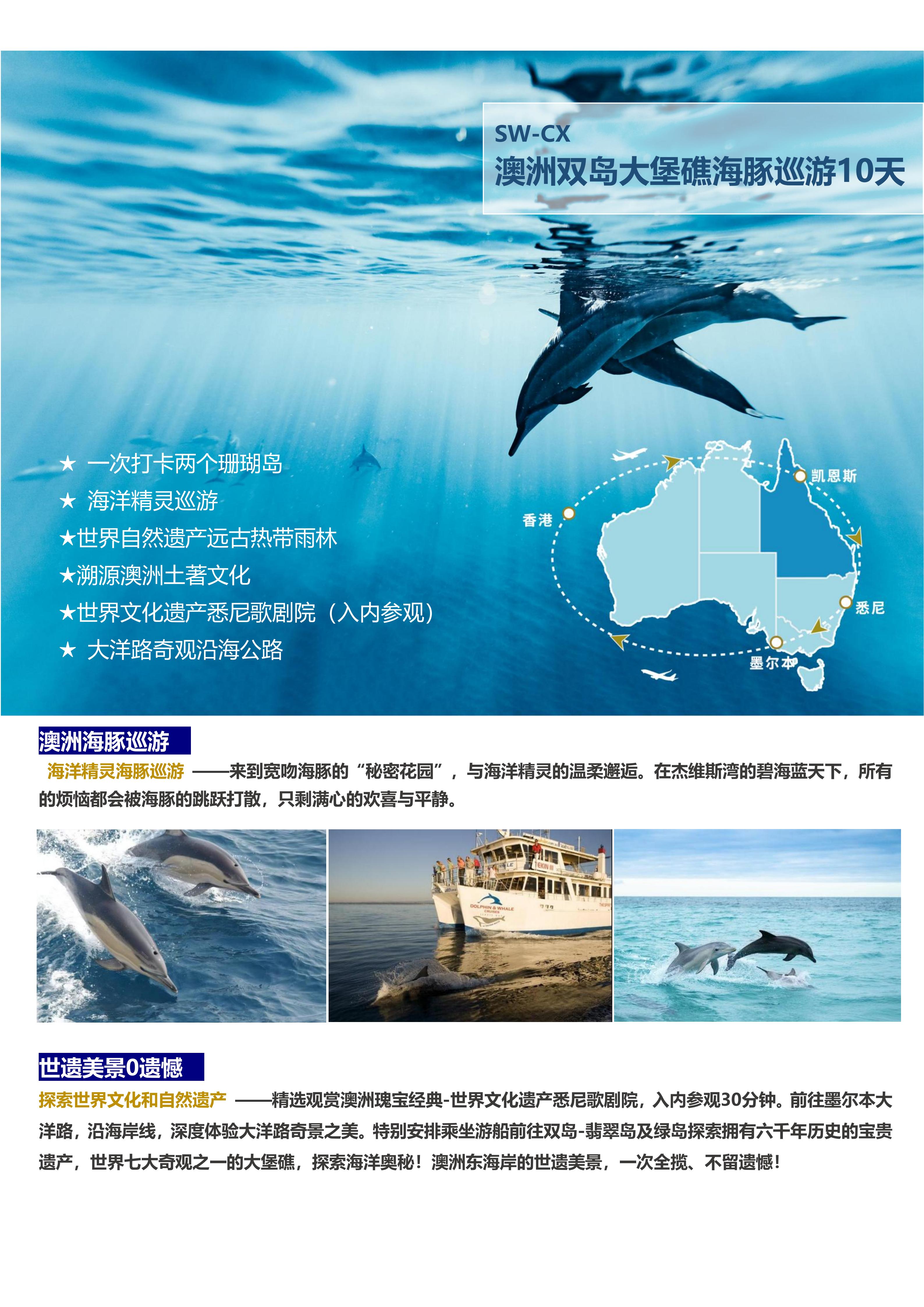 【春节】<澳大利亚双岛大堡礁海豚巡游10天>热带雨林公园&水陆两用车、翡翠岛&绿岛双堡礁、悉尼大学、悉尼歌剧院、杰维斯湾海豚巡游、阿波罗湾 、大洋路、派翠克大教堂、维多利亚州美术馆 NGV