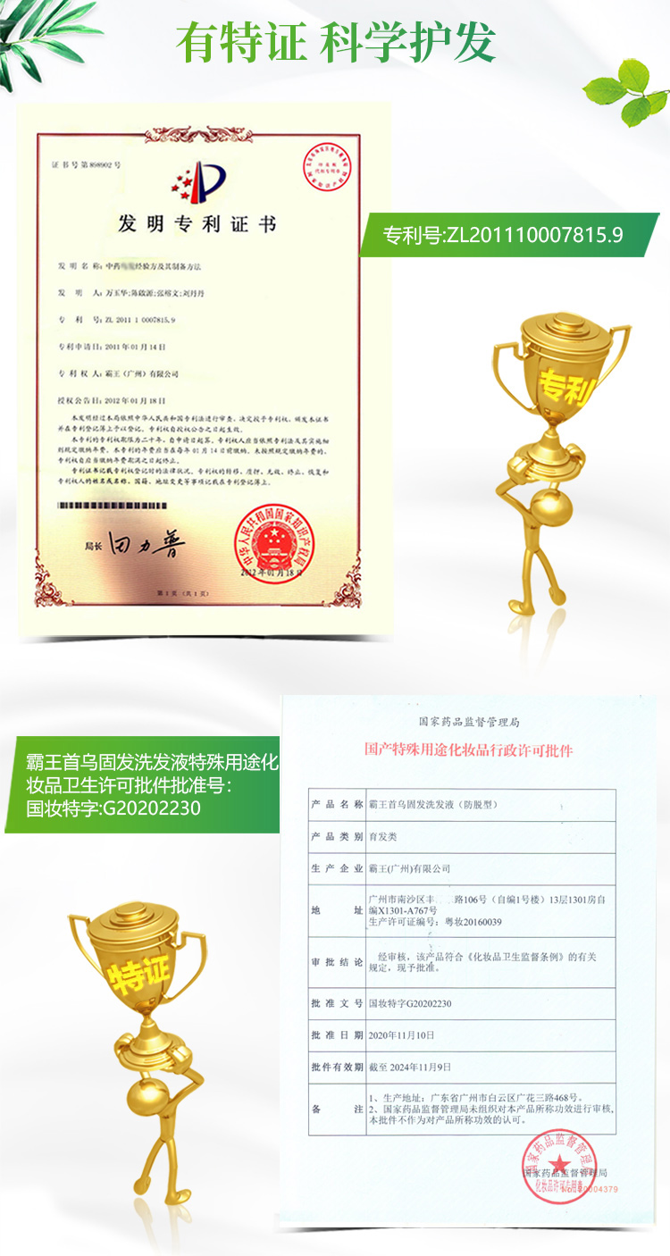 霸王何首乌洗发水防脱发育发控油洗头膏男士女士乌黑亮泽首乌固发洗发液1000ml