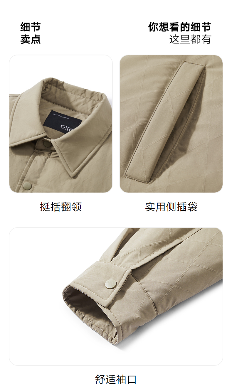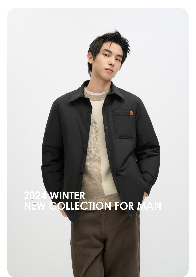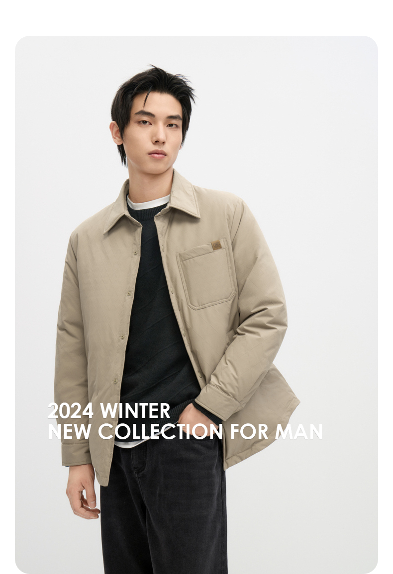 GXG男装【衬衫式】羽绒服男 冬季热卖轻薄款外套简约休闲翻领羽绒服外套G24DY24003