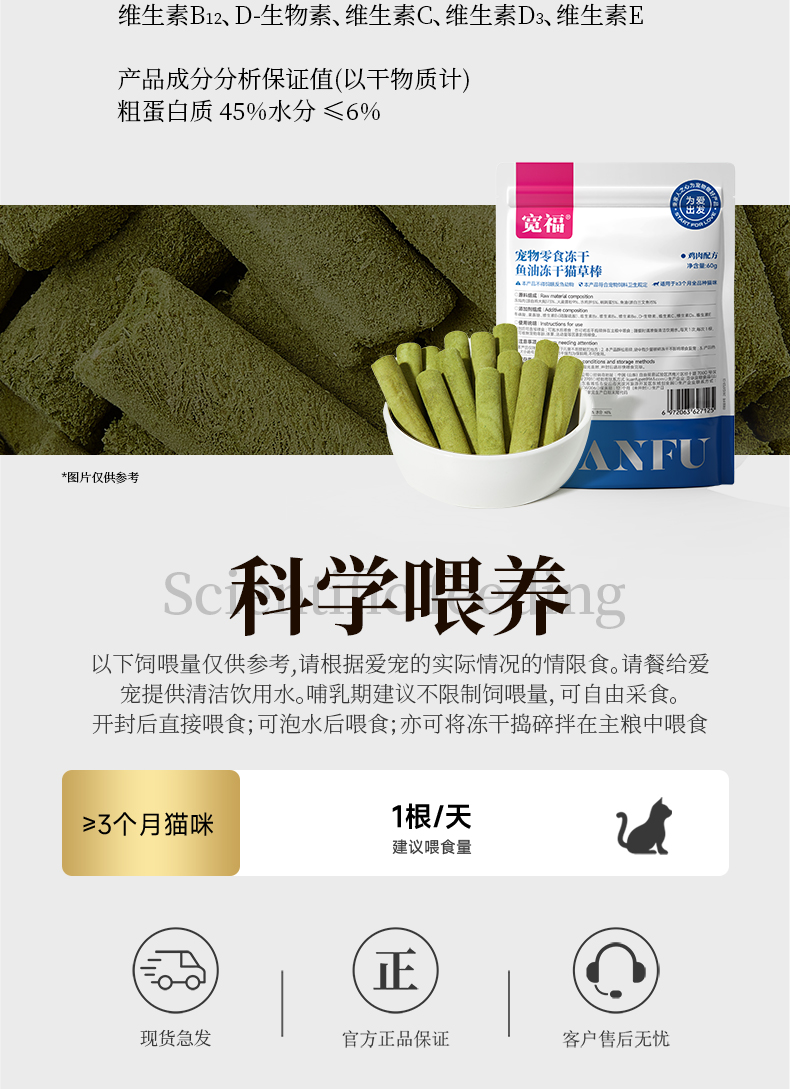 【会员任选】鱼油冻干猫草棒 美毛护肤肠胃养护清新口味