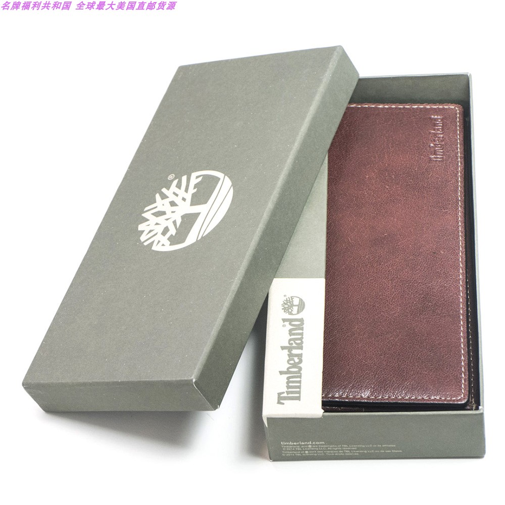 【国内现货】TIMBERLAND添柏岚男款礼盒装长款两折棕色真皮钱包JPY带授权招加盟代理
