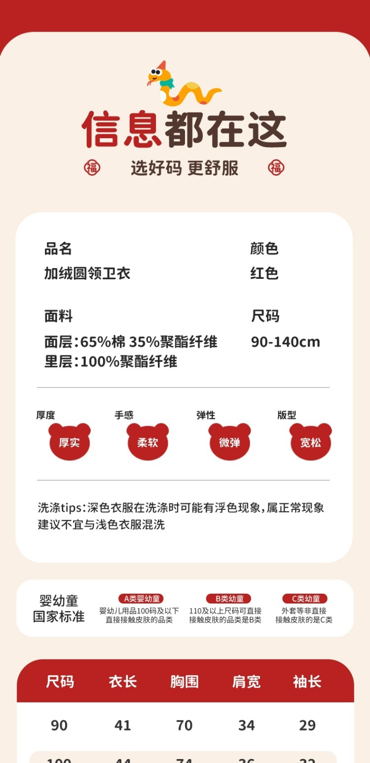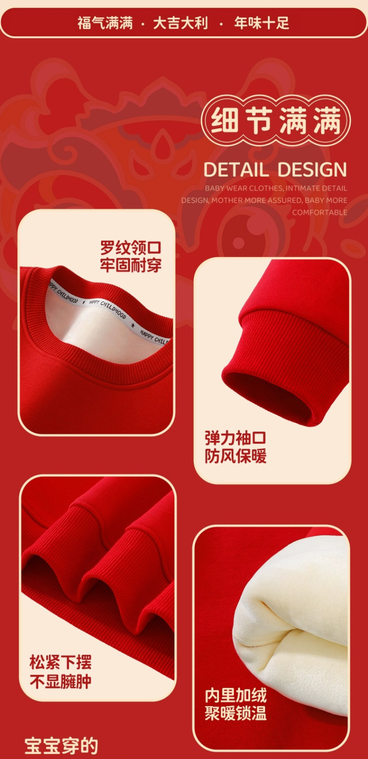 「数款可选!新年限定」中国风红色童装加绒卫衣 加厚本命年外套2025蛇年新年拜年服上衣潮