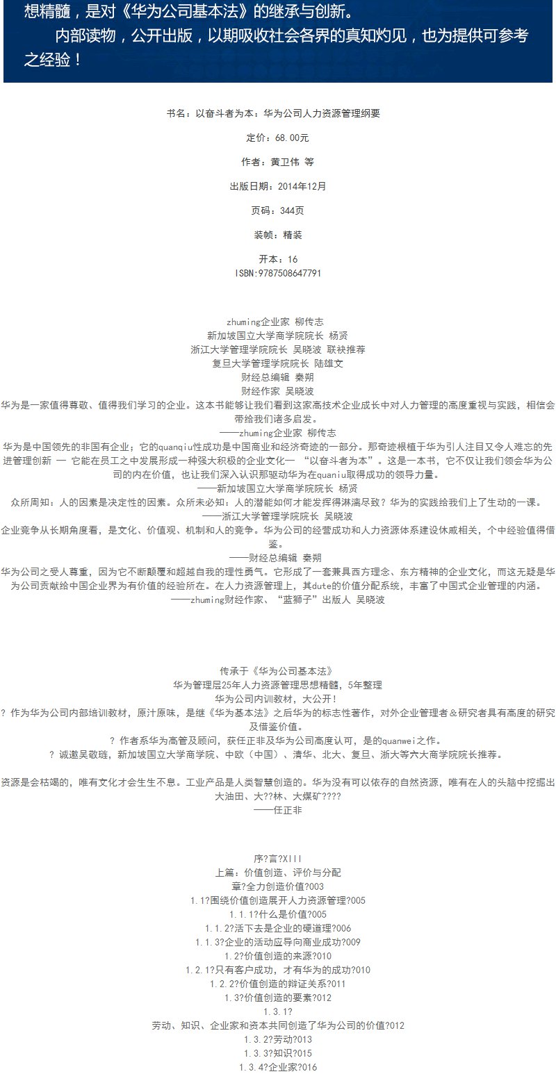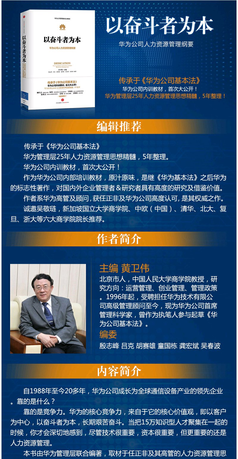 以奋斗者为本 黄卫伟 著 华为公司人力资源管理纲要 华为内训教材书 企业管理书籍书 企业员工培训教材 中信书店