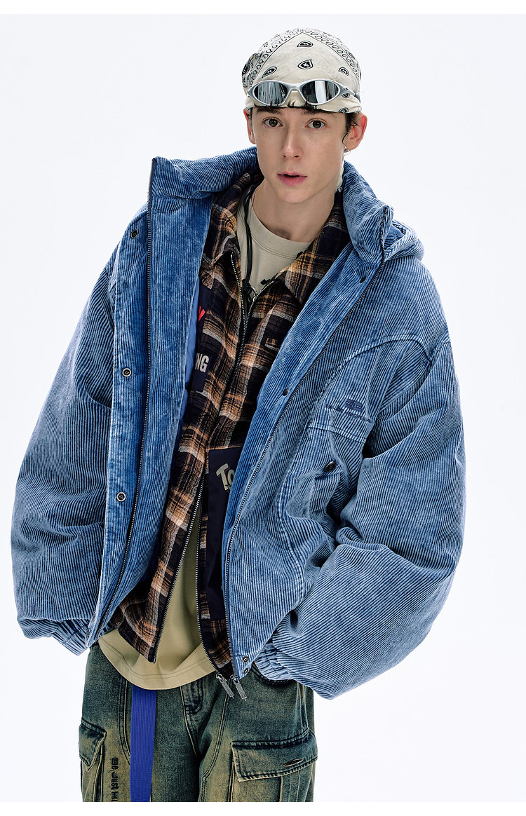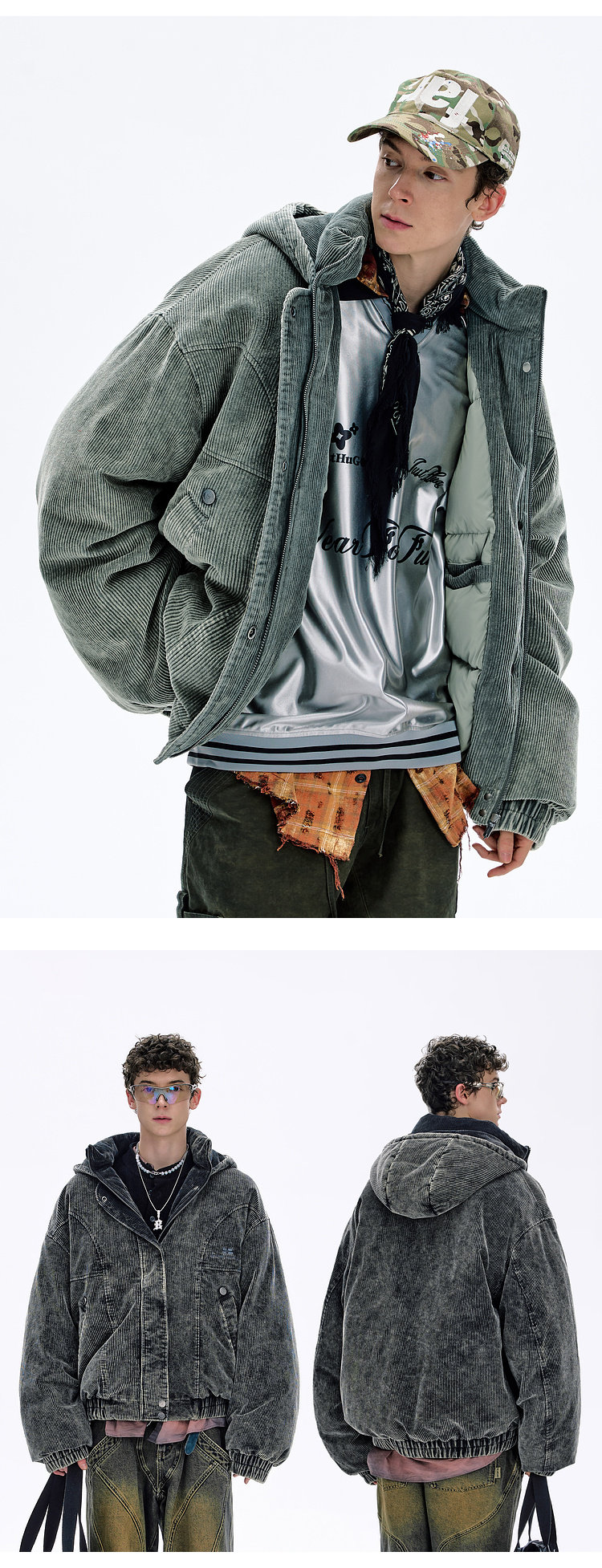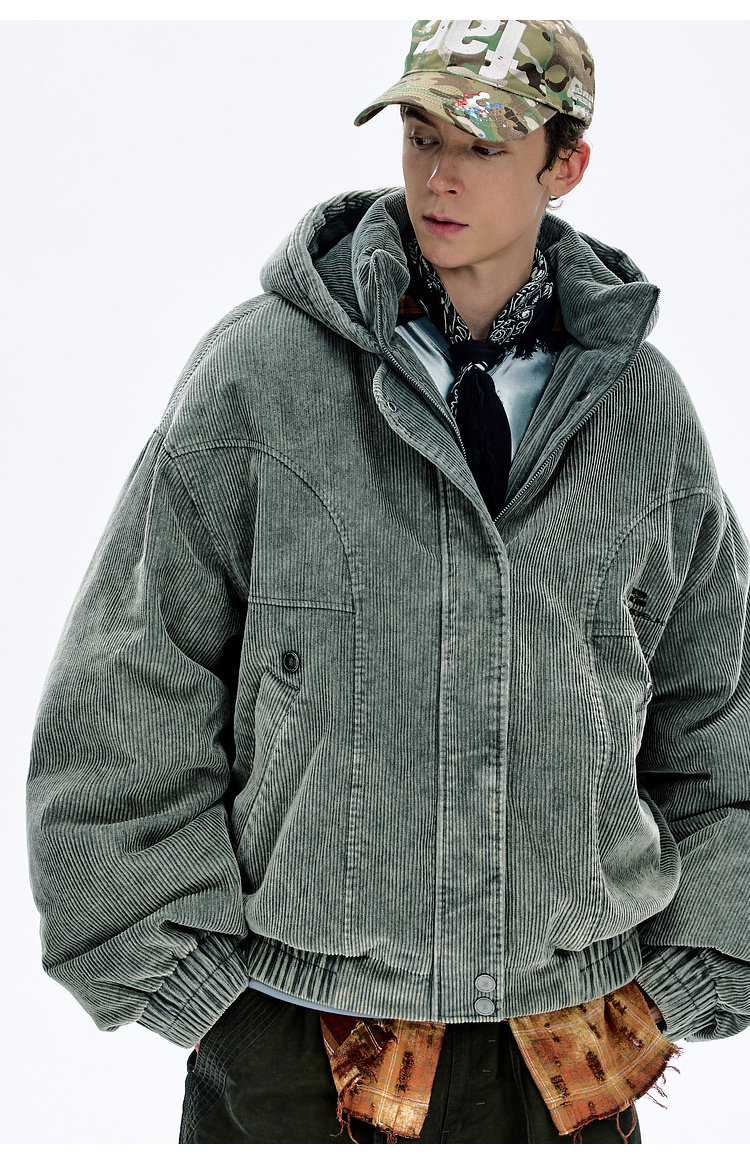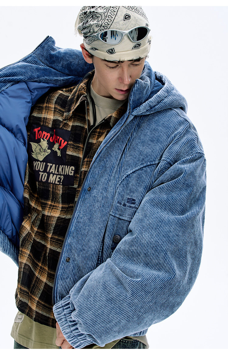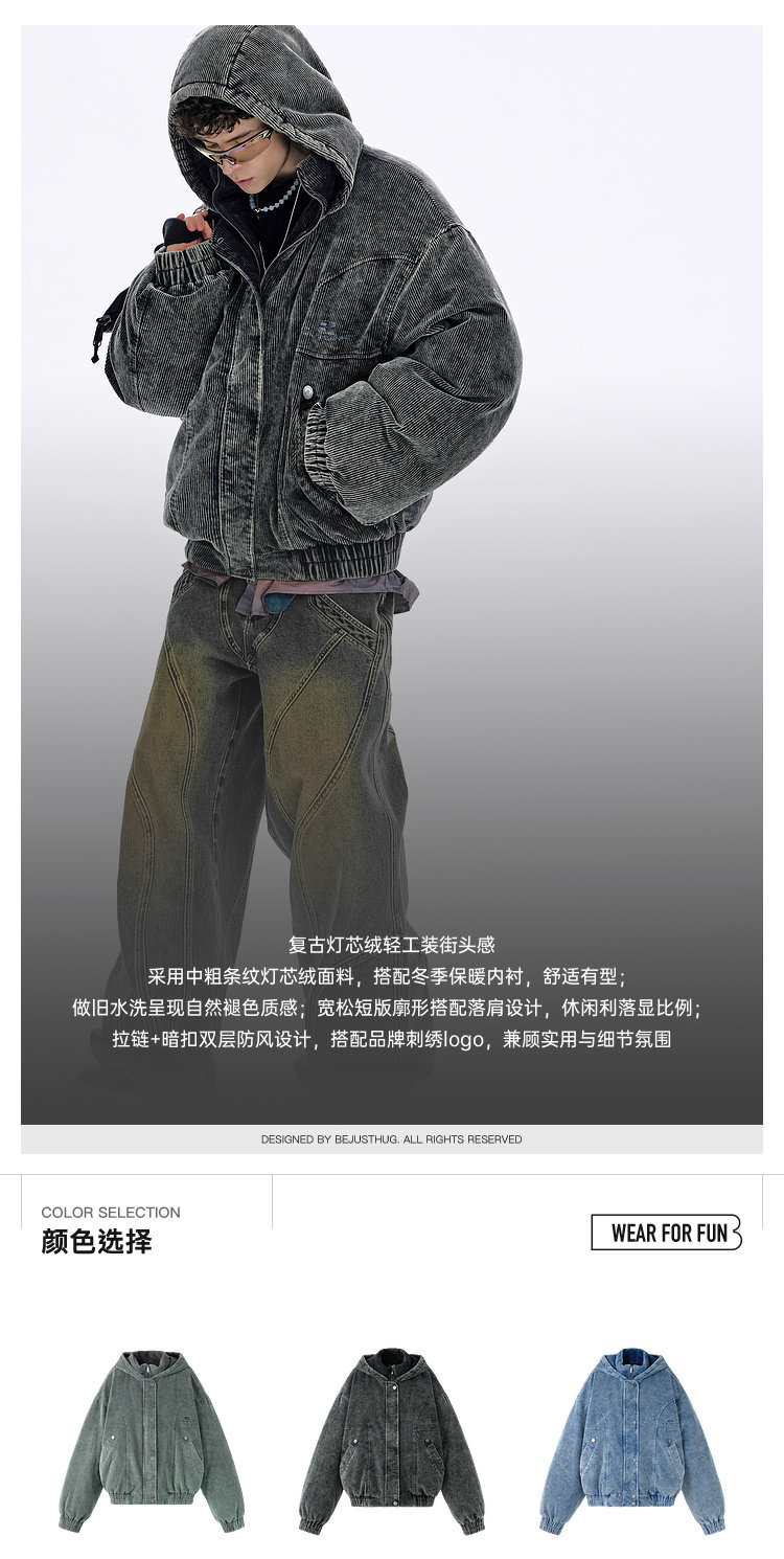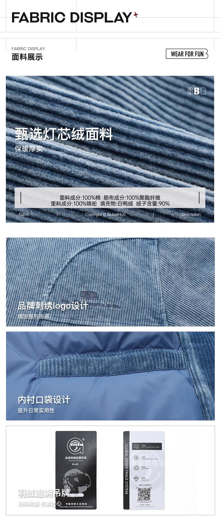 BJHG不计后果灯芯绒羽绒服男款冬季新款潮连帽复古短款防寒服外套