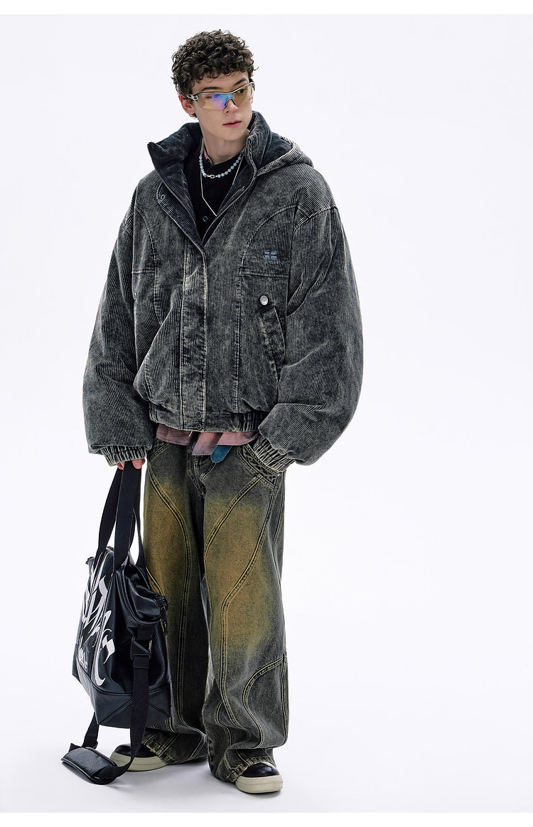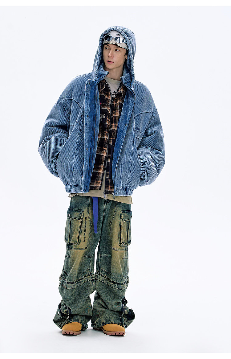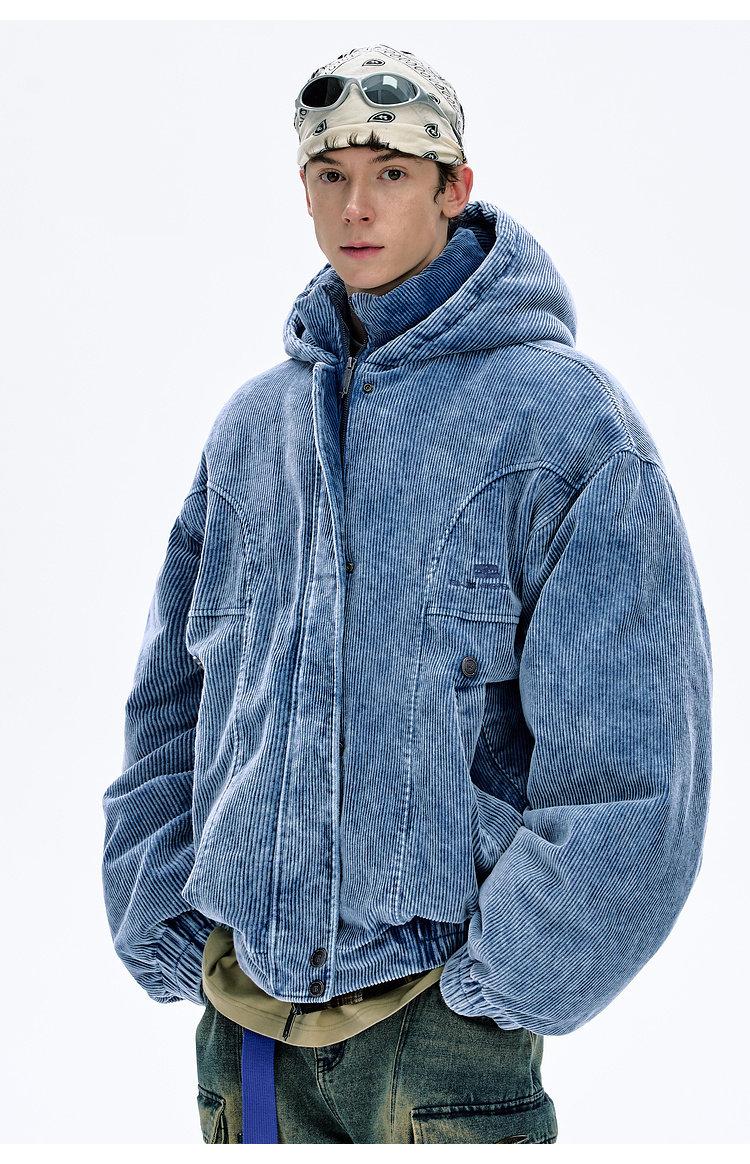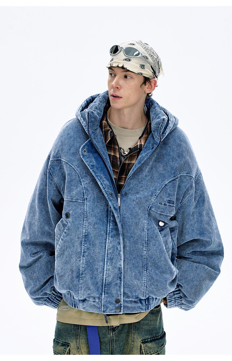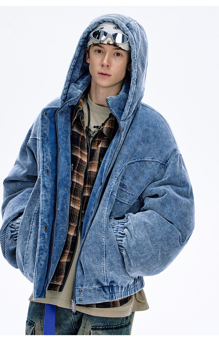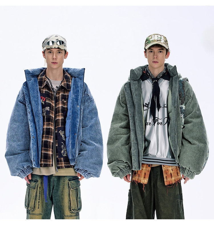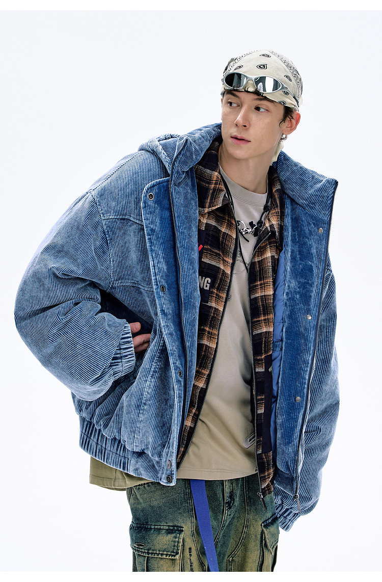 BJHG不计后果灯芯绒羽绒服男款冬季新款潮连帽复古短款防寒服外套
