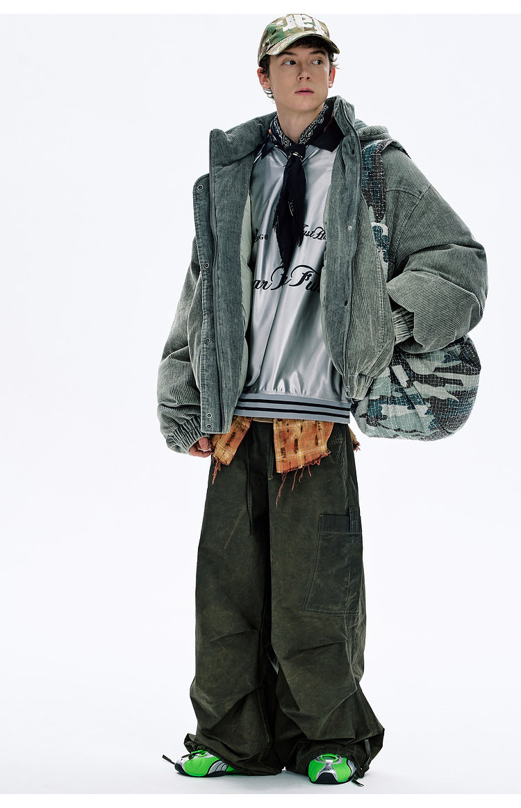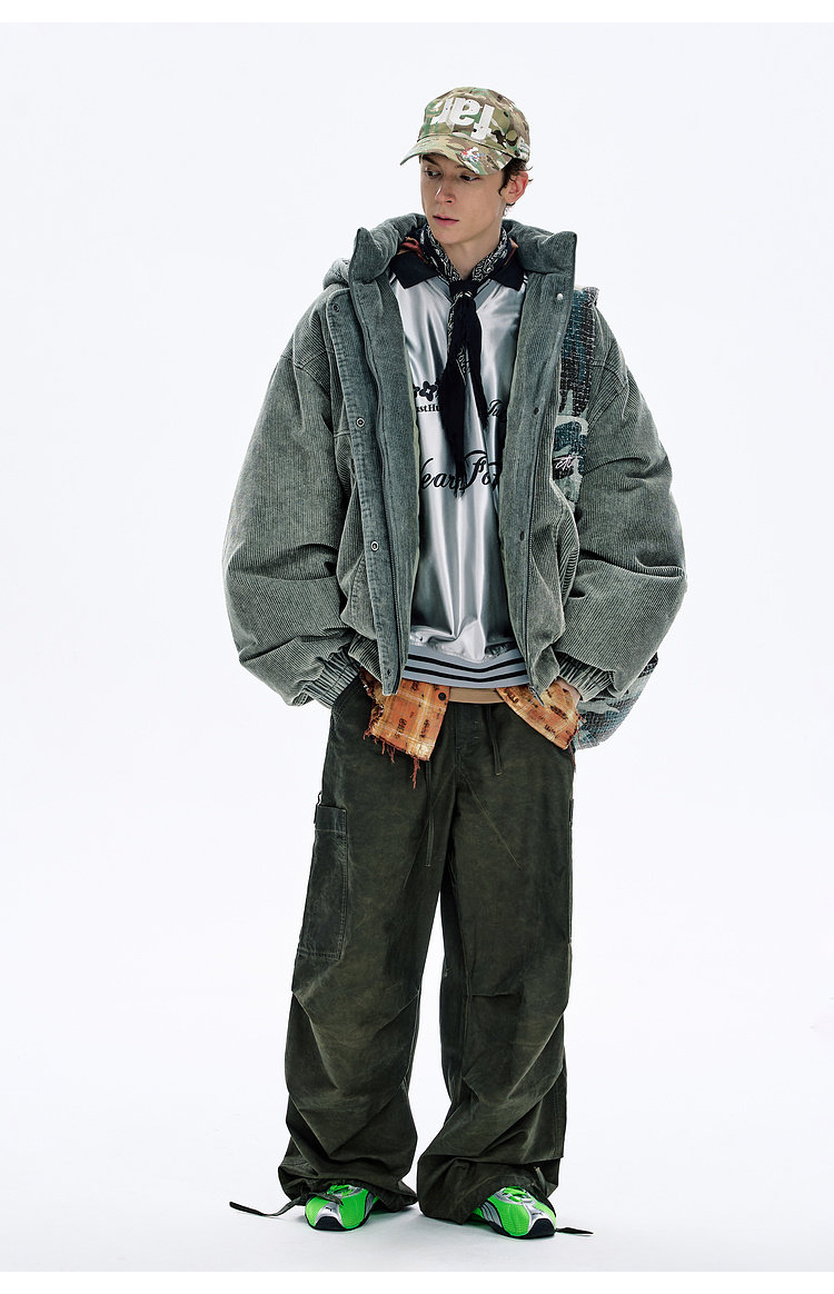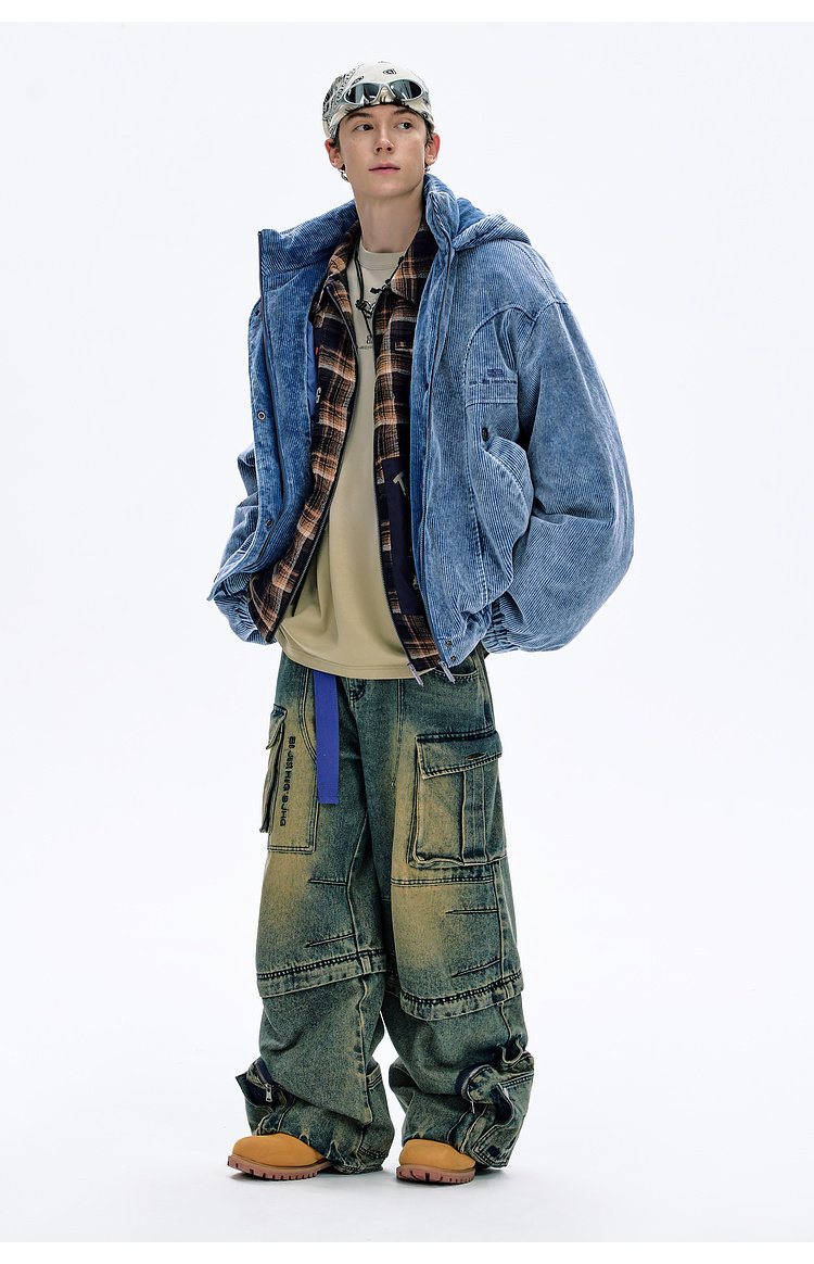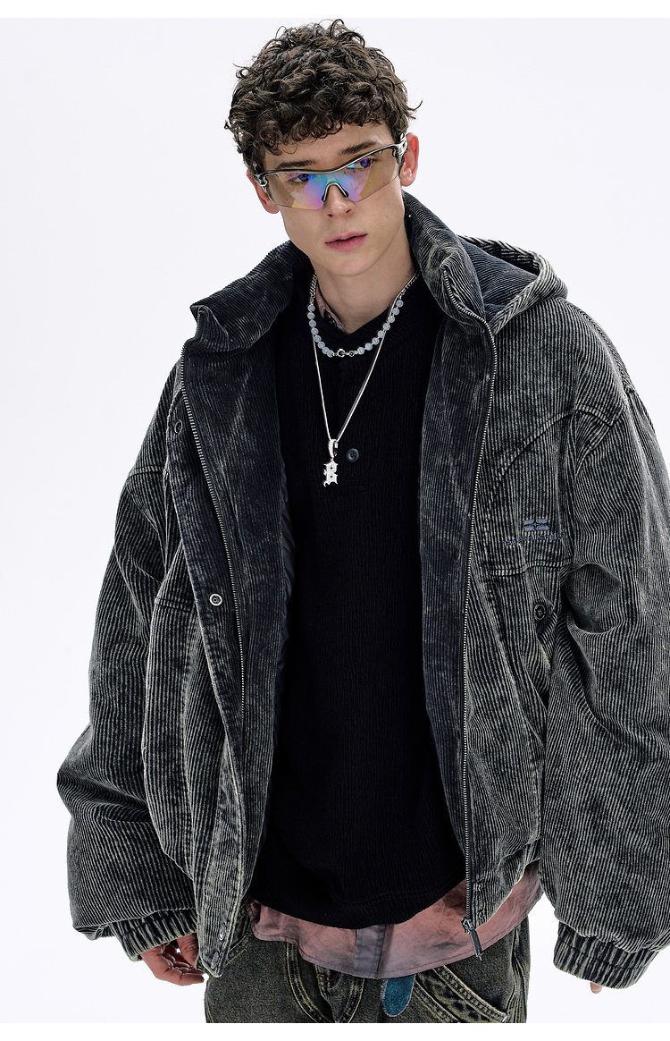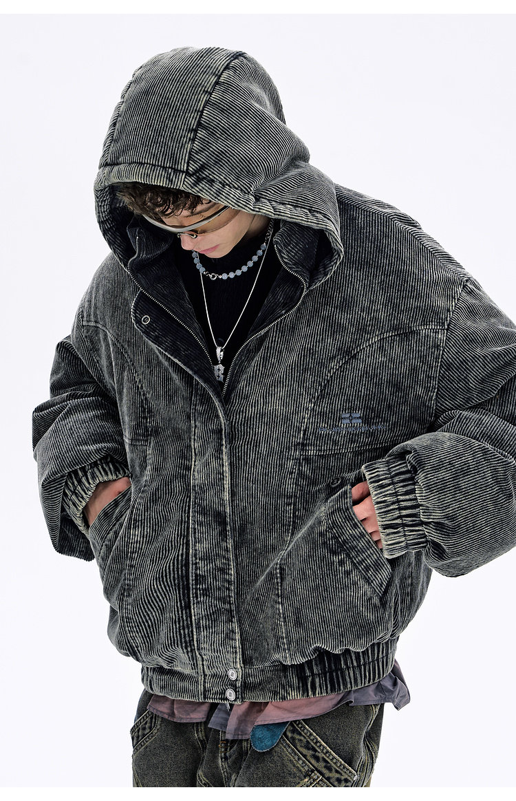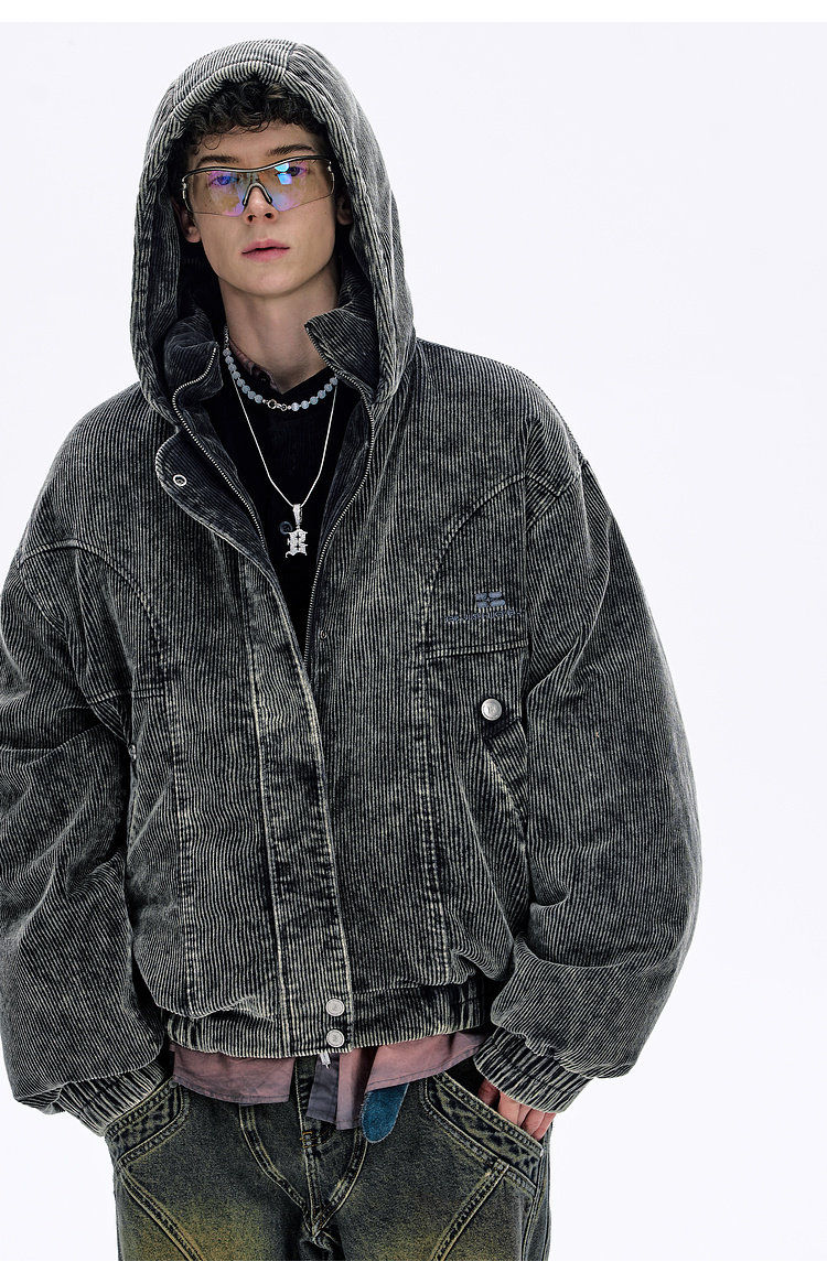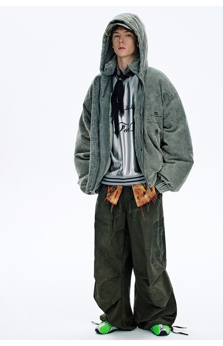 BJHG不计后果灯芯绒羽绒服男款冬季新款潮连帽复古短款防寒服外套