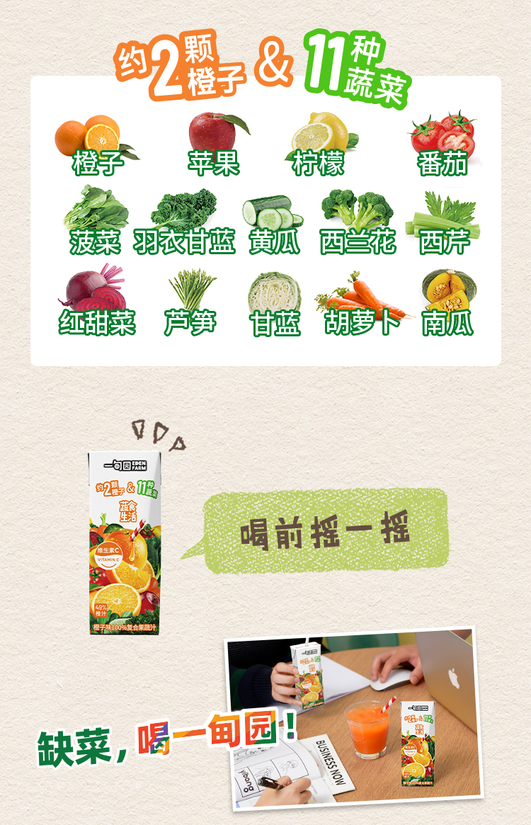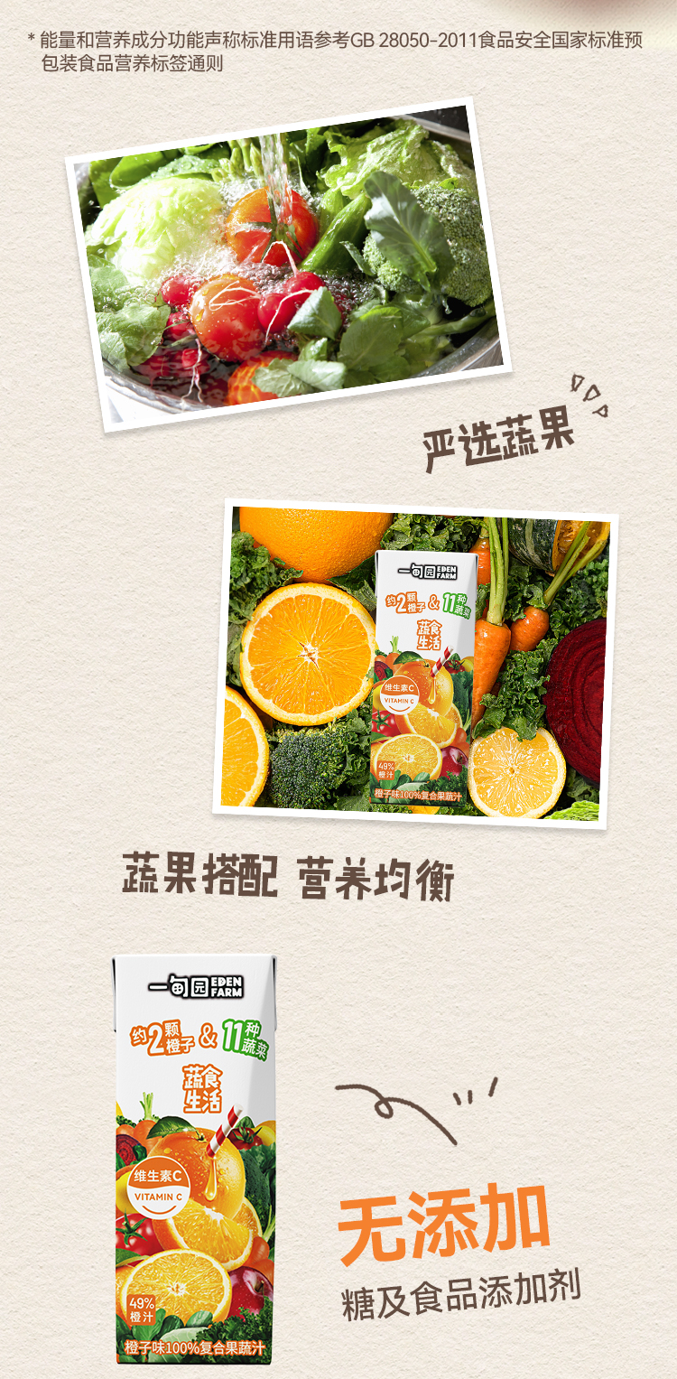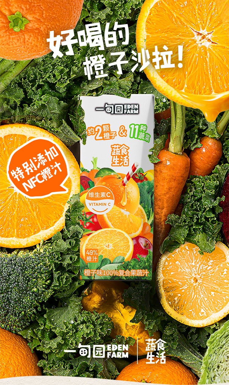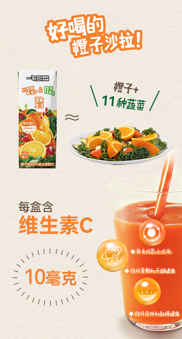 品牌直发 一甸园 100% 复合果蔬汁橙子味 200mL*10盒