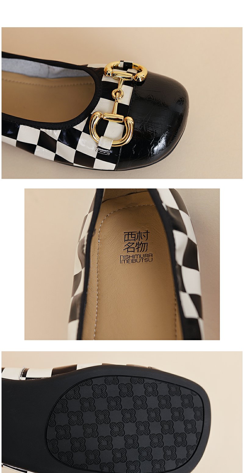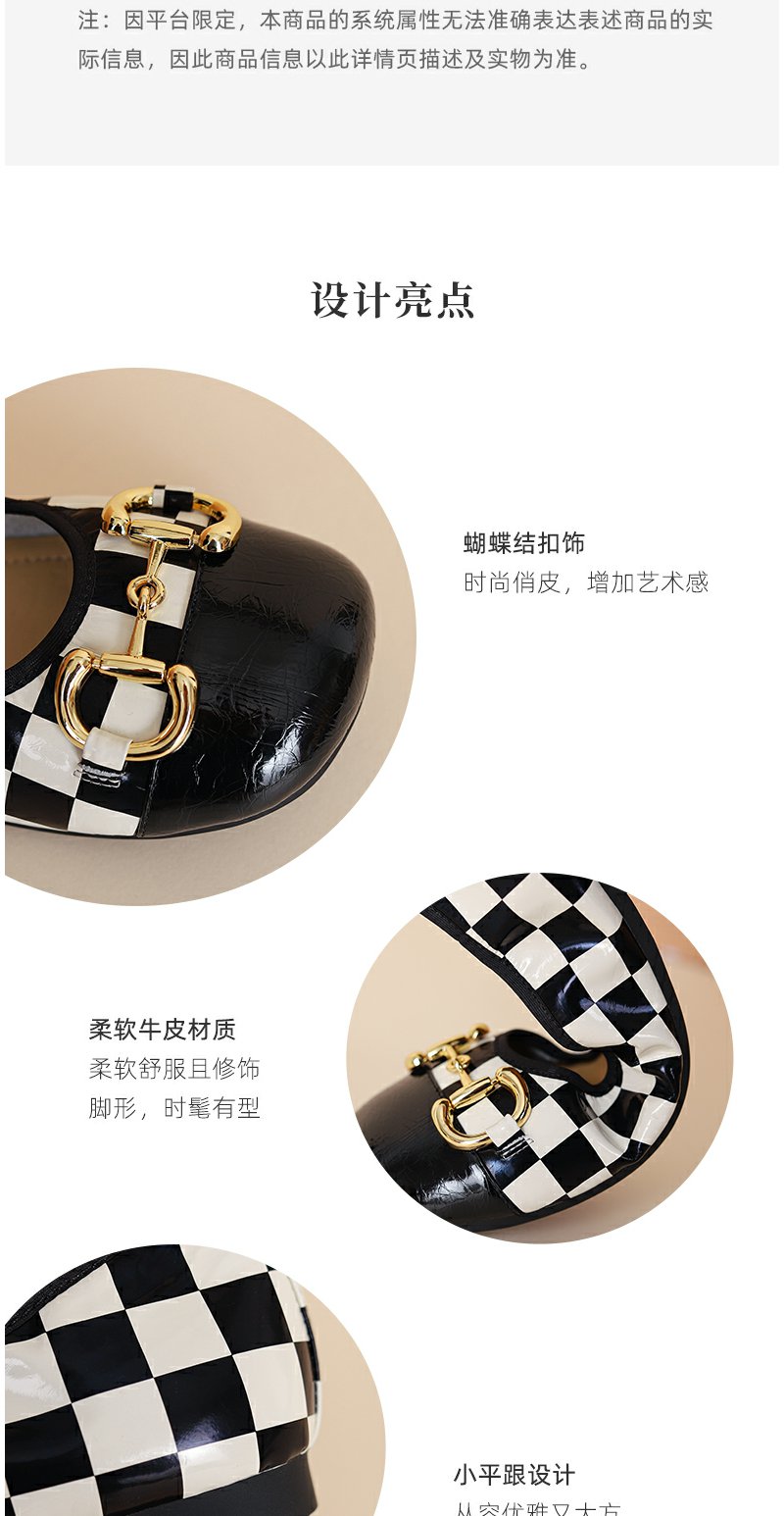 西村名物2022春季新款百搭平底单鞋女棋盘格一脚蹬气质女鞋X22AE19081