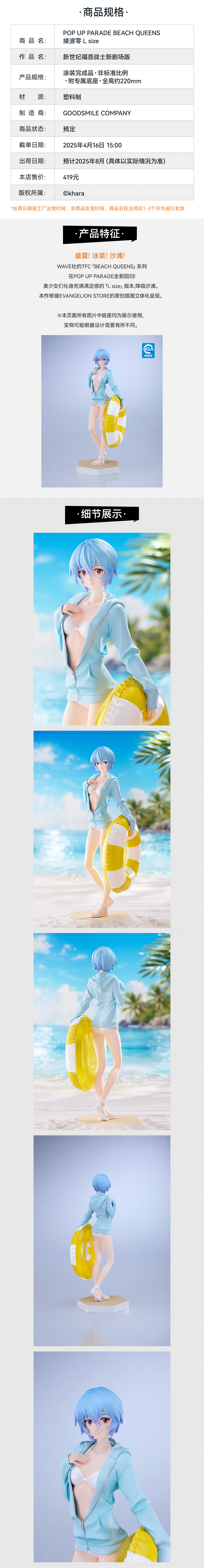 【GSC现货】POP UP PARADE BEACH QUEENS 绫波零 L size 新世纪福音战士新剧场版