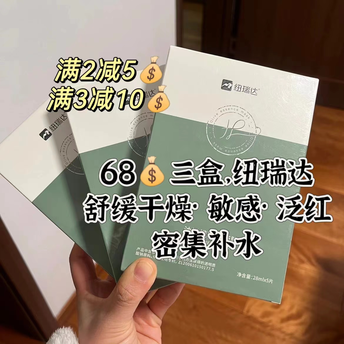 盒装面膜天猫做活动三盒168,咱们五盒105,一片28ml精华液,一盒5片