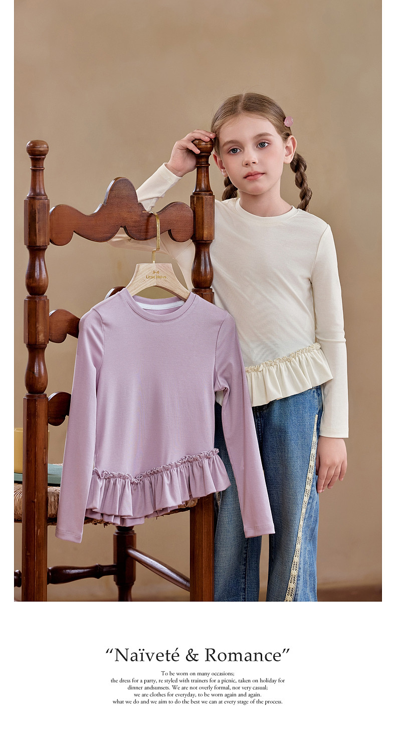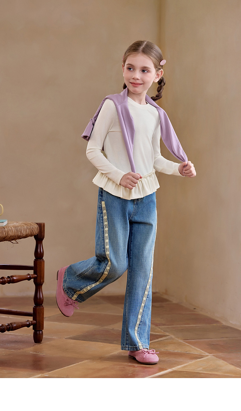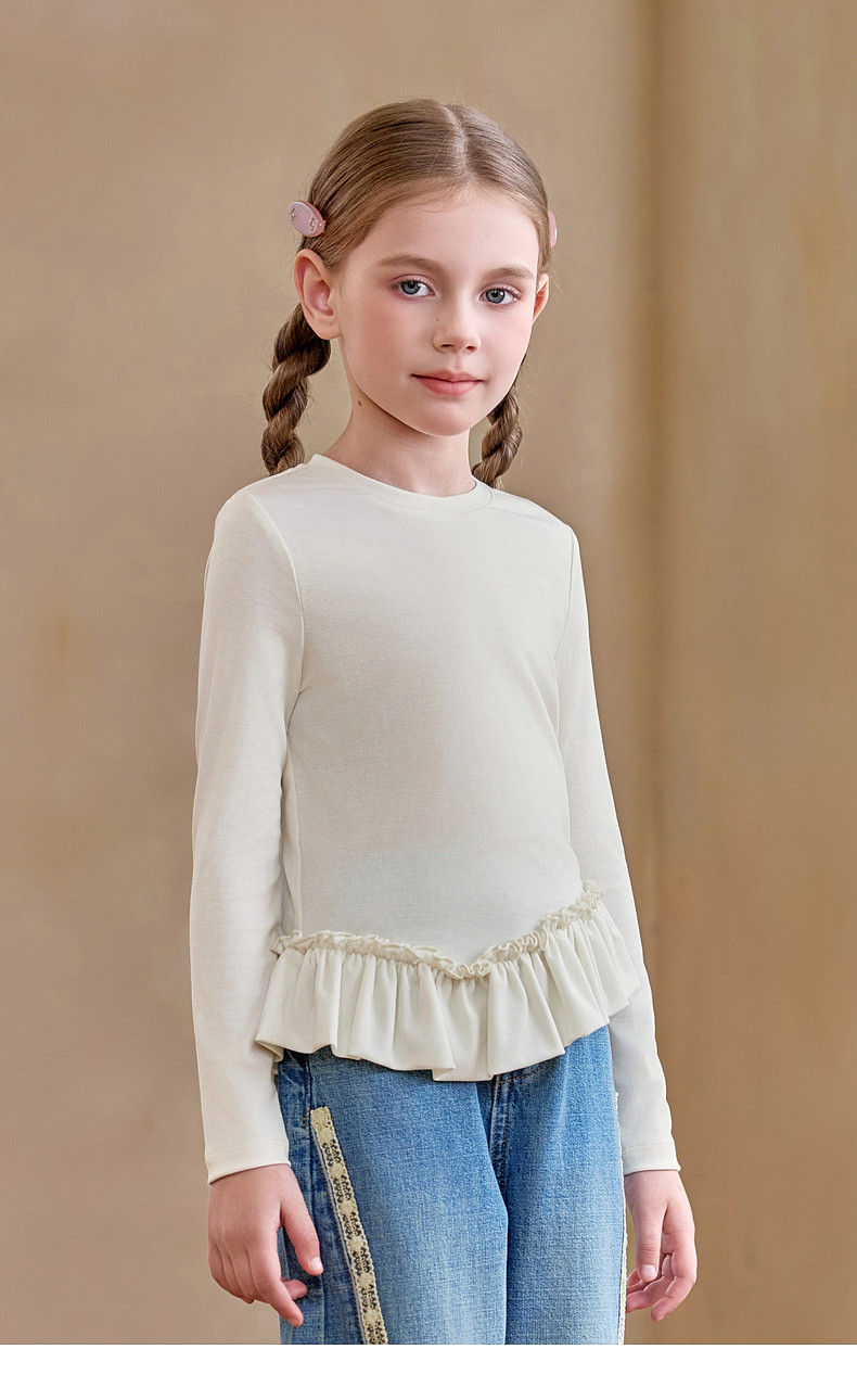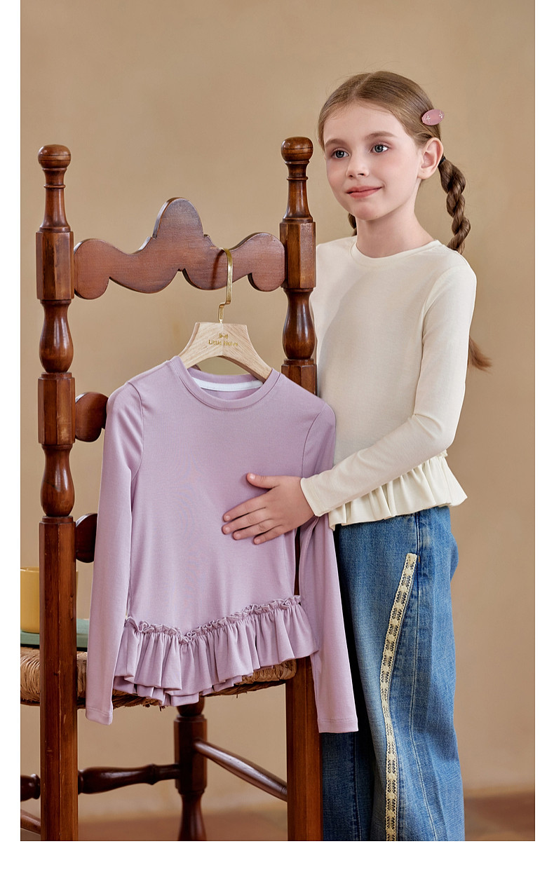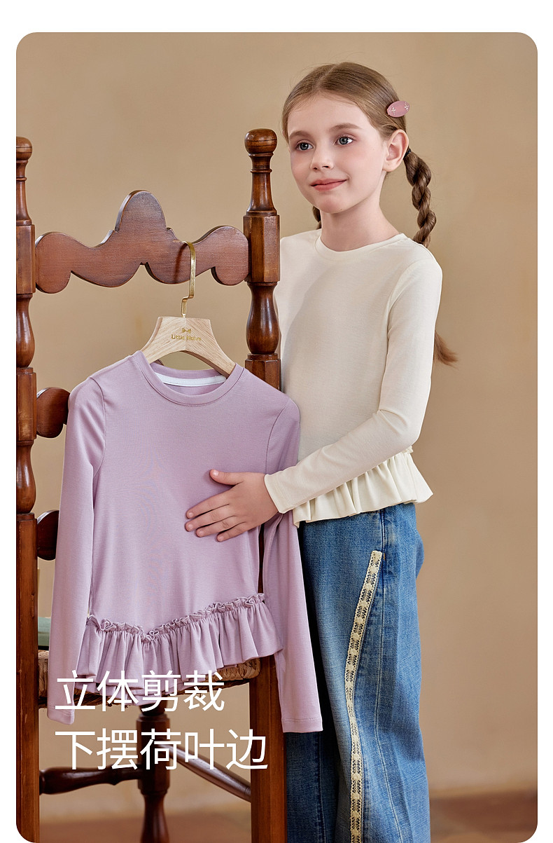 【云优选】Little Naive儿童拼接打底衫春季新款百搭T恤女童莱赛尔时髦上衣