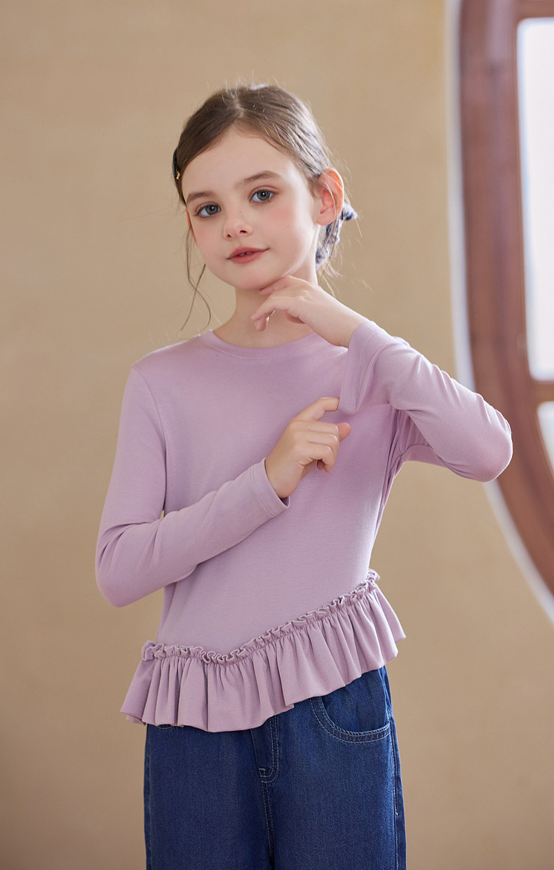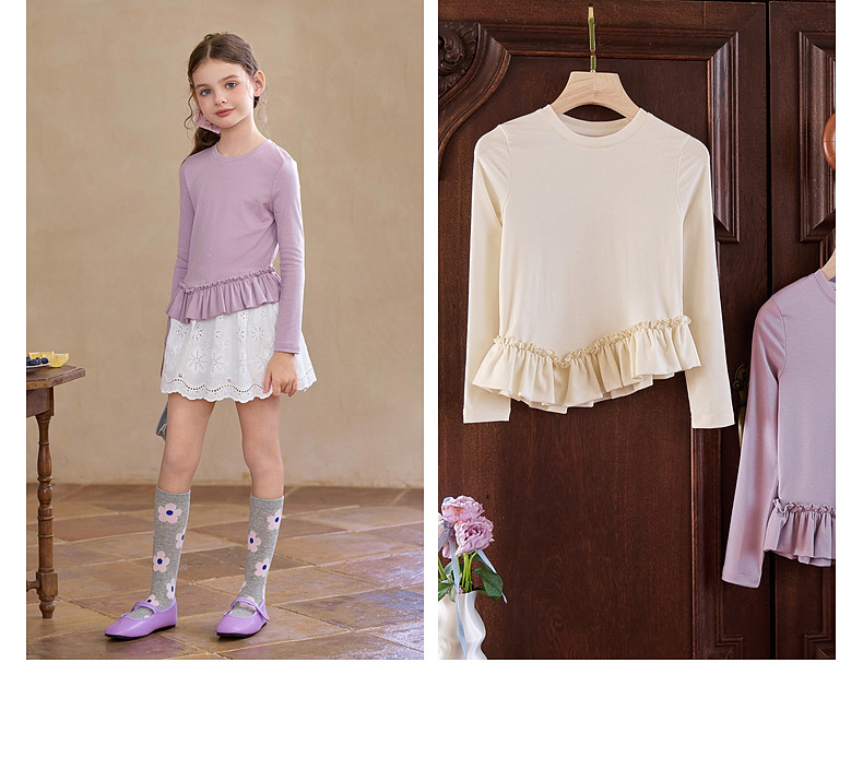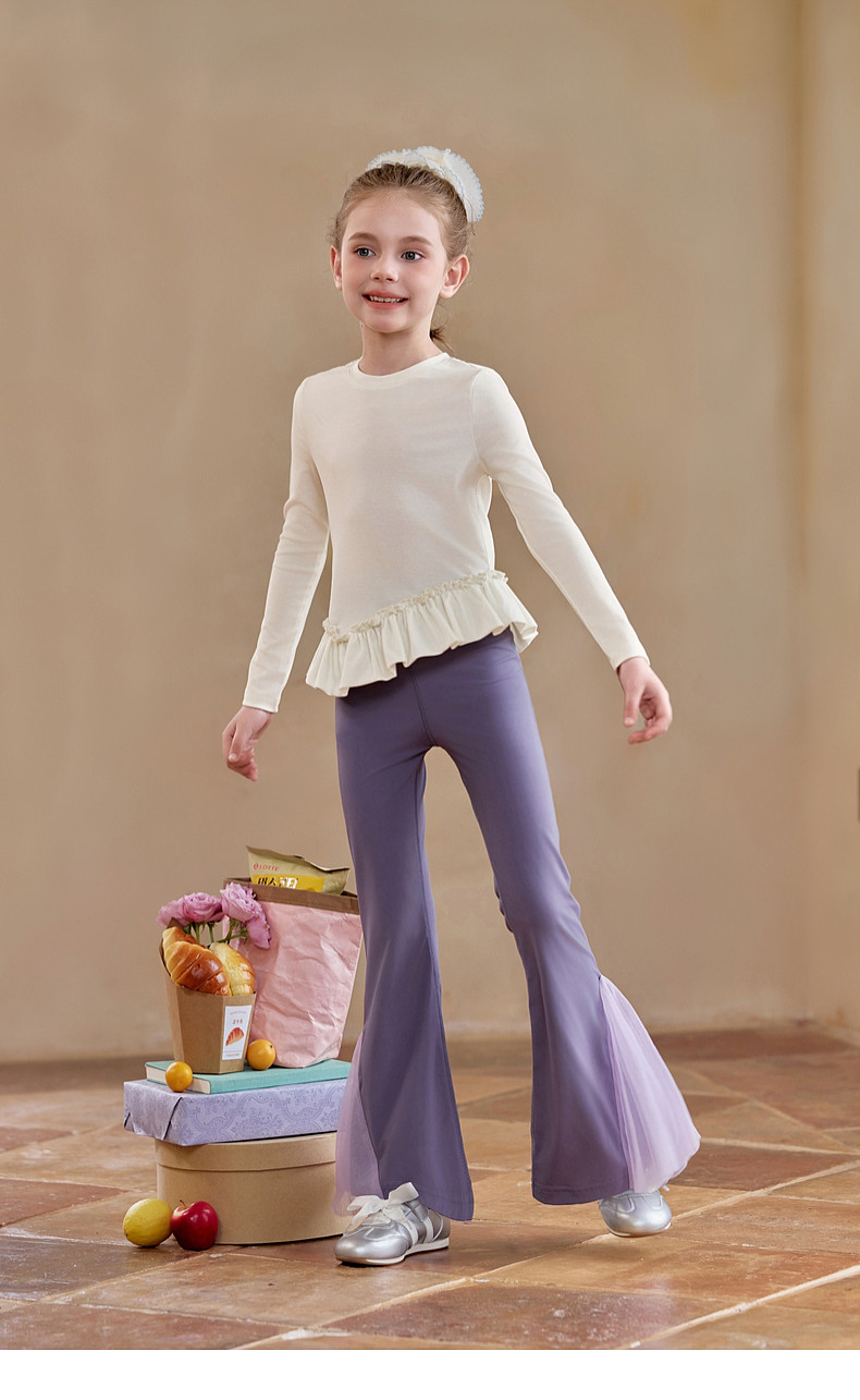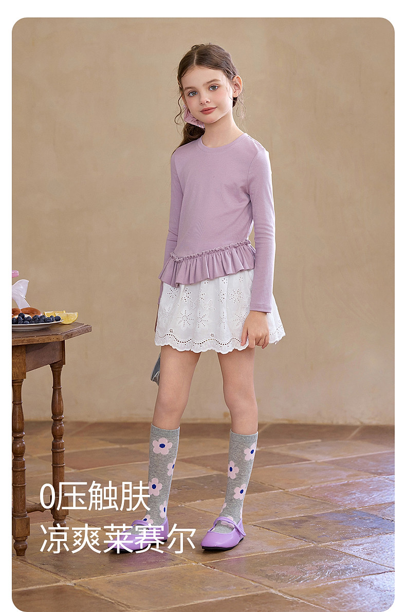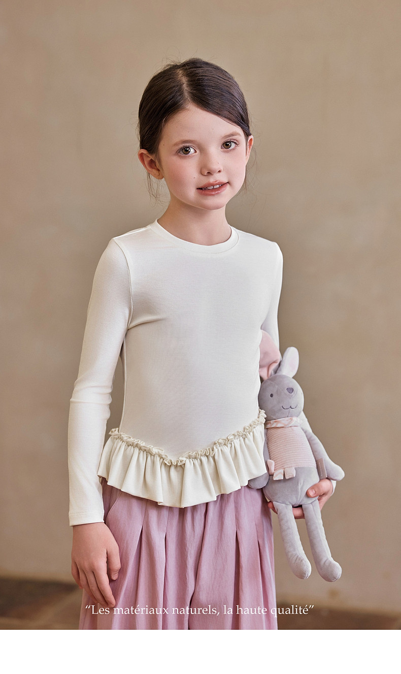 【云优选】Little Naive儿童拼接打底衫春季新款百搭T恤女童莱赛尔时髦上衣