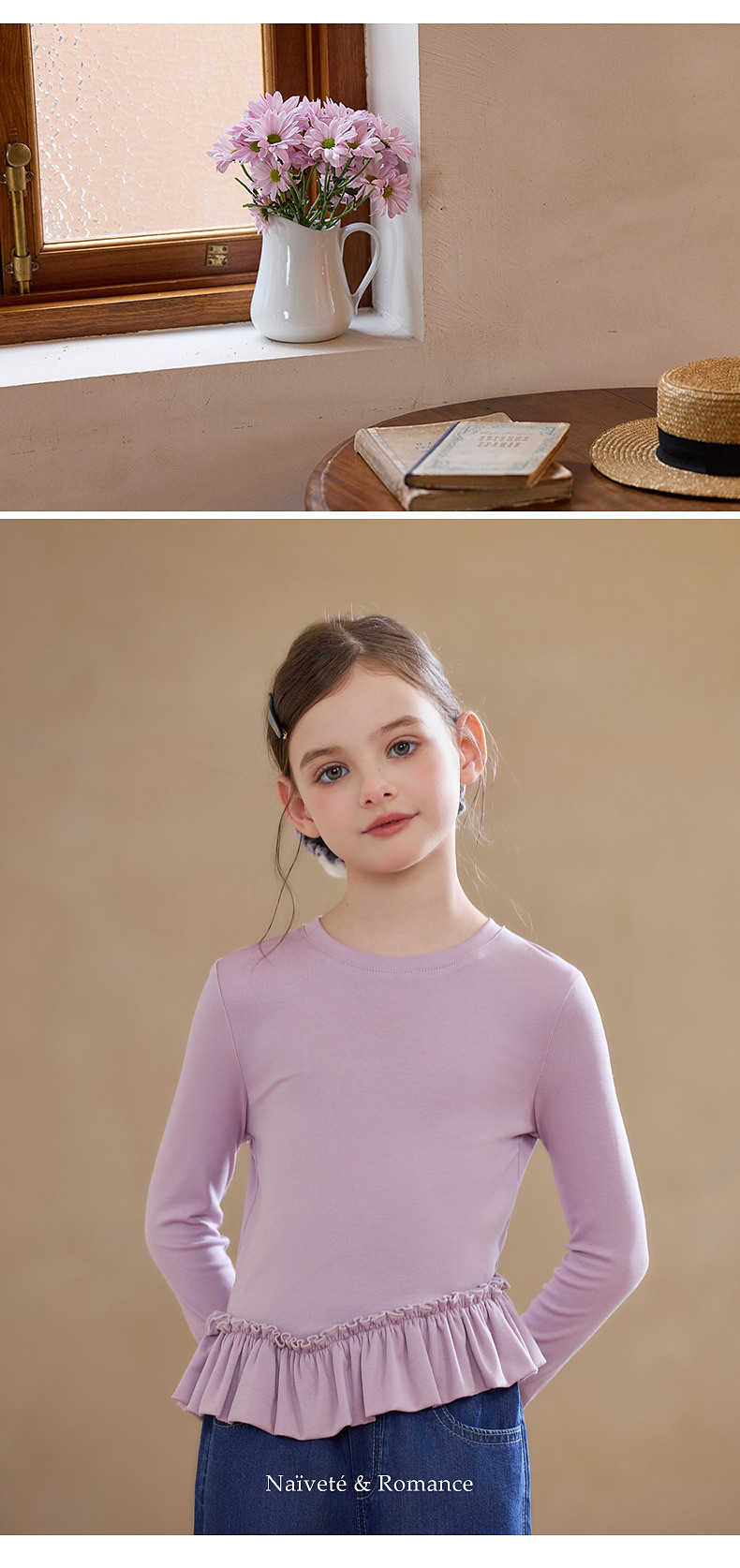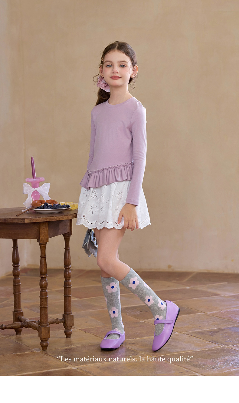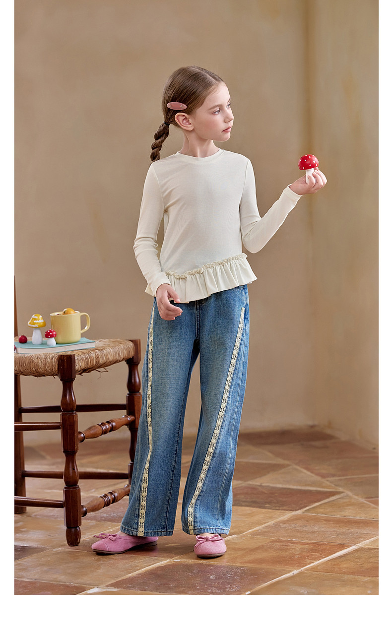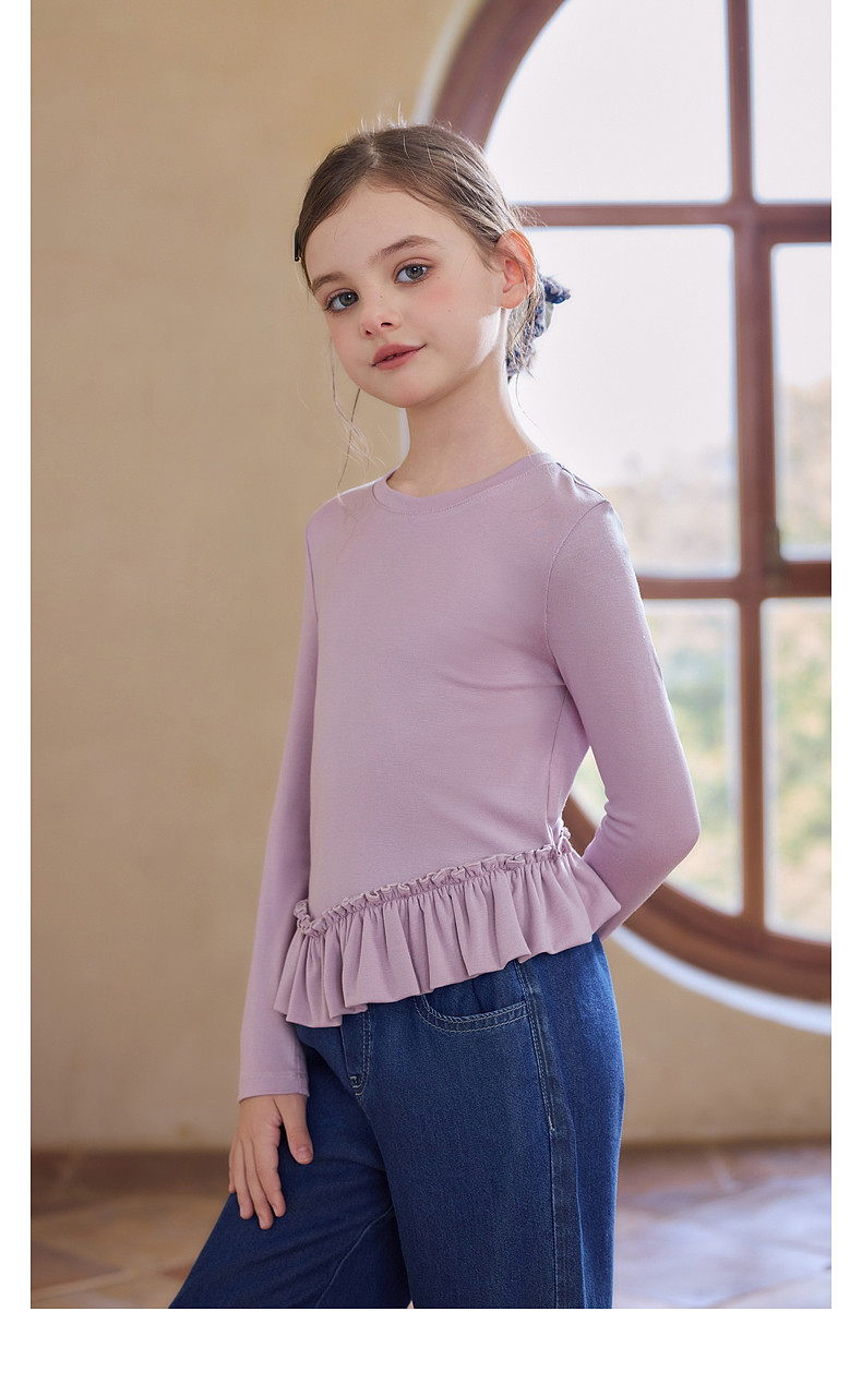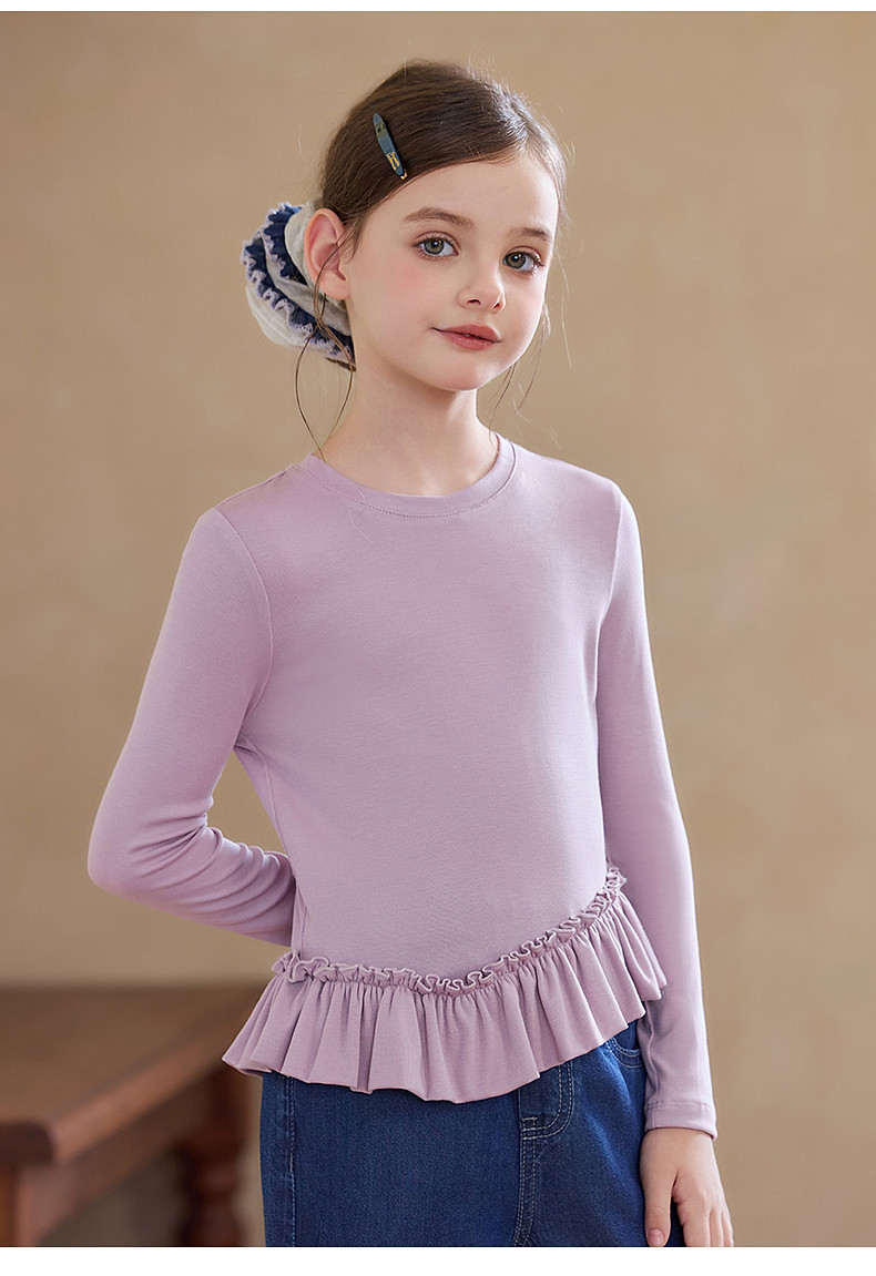 【云优选】Little Naive儿童拼接打底衫春季新款百搭T恤女童莱赛尔时髦上衣