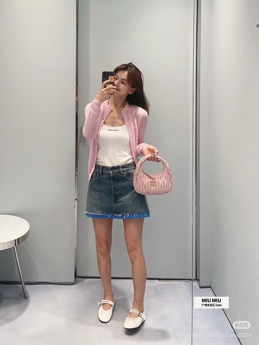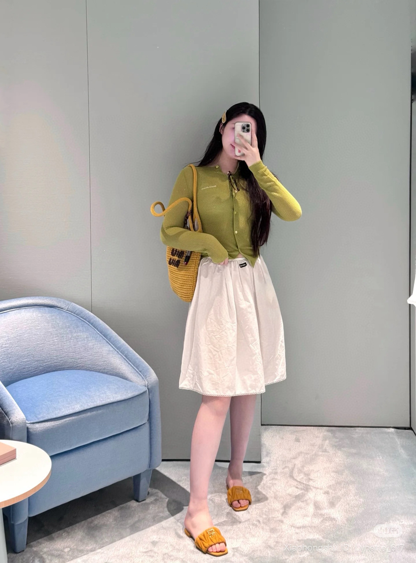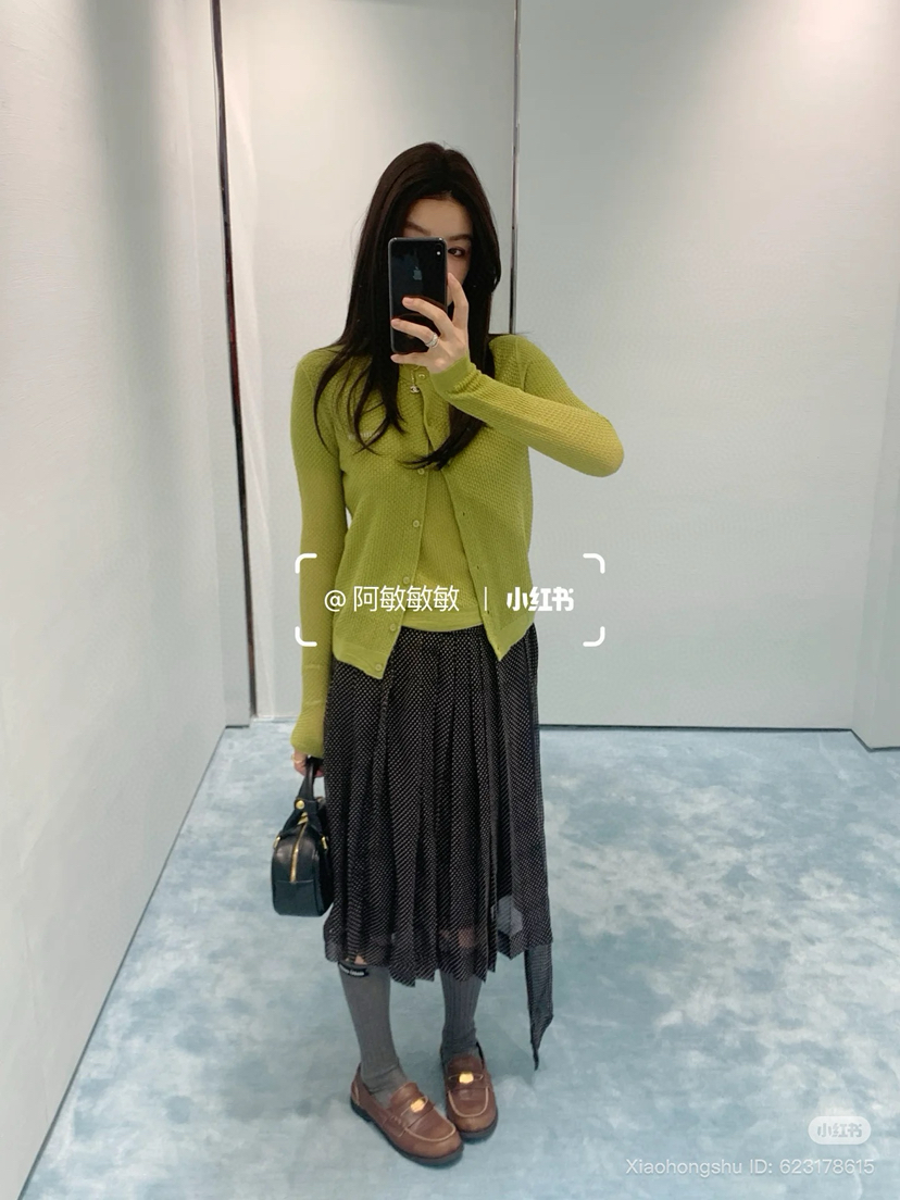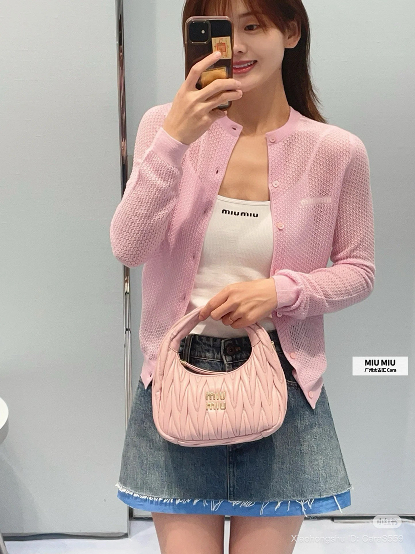 88-4 独家圆正miu马卡龙色镂空精纺羊绒小开衫 建议167/130穿44码。我135穿44略修身