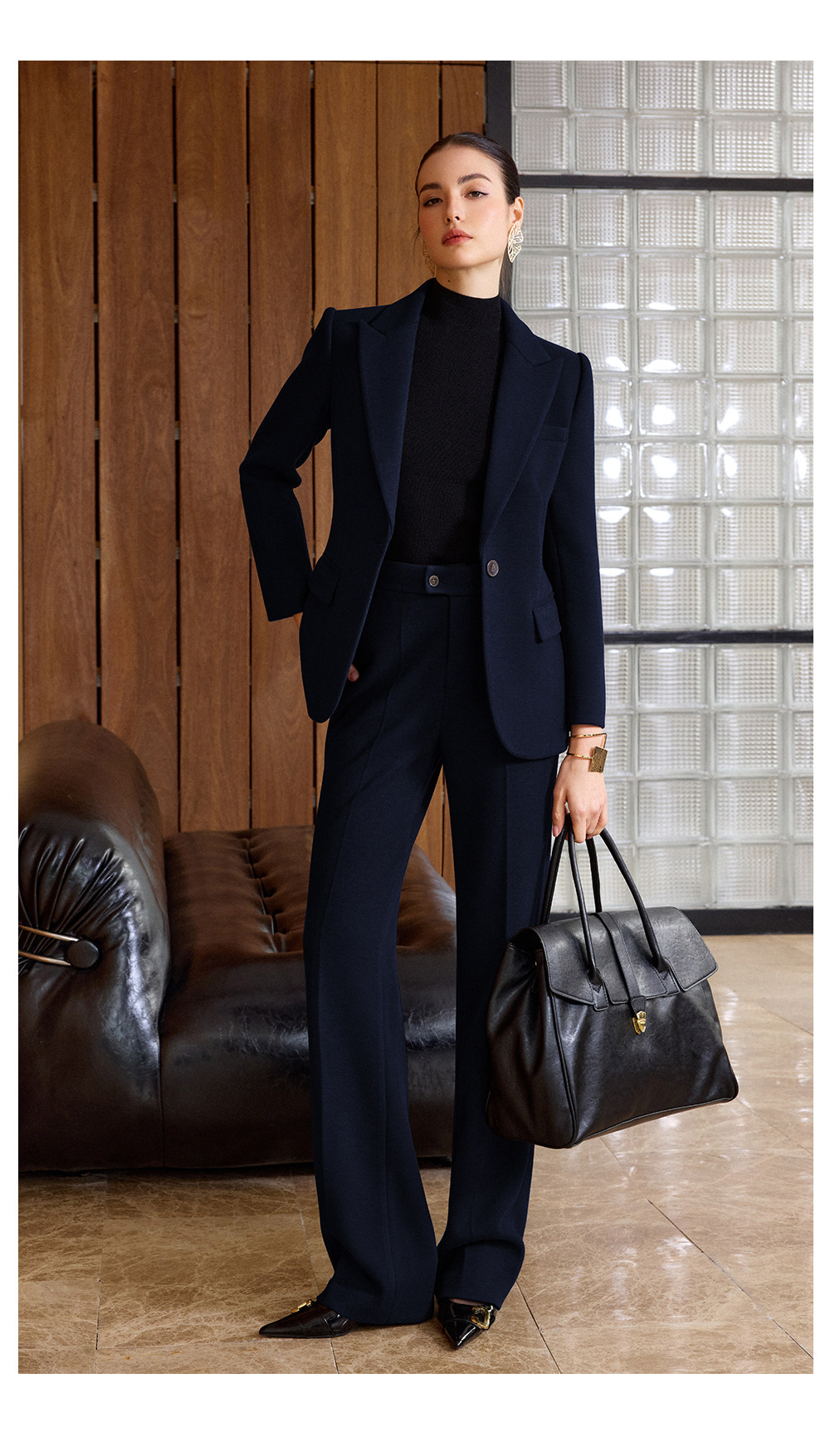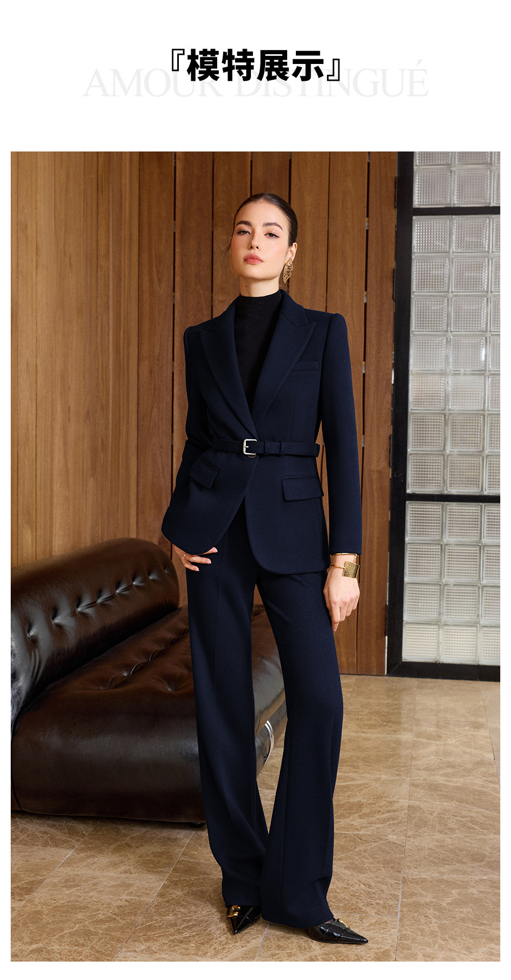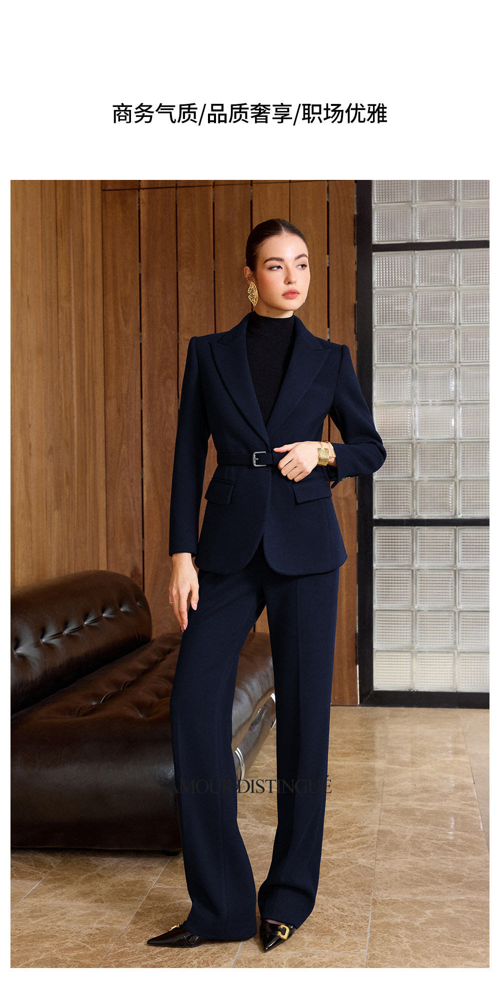 IWY/商务风藏青色西装套装女冬季新款收腰职业装通勤气质两件套工作服CP2579