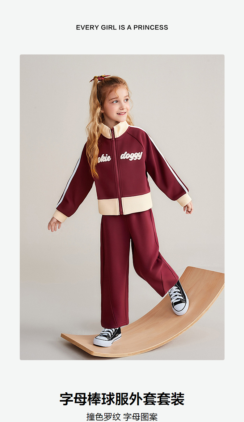 笛莎Deesha 童装女童套装2025秋新款女童字母棒球服外套套装