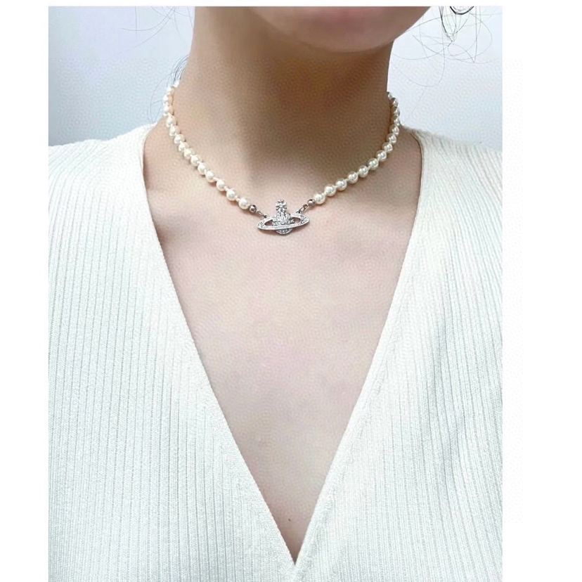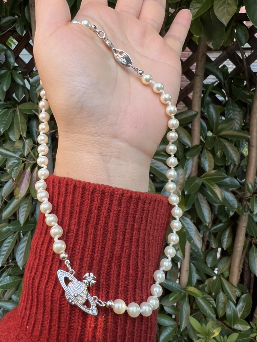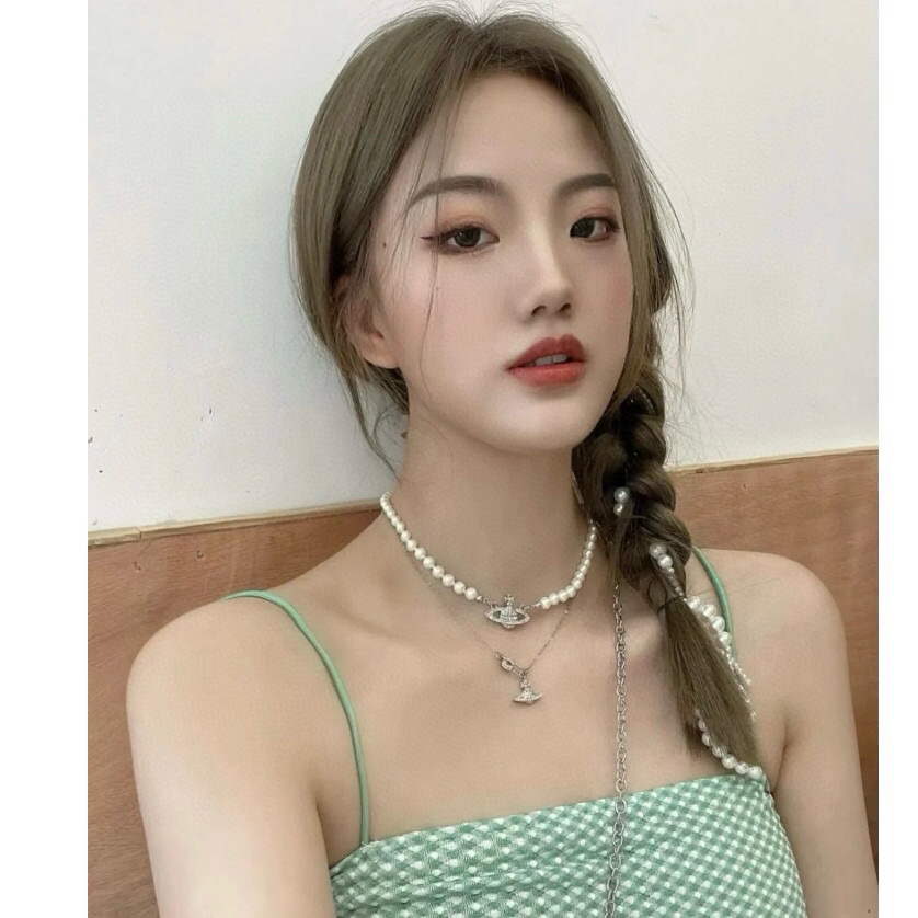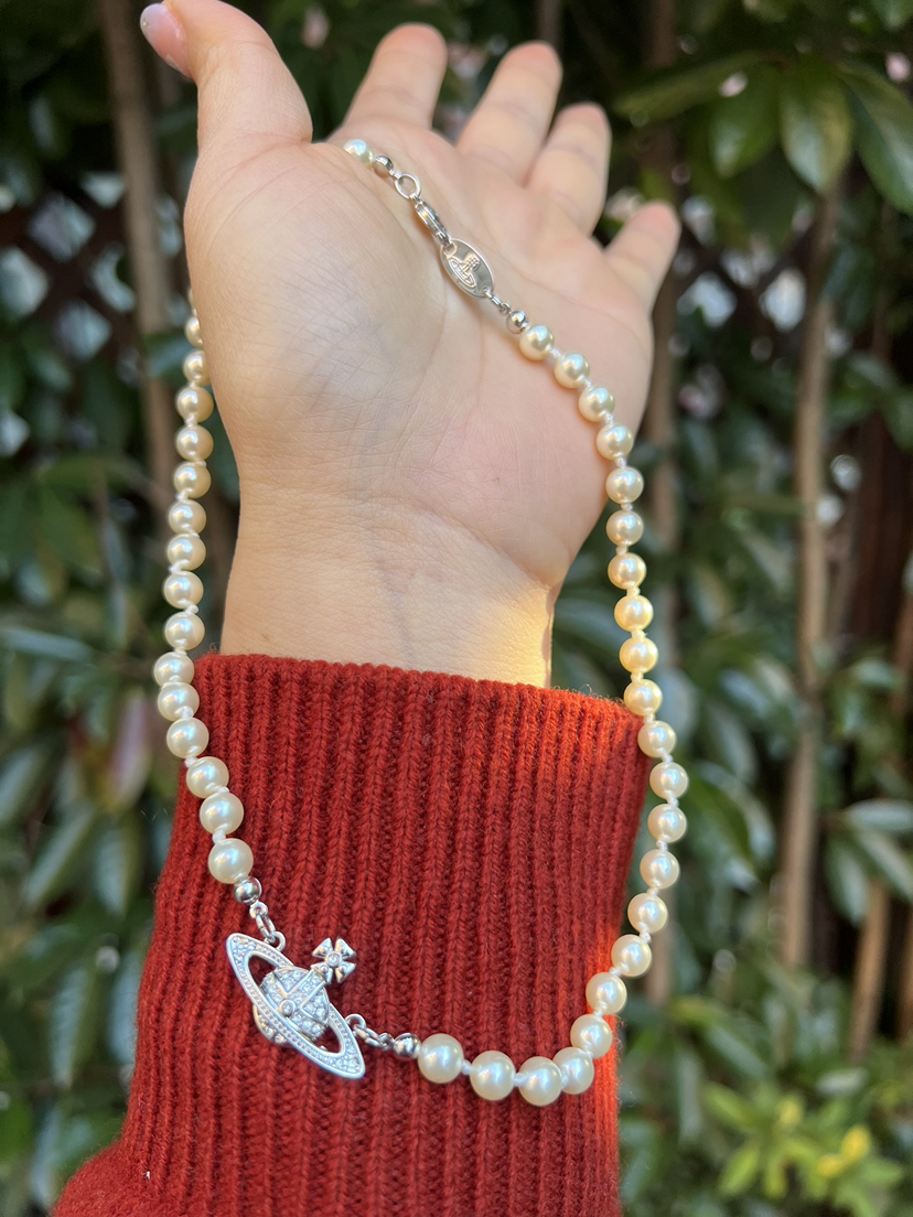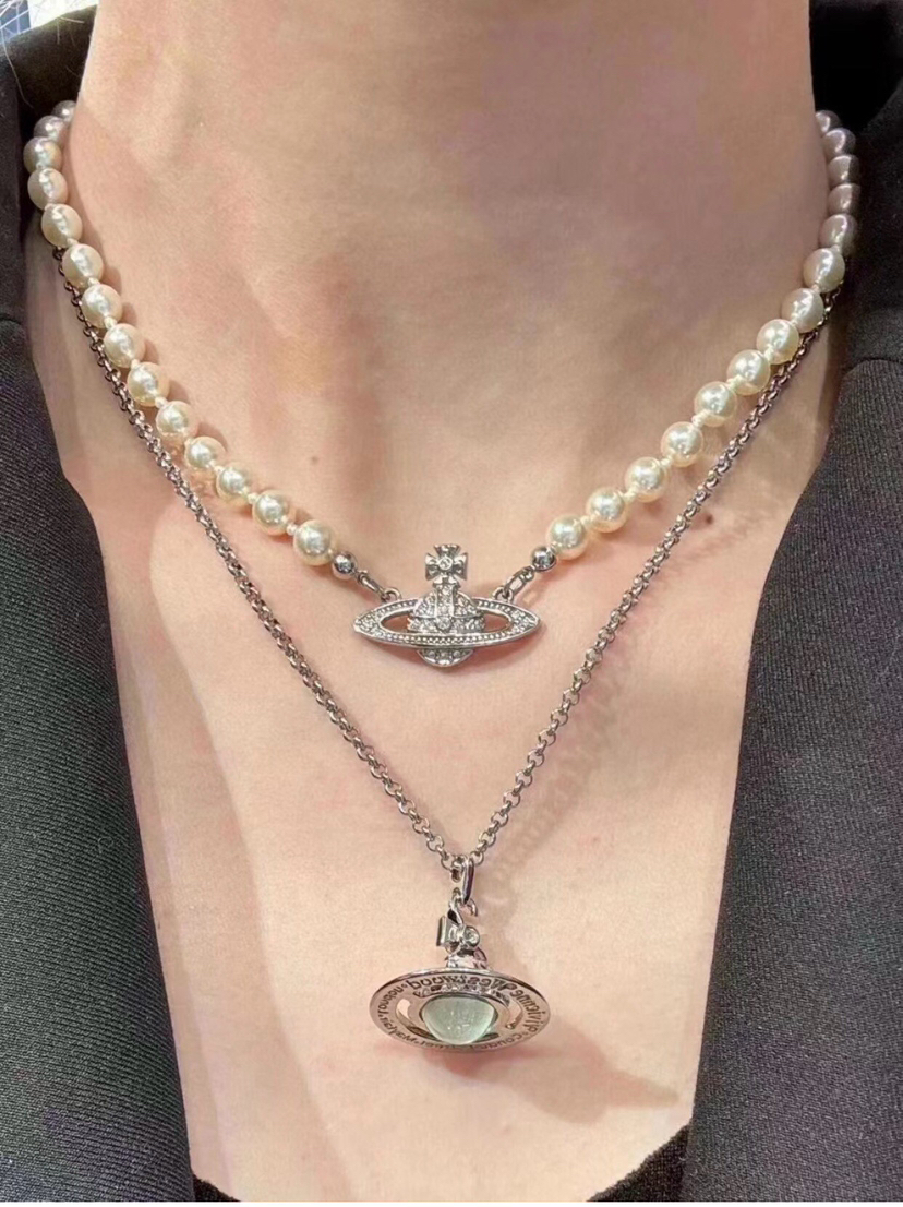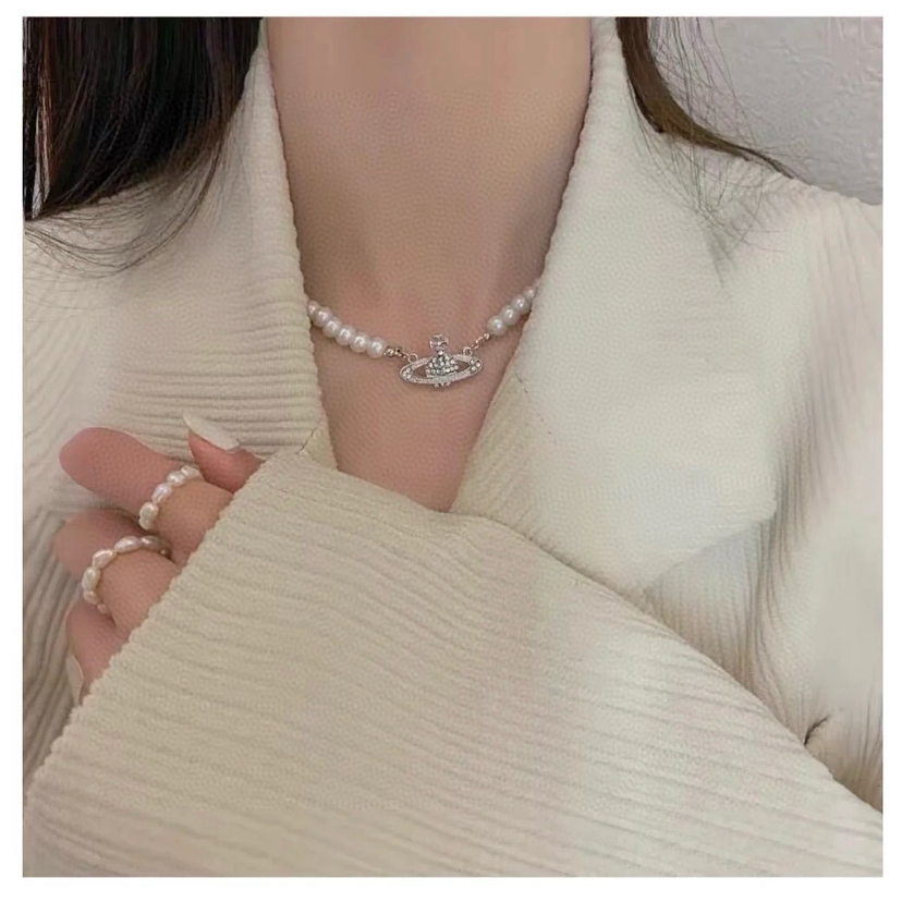 1029-3 现货发 圆正 无包装 西太后 土星吊坠 珍珠锁骨链 短项链