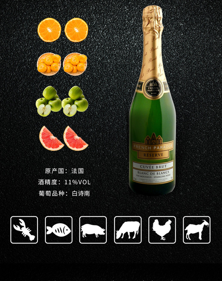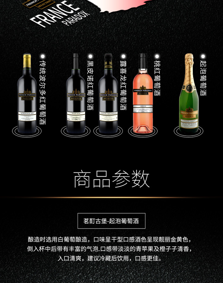 整箱特惠装 法国原瓶进口起泡酒 茗酊古堡起泡葡萄酒 French Paradox Sparkling 750ml*6