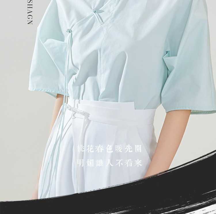 IWY/扶摇系列 夏季国风盘扣圆领五分袖衬衫24FYB311