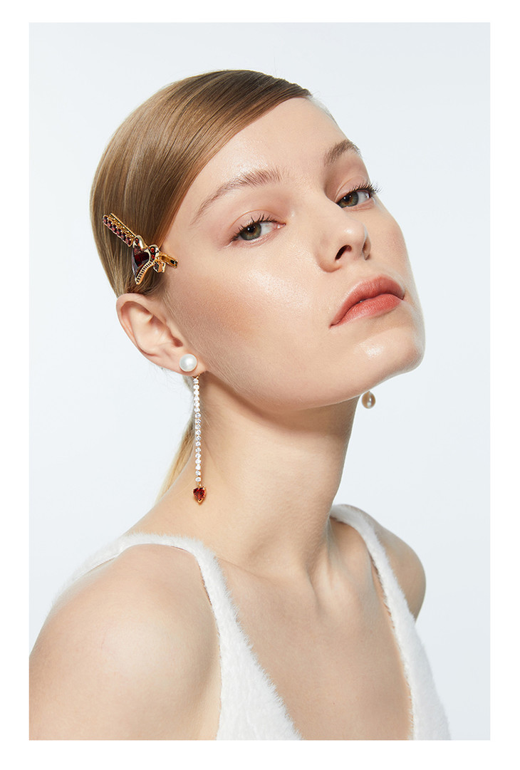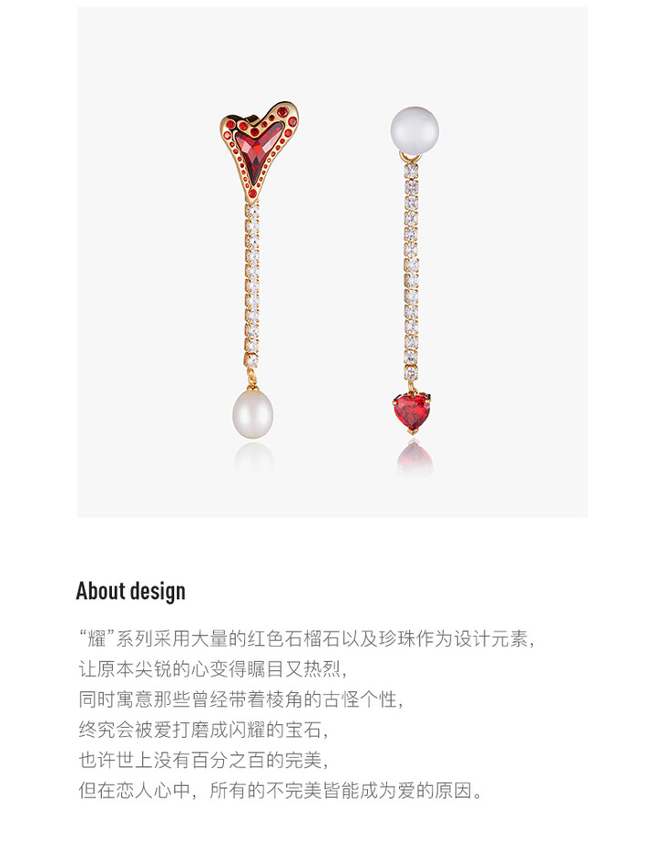 lost in echo 原创设计师品牌 可拆卸钻链不对称心形珍珠耳环情人节系列