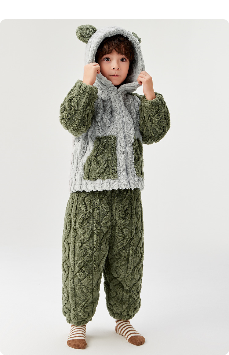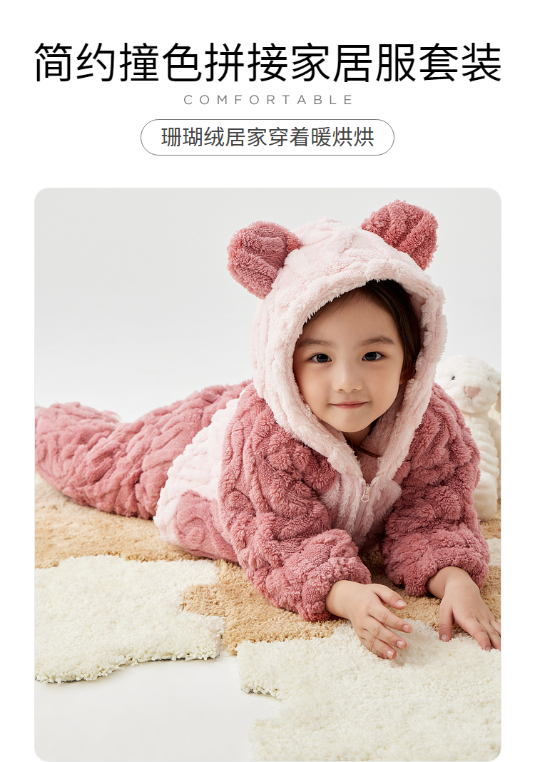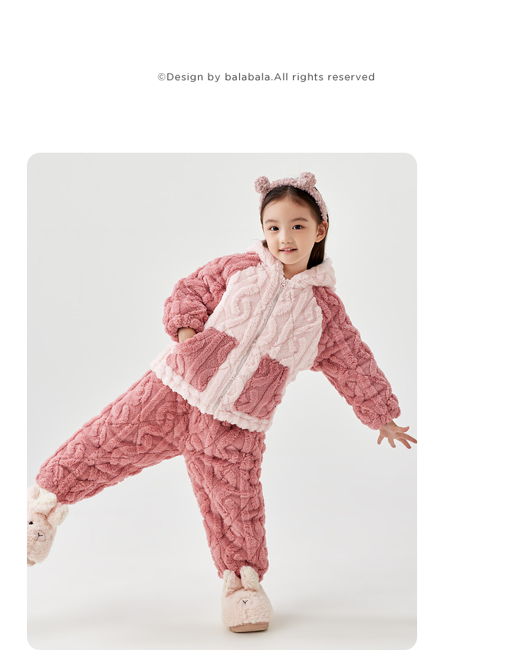 巴拉巴拉宝宝睡衣套装冬季加厚珊瑚绒男女童家居服加绒保暖可外出