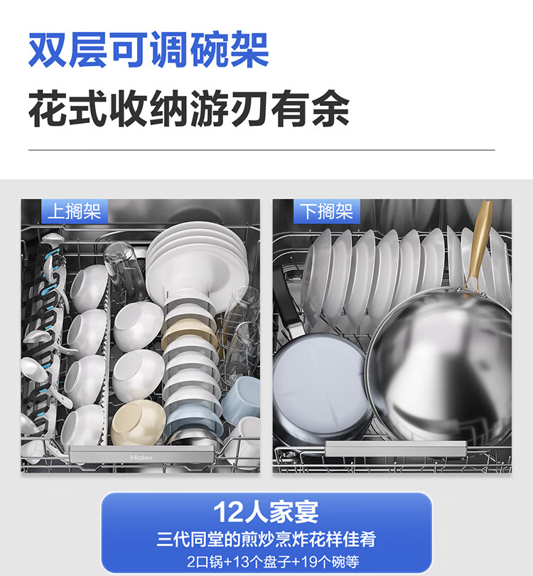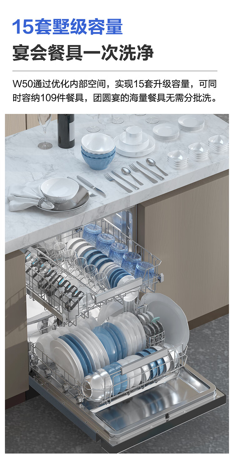 【W50 银河灰】海尔(Haier)15套 嵌入式双面洗洗碗机EYBW152266CWU1