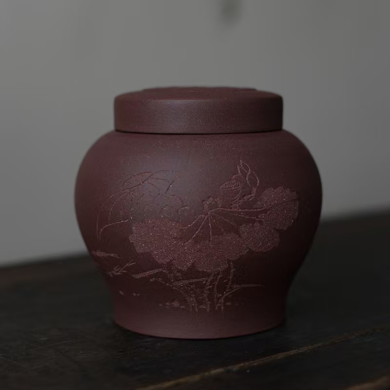 经典陶坊出品龙印紫泥紫砂茶叶罐