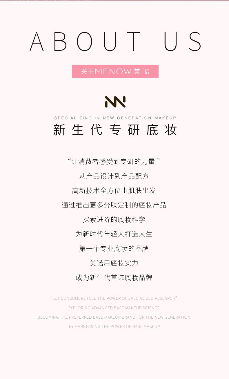 - 全球性彩妆品牌,专注开发高品质的适用性美妆产品。拥有20多年美妆经验,产品远销欧美等80多个国家。美诺彩妆致力于给用户带来“爱与美,年轻,不一样的品质彩妆体验”。