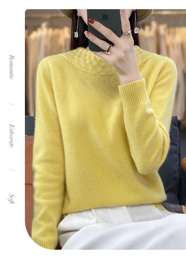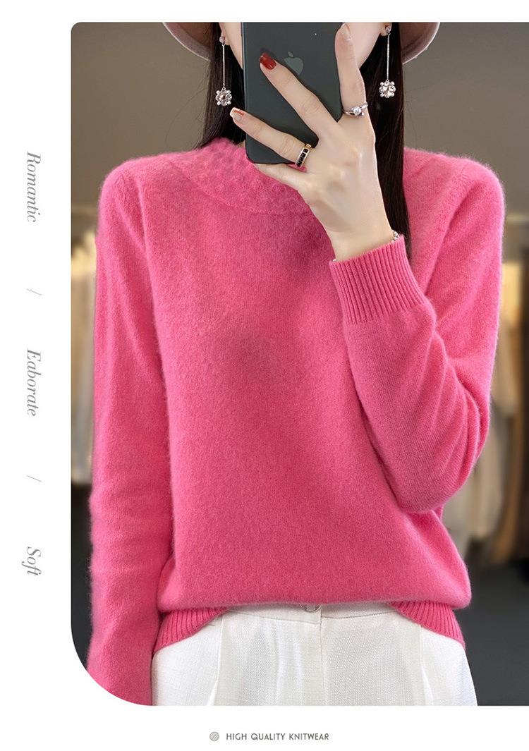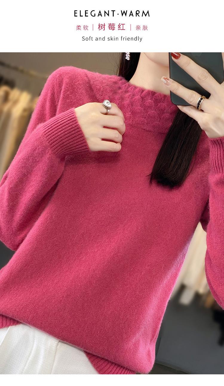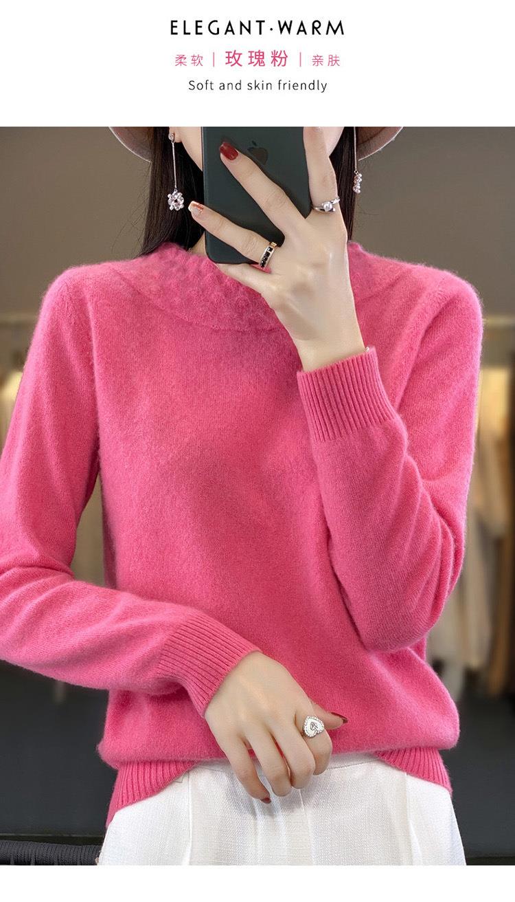 2023年秋冬新款韩版女士圆领长袖安迪绒针织衫女士套头纯色针织衫