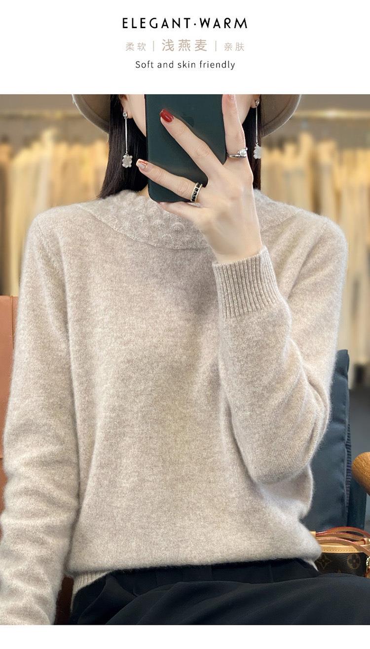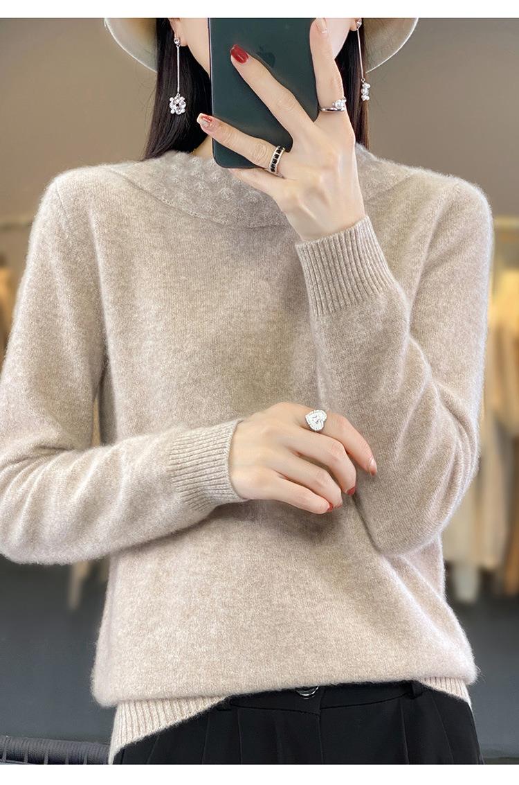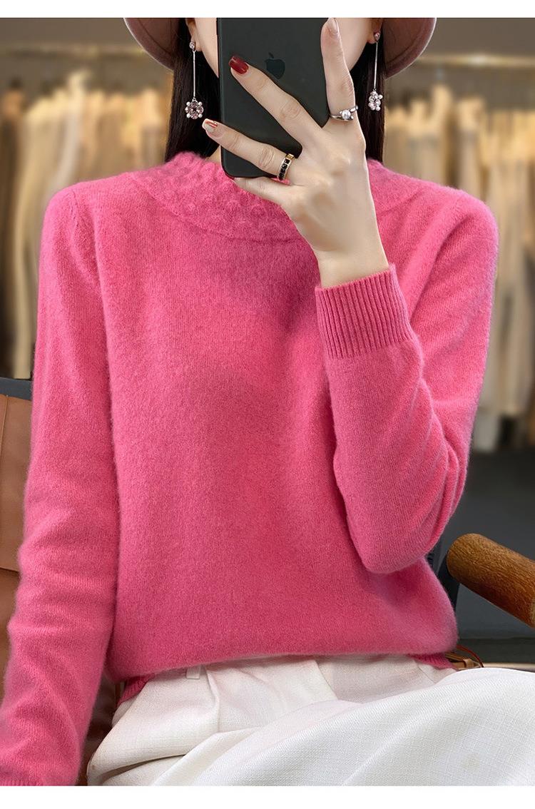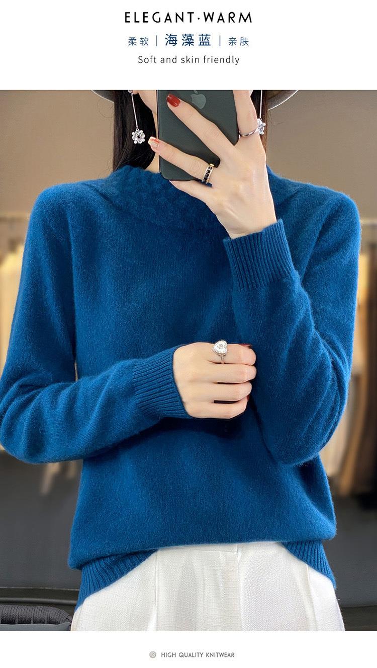 2023年秋冬新款韩版女士圆领长袖安迪绒针织衫女士套头纯色针织衫