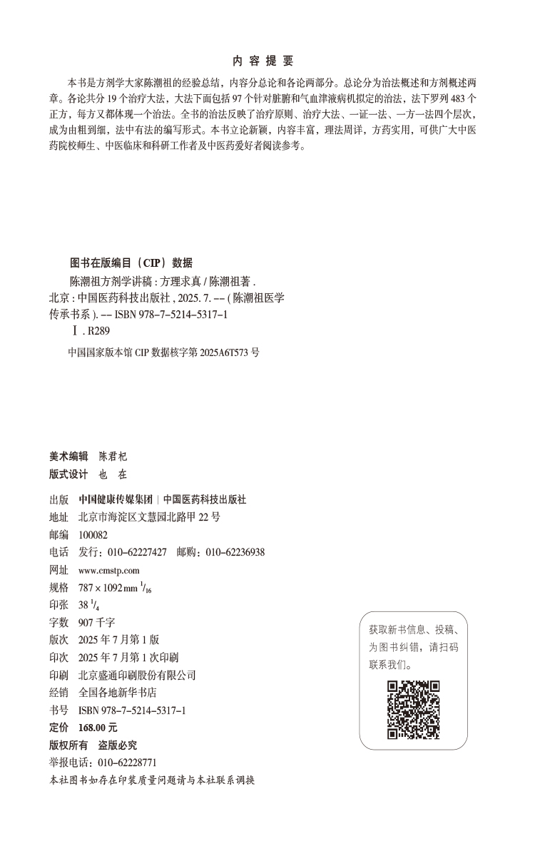 书名:陈潮祖方剂学讲稿——方理求真