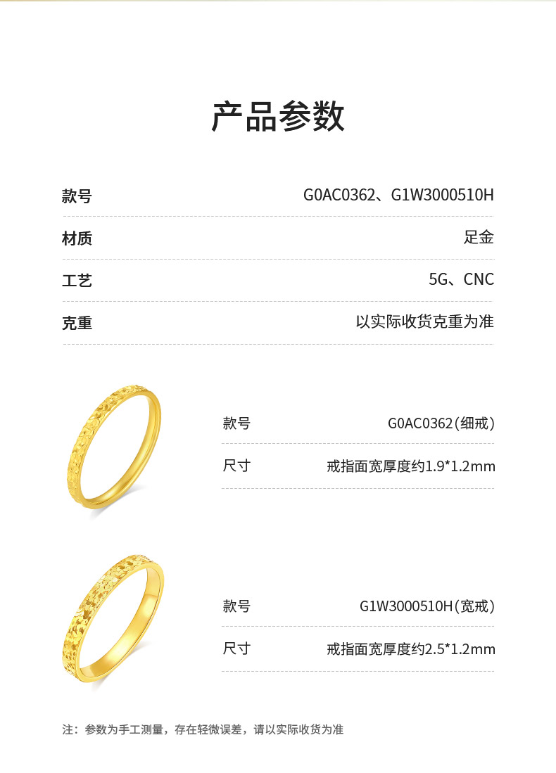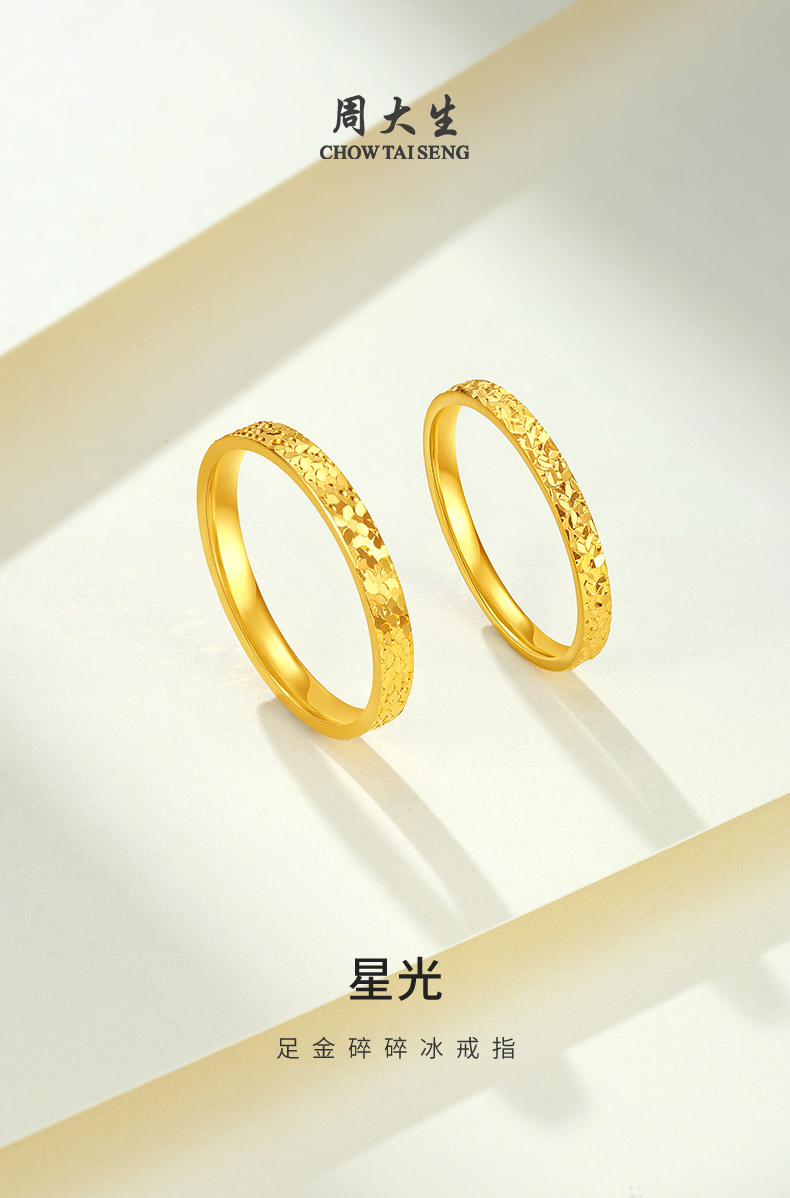 周大生黄金戒指足金手饰5G指环碎碎冰闪闪亮生日礼物送女友送闺蜜送自己
