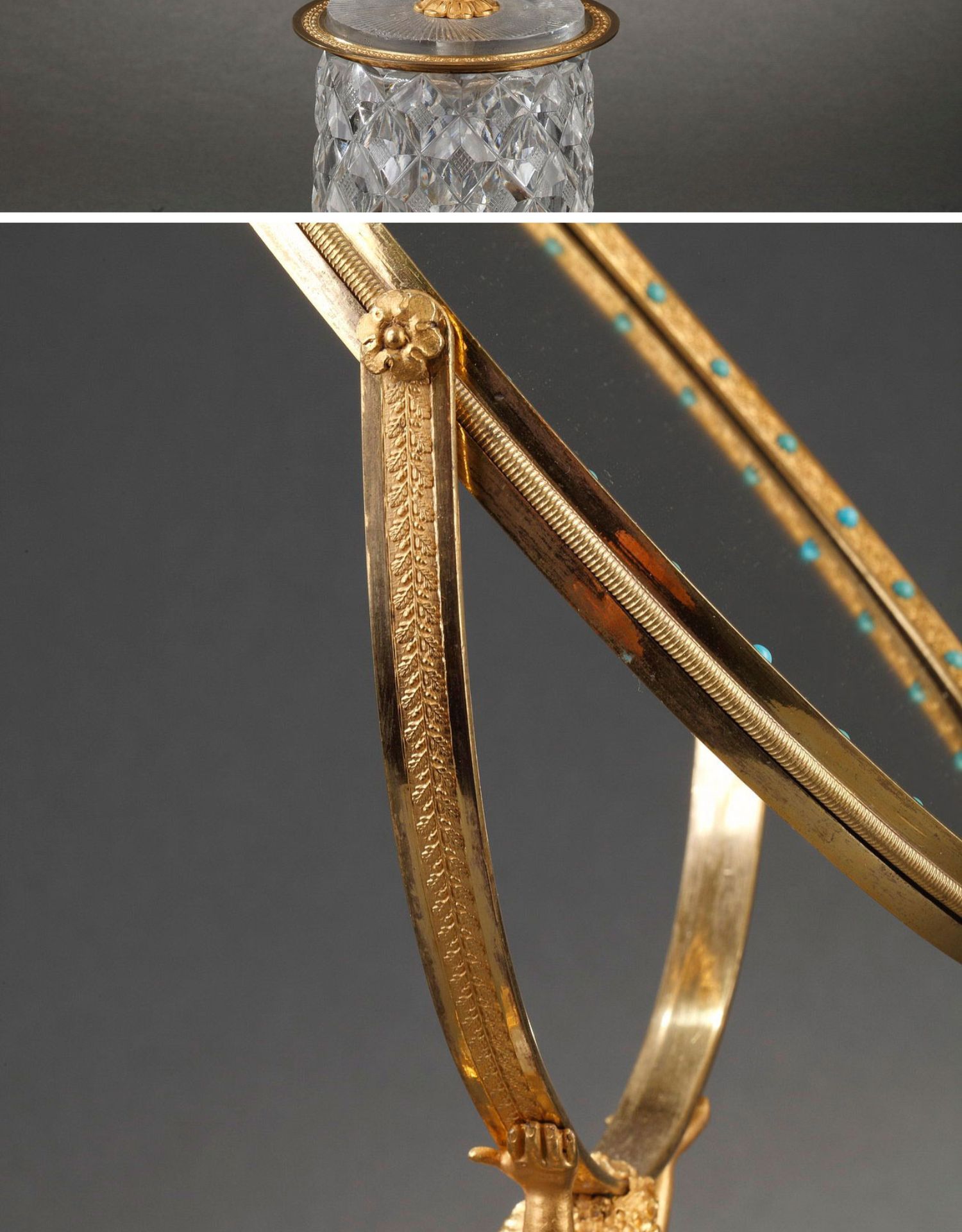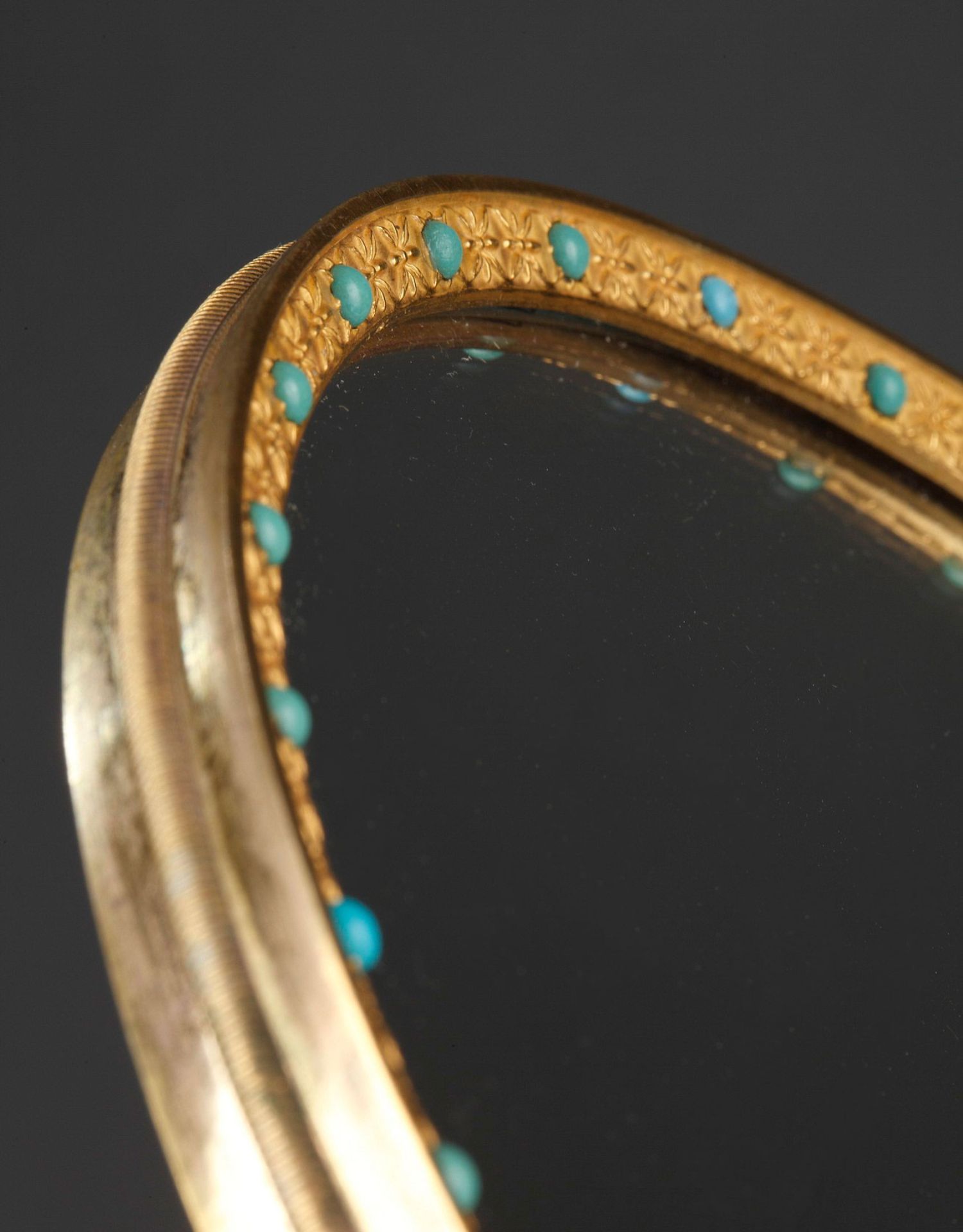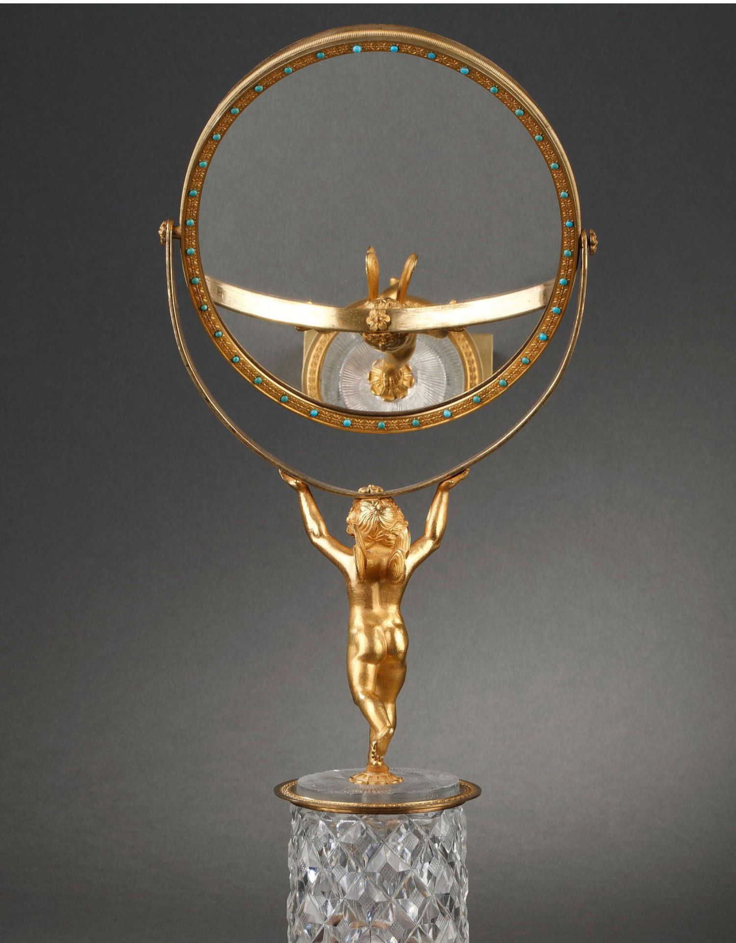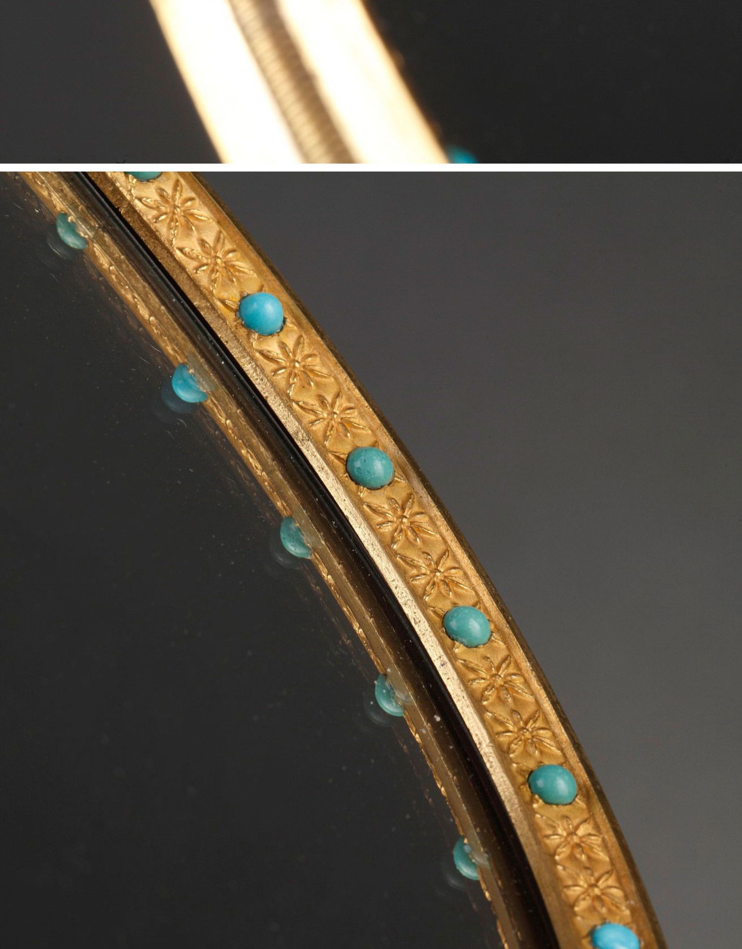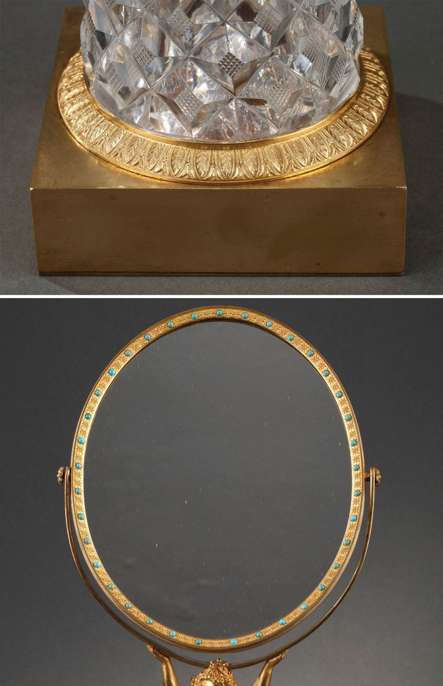 独角鹿西洋古董法国小天使造型铜鎏⾦绿松⽯⽔晶⾳乐盒式梳妆镜