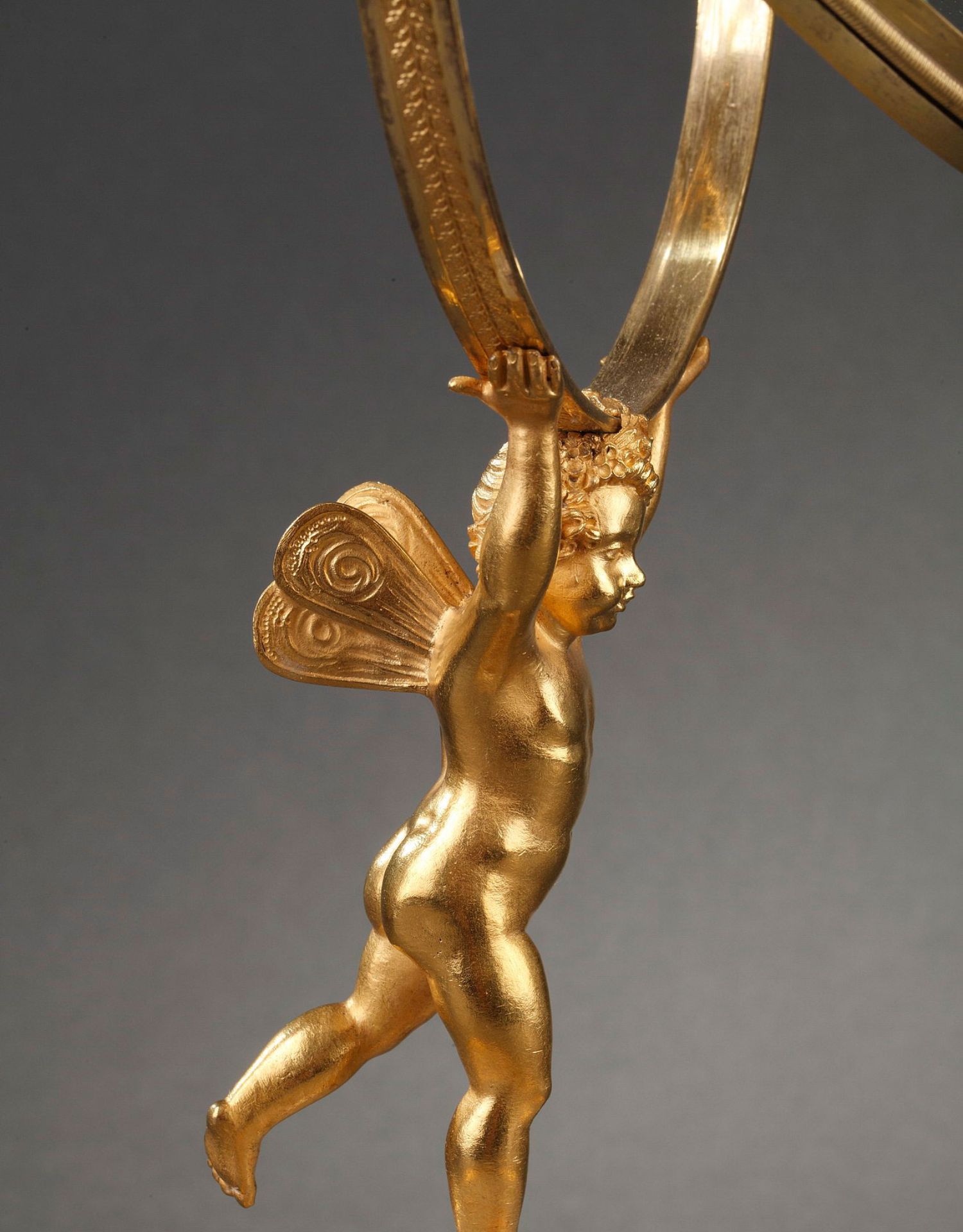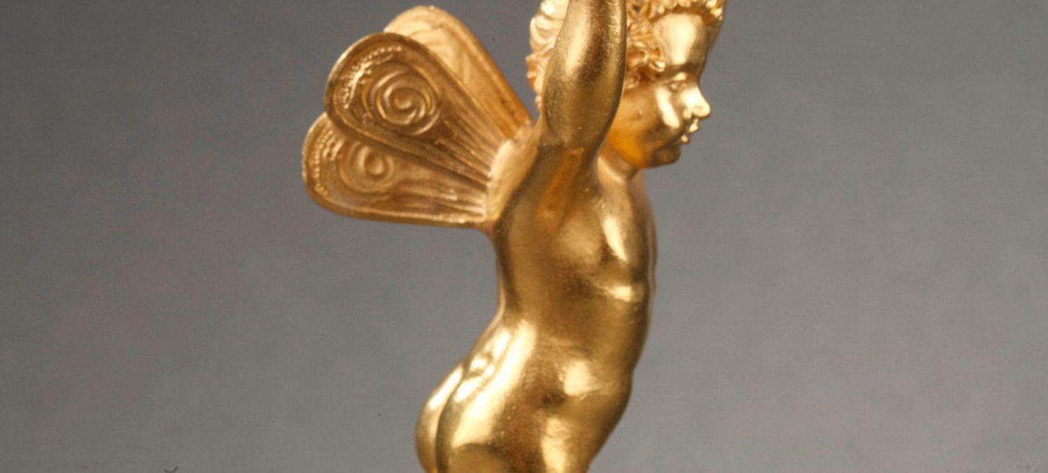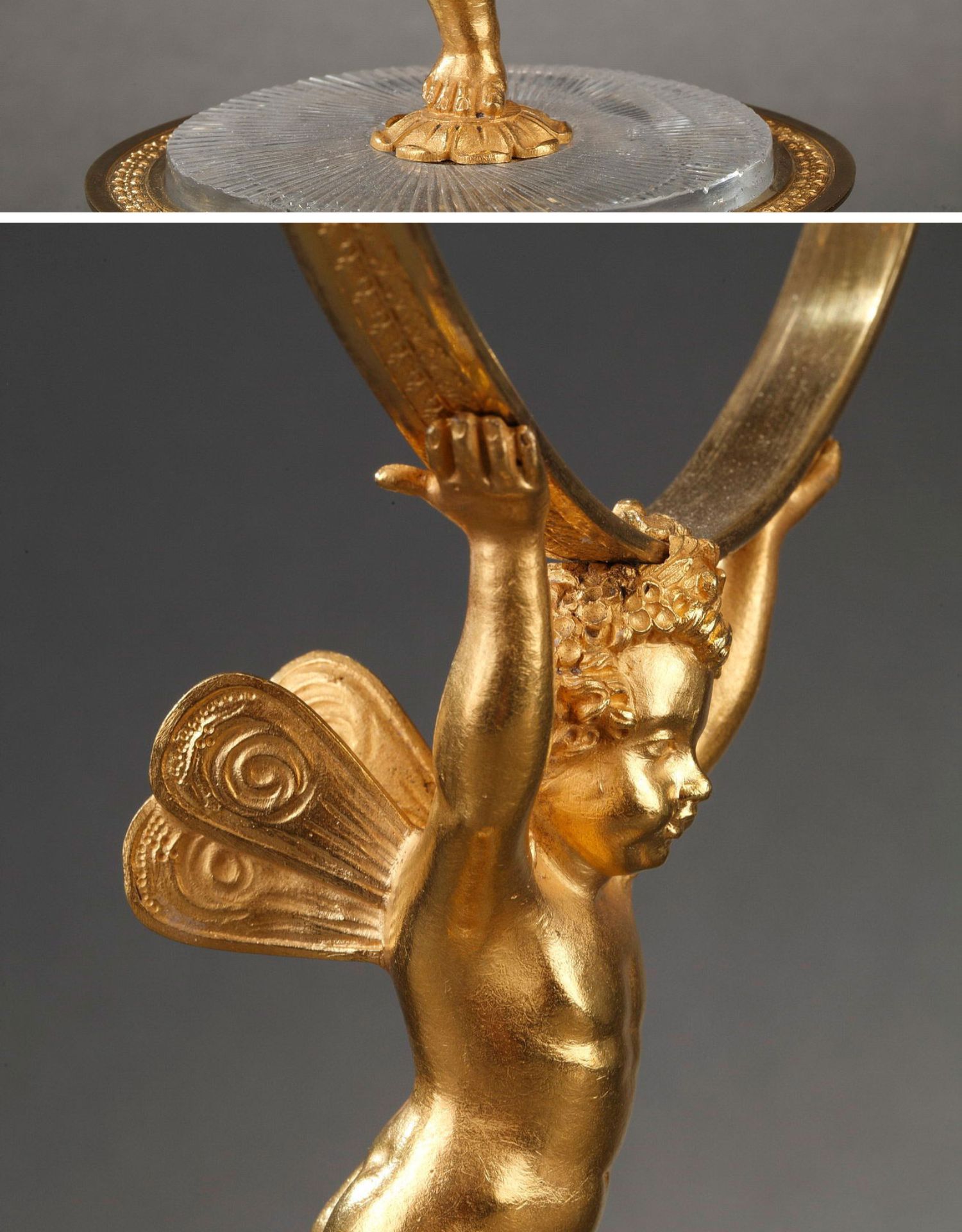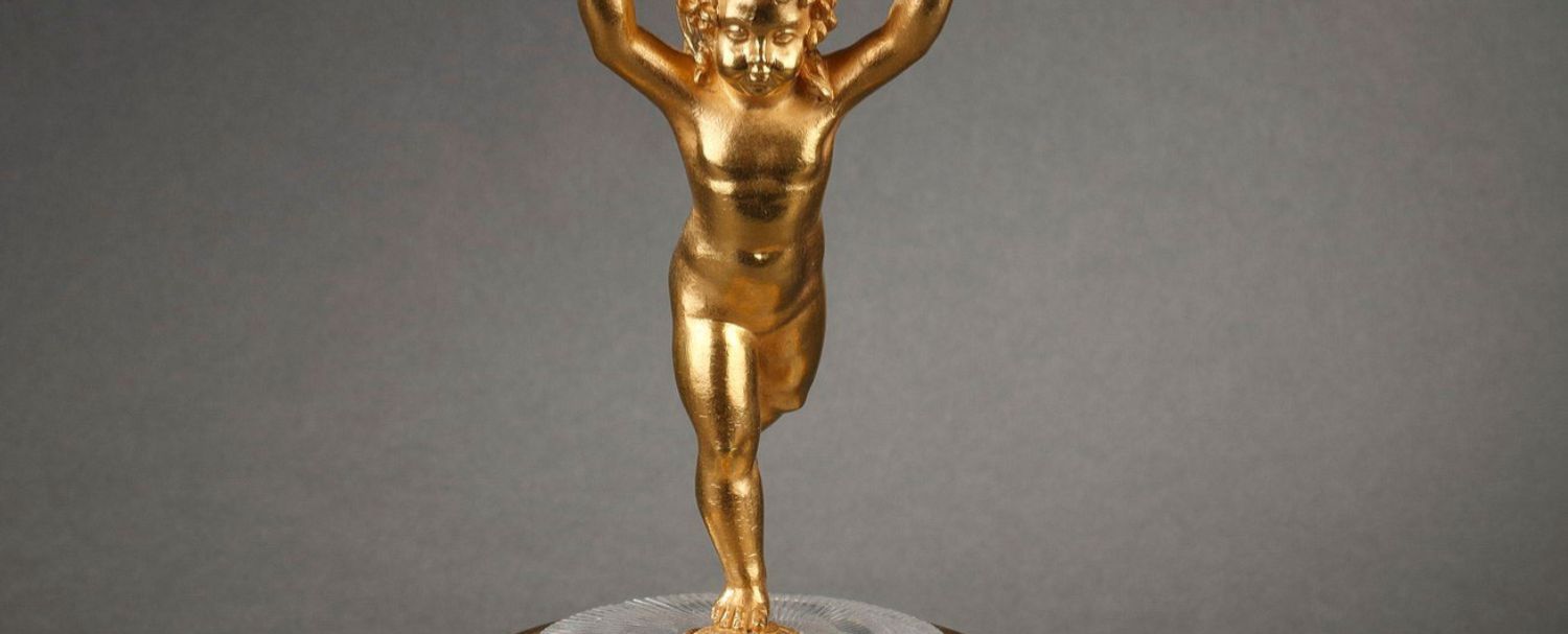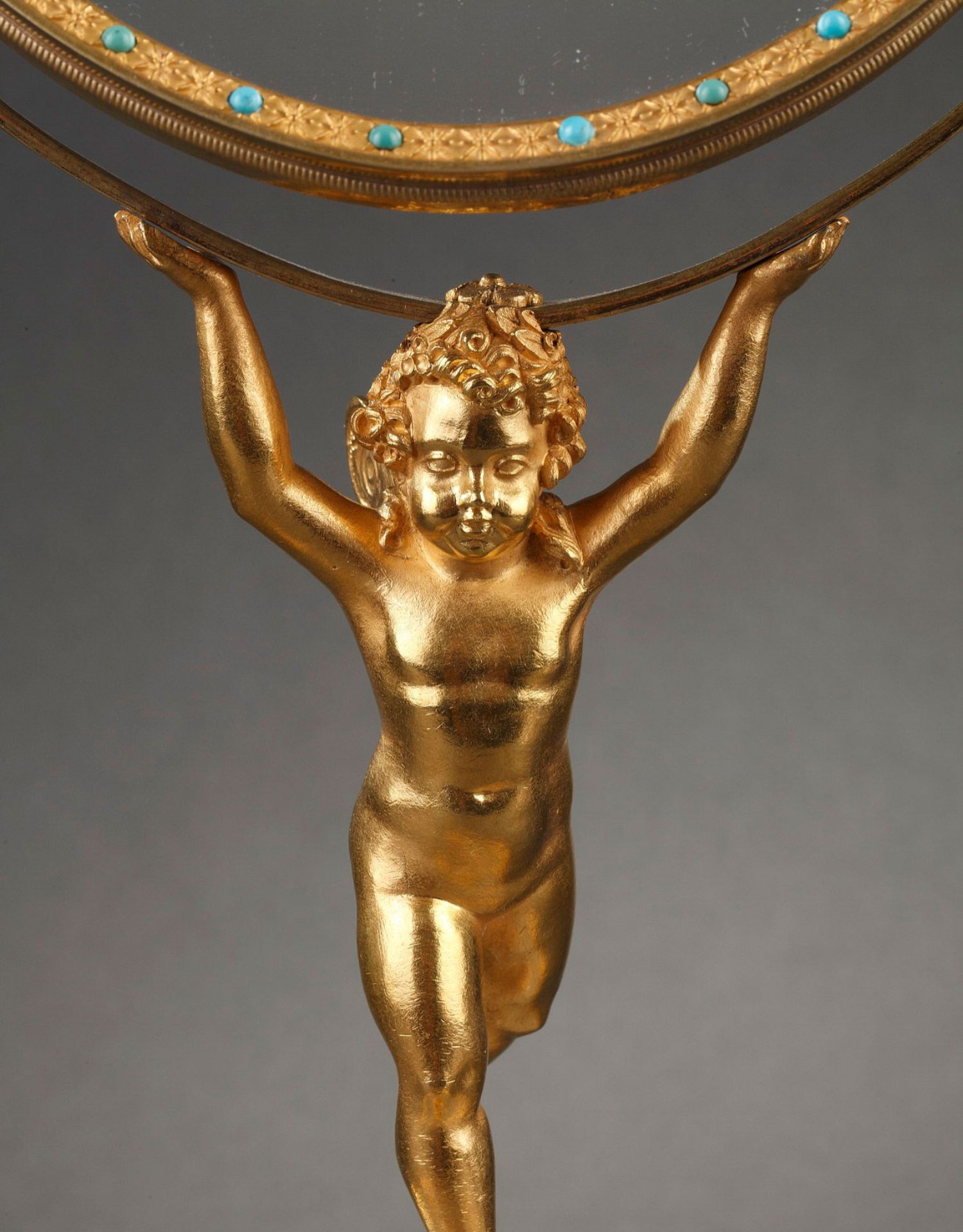独角鹿西洋古董法国小天使造型铜鎏⾦绿松⽯⽔晶⾳乐盒式梳妆镜