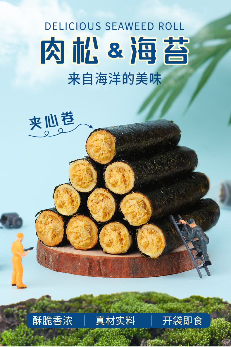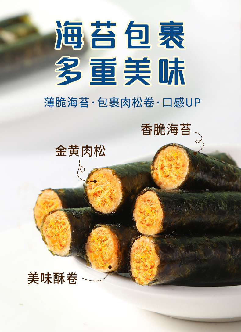 【来自海洋的味道!网红海苔肉松卷夹心海苔脆】鲜香酥脆香脆可口,金黄肉松薄脆海苔,酥脆香浓咔滋咔滋,独立包装即食脆紫菜儿童休闲零食小吃儿童营养品健康