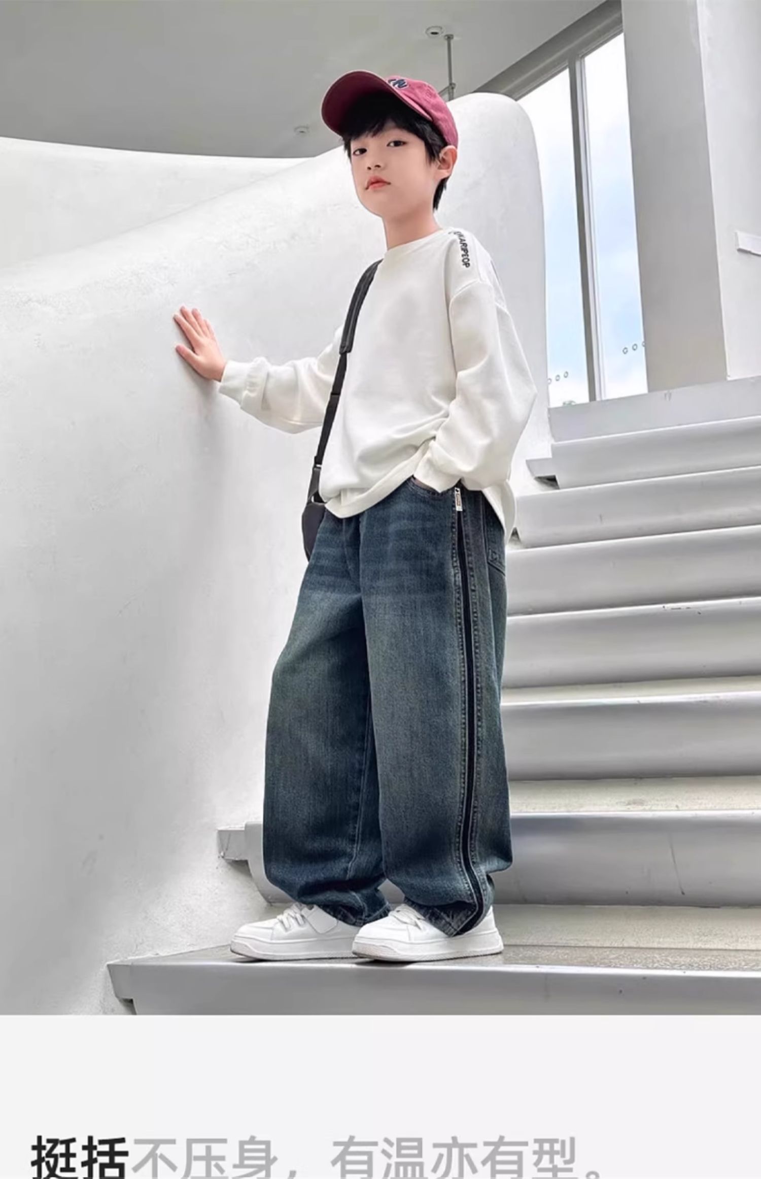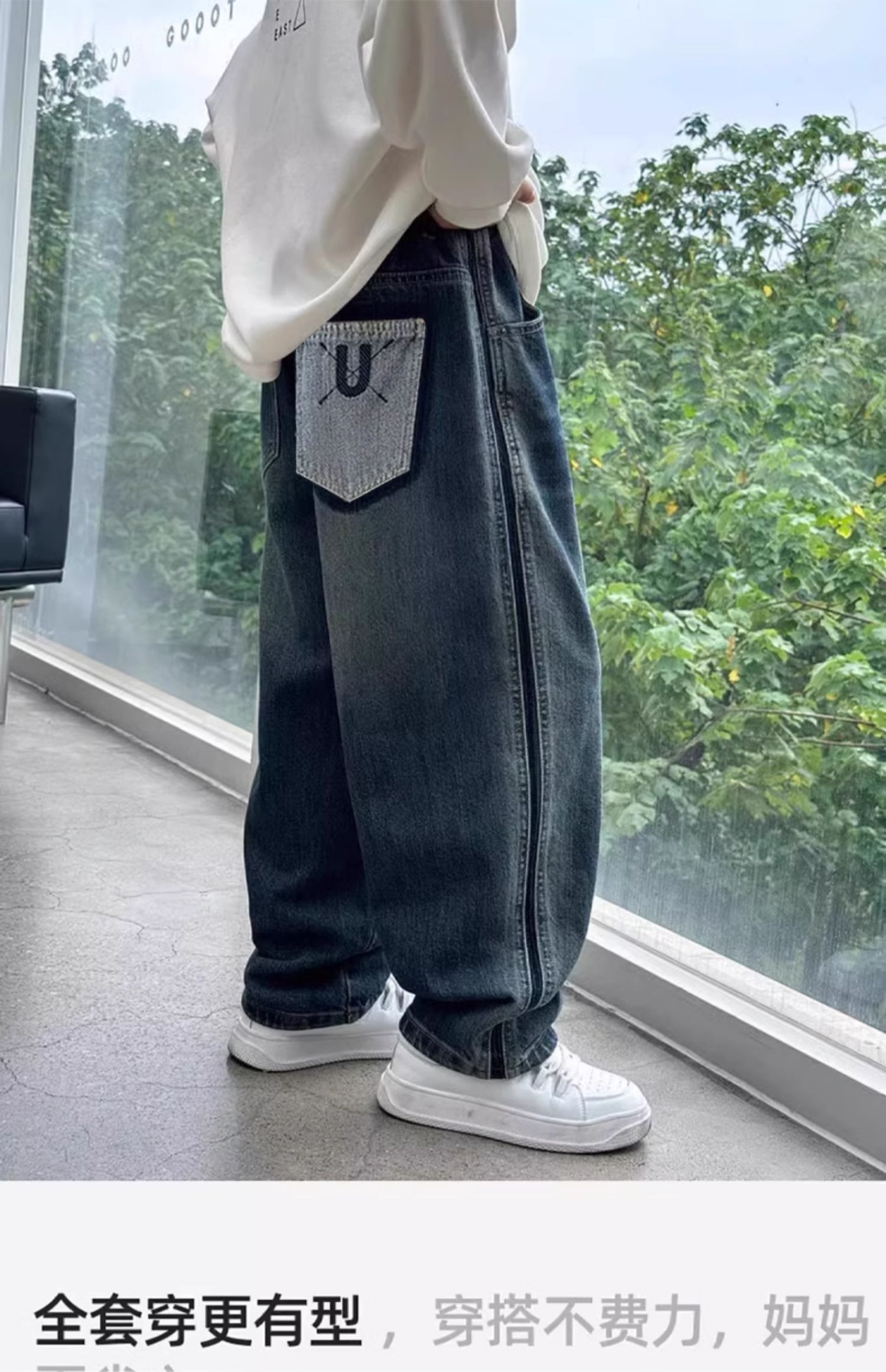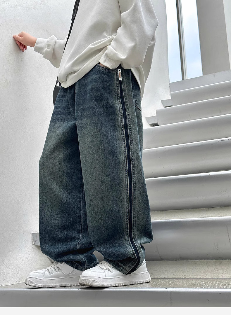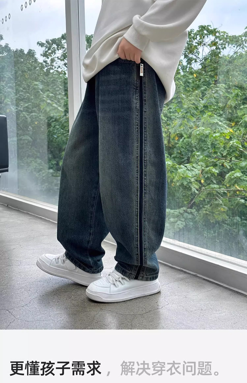 儿童秋装牛仔裤男童裤子韩版运动风时髦阔腿裤男孩长裤洋气潮120-170cm