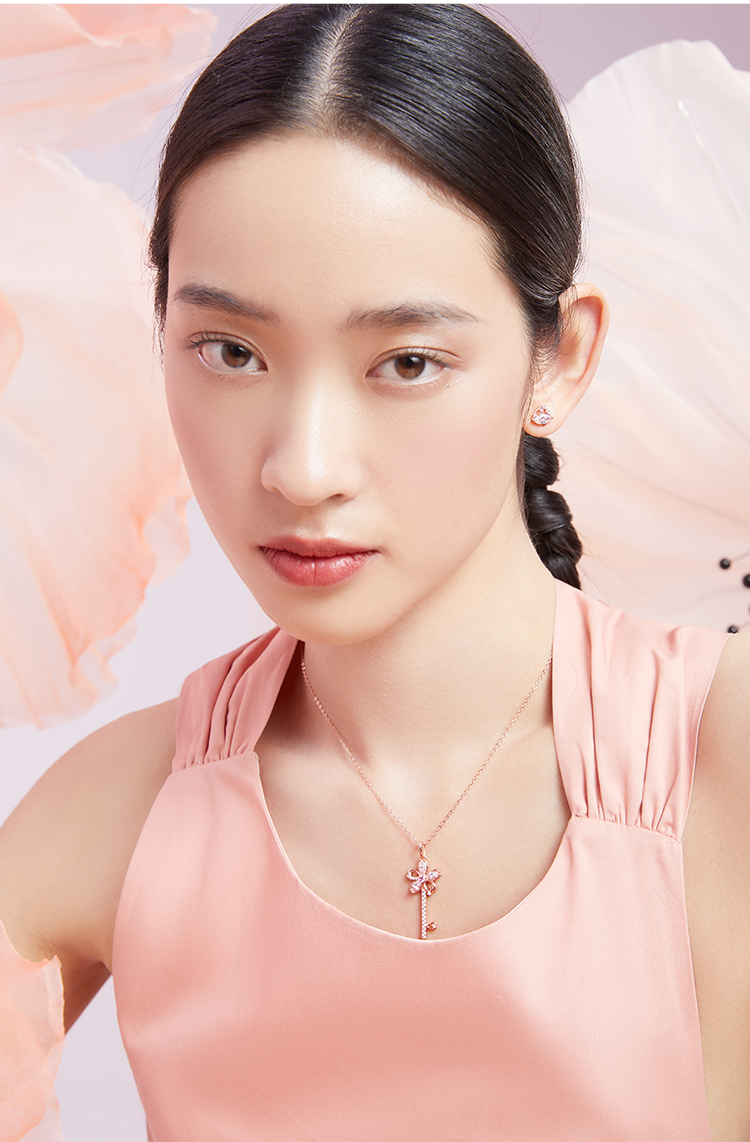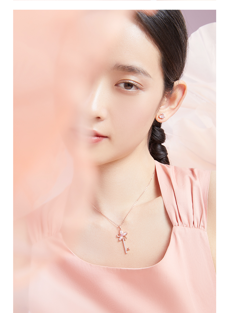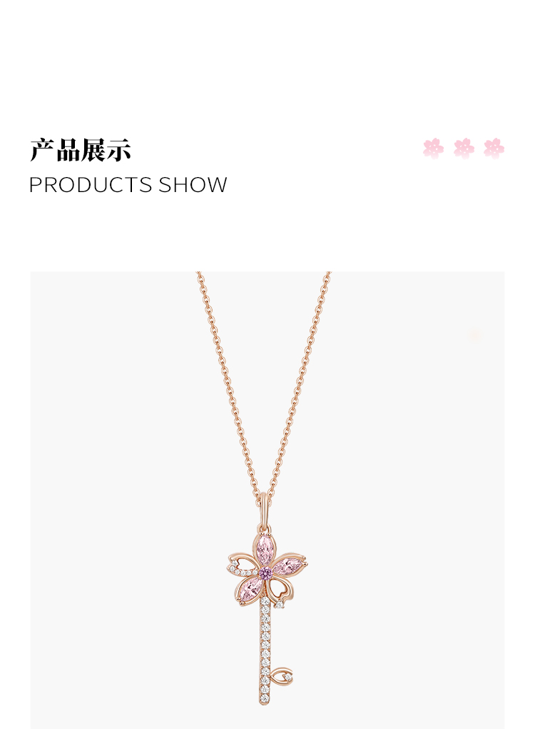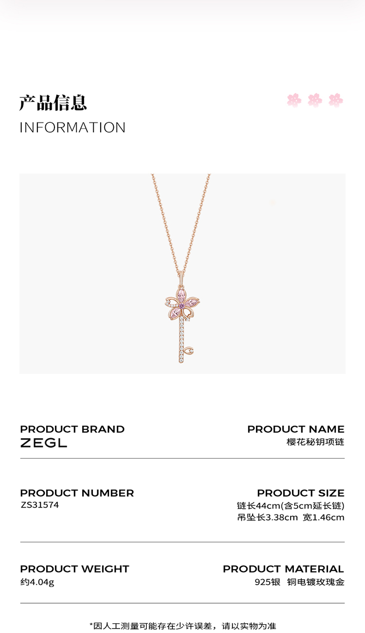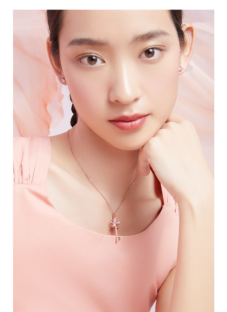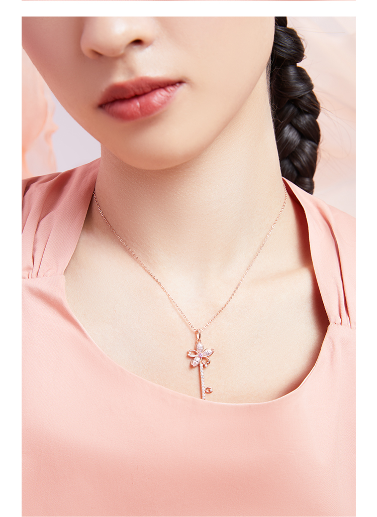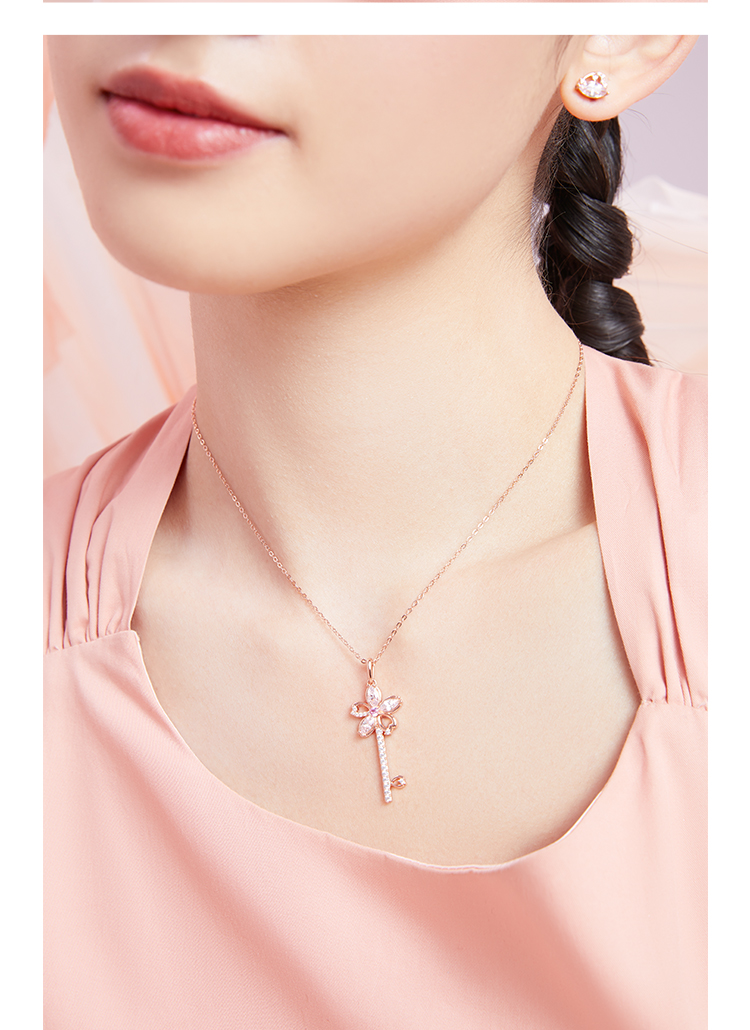 ZEGL设计师春日樱花系列925纯银花朵钥匙项链女玫瑰金锁骨链配饰