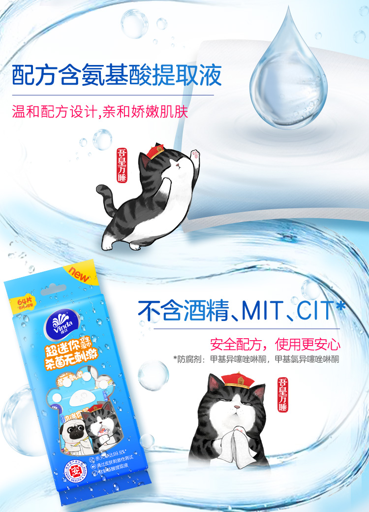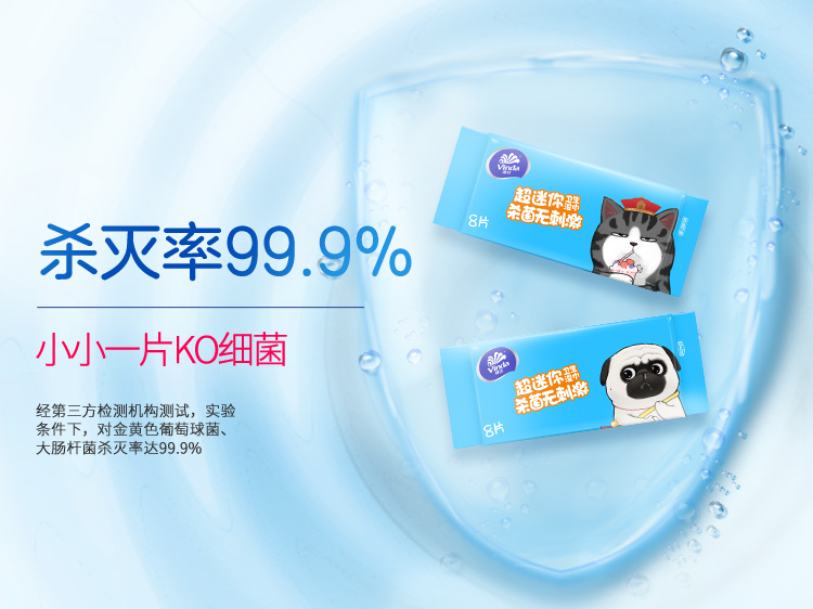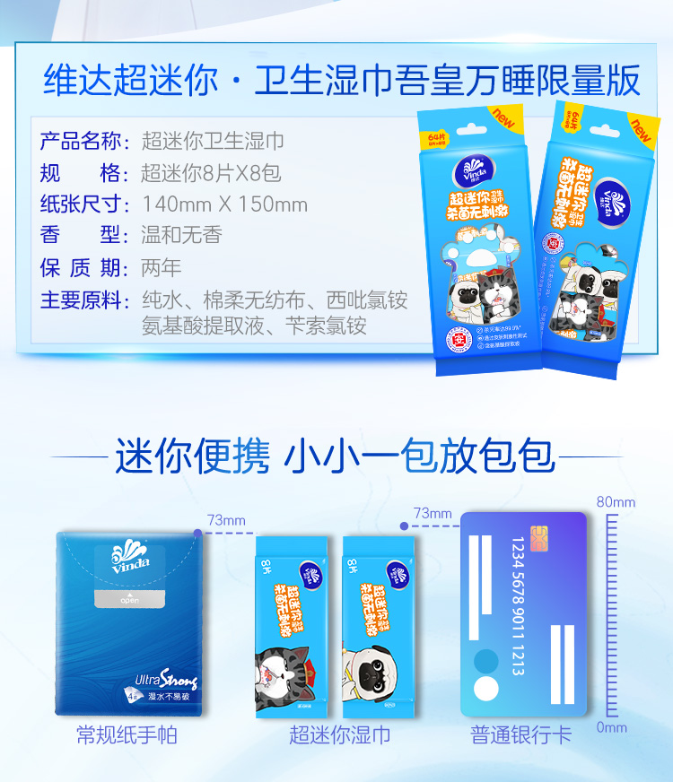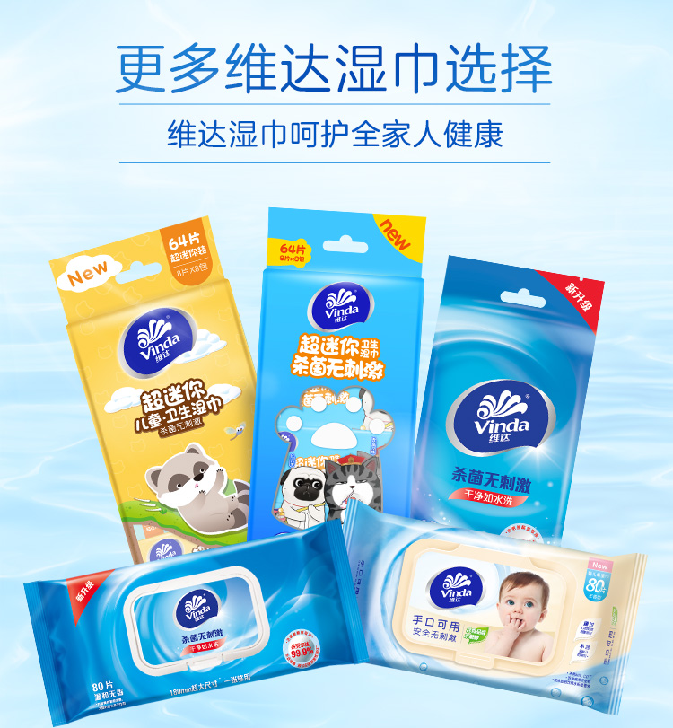 维达(Vinda)湿巾纸巾 超迷你成人湿巾8片*8包 杀菌洁肤卫生湿巾 出门常备