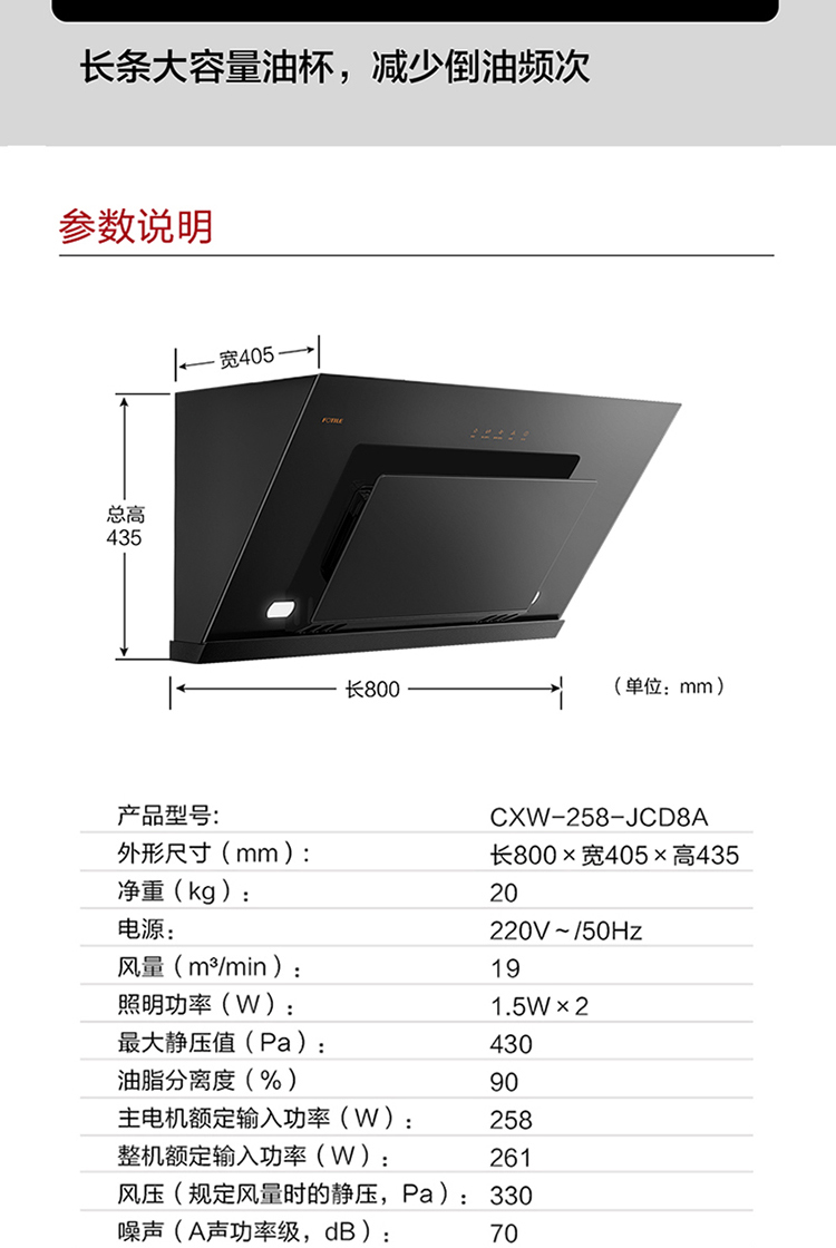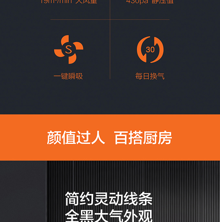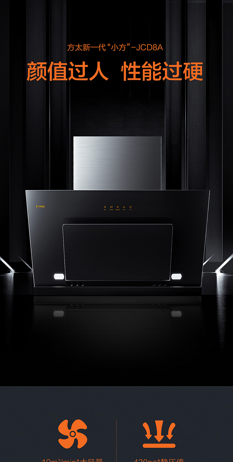 方太油烟机JCD8A 每日换气 一键瞬吸 悬翼式拉附环吸 19立方*风量 方太官方 直营