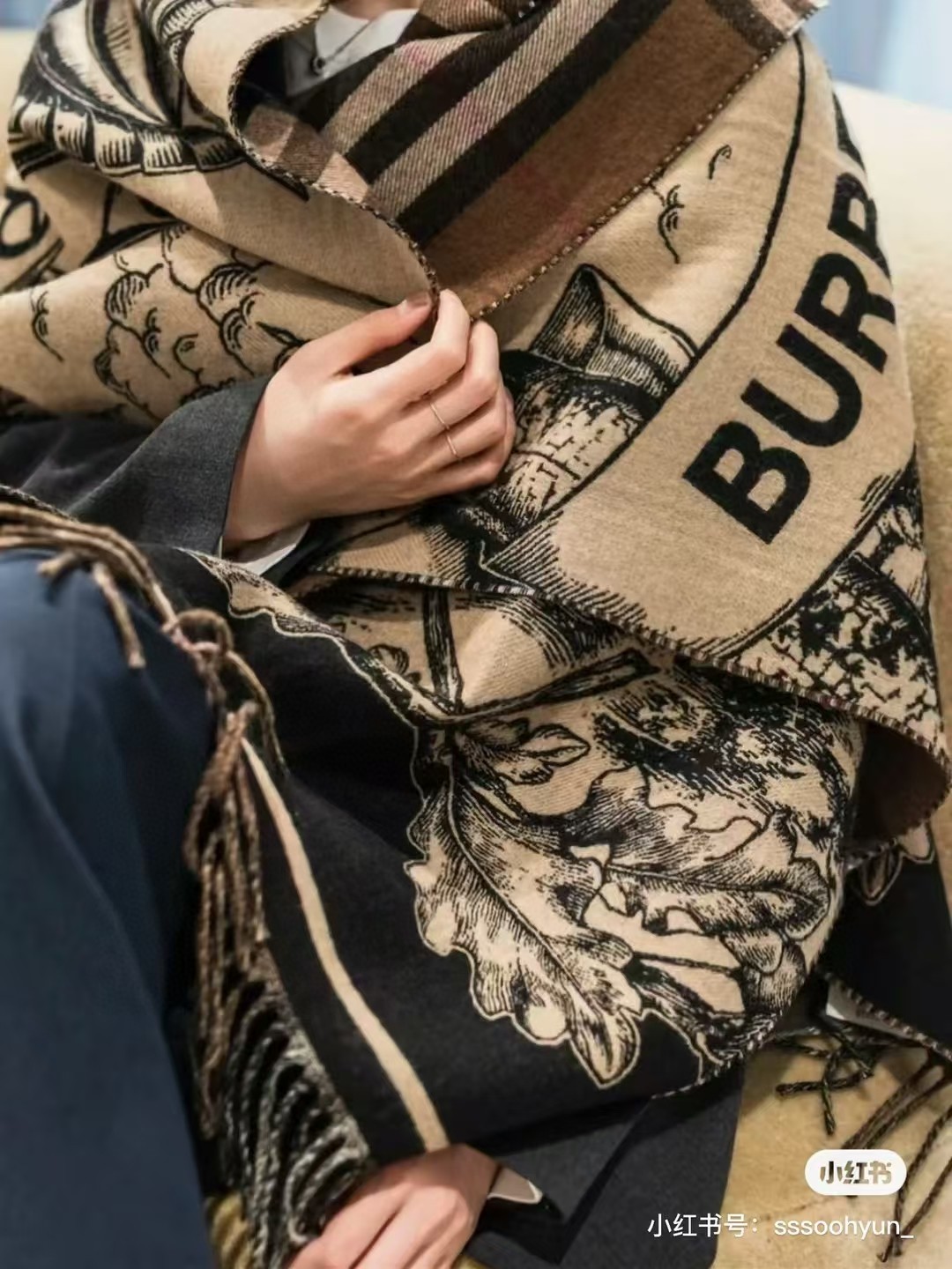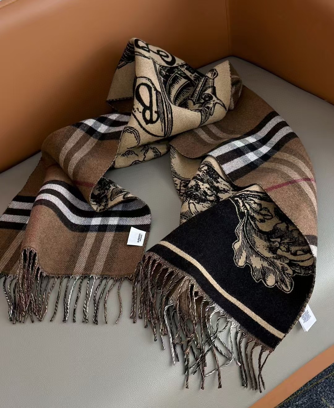 双面可用,一面战马骑士标,一面经典咖色格纹真的好好看,就是那种超有气质的颜色搭配,这款围巾篇幅大小还不错,男女佩戴都毫无压力,既可以做围巾还可以做披肩,一物两用真的很实用~