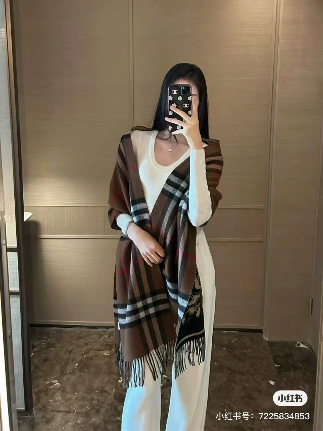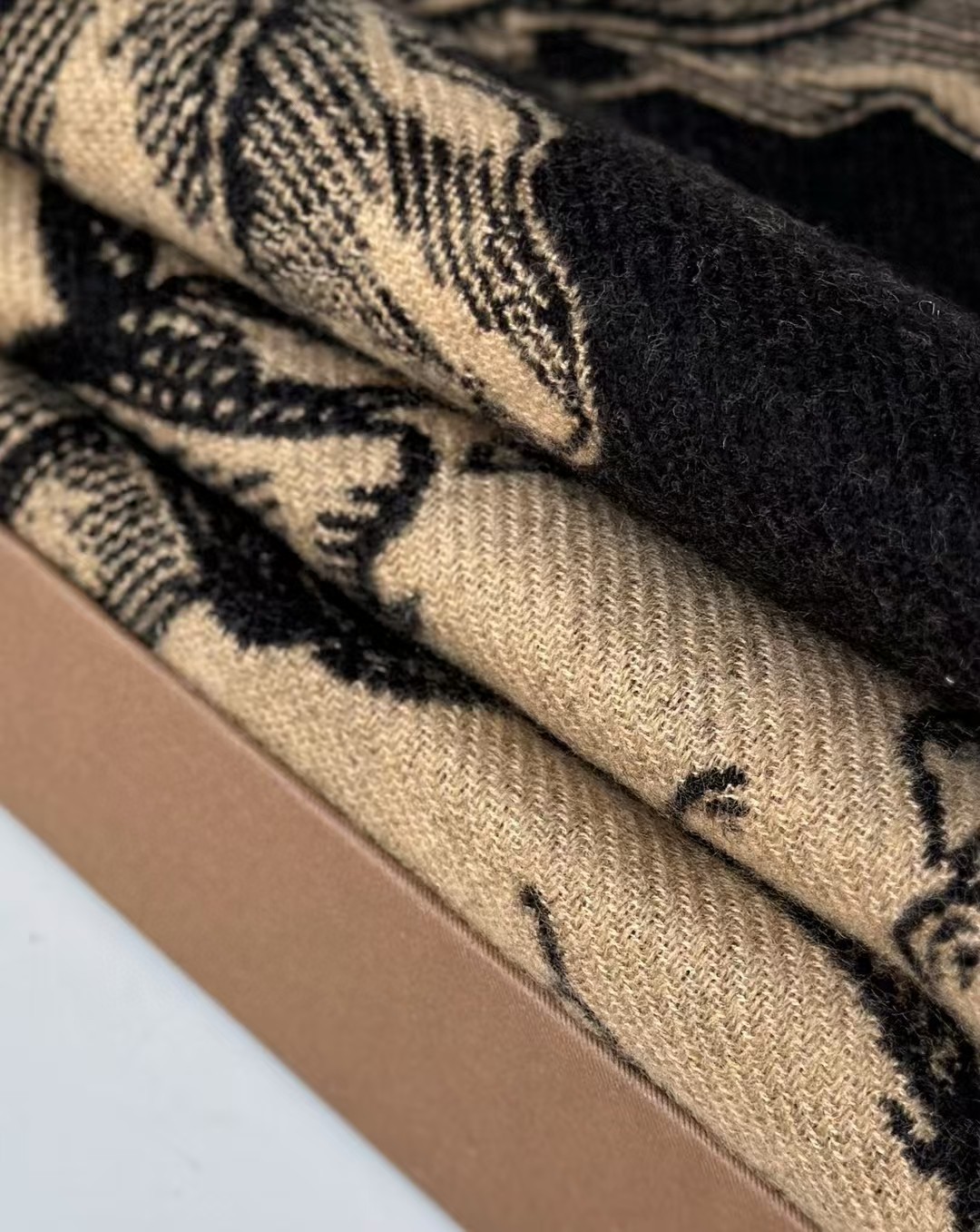 咖色配色搭配秋冬穿搭超显档次,而且很显肤色,高级感立马就出来了,双面提花工艺随便你选,任何一面都有着不一样的视觉效果。100%山羊绒质感柔软细腻,保暖效果超级好,闭眼入吧~