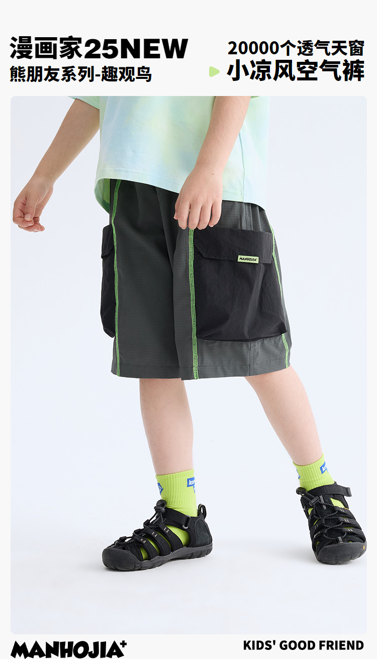 漫画家【轻风裤】儿童短裤夏新品透气撞色工装凉风空气短裤男