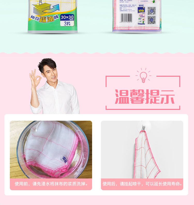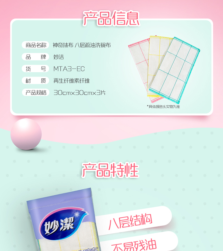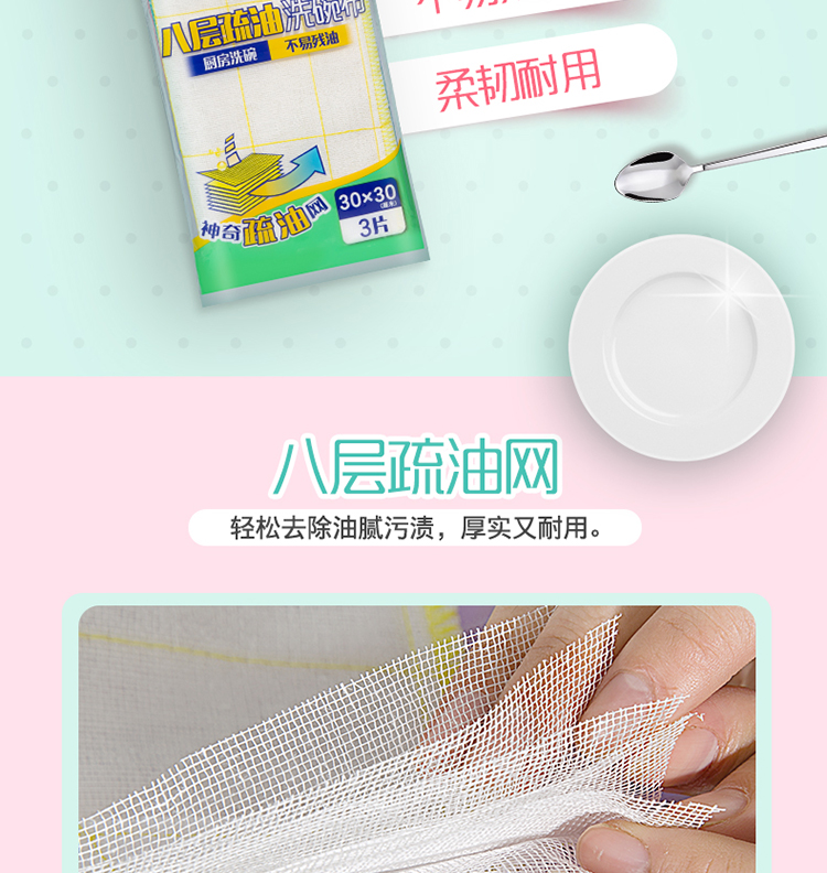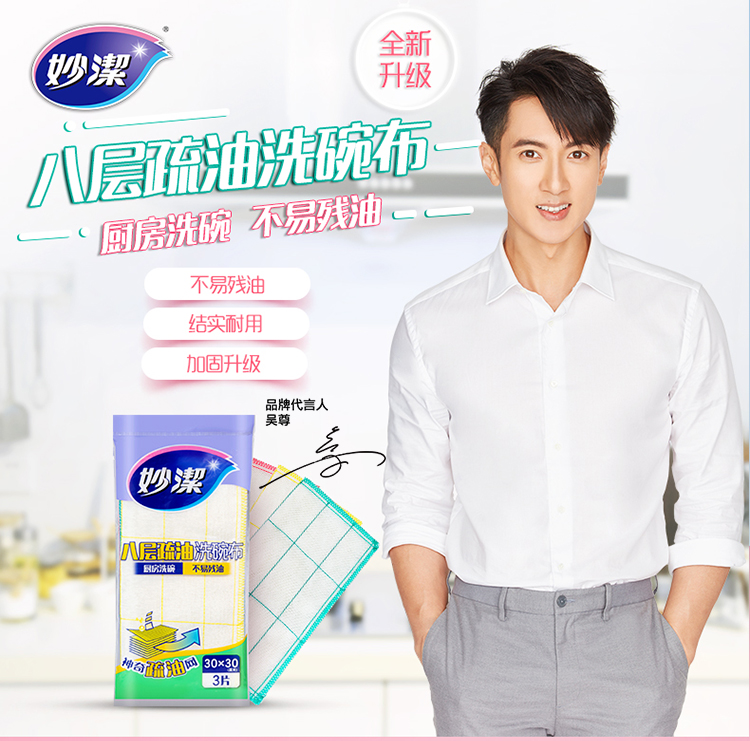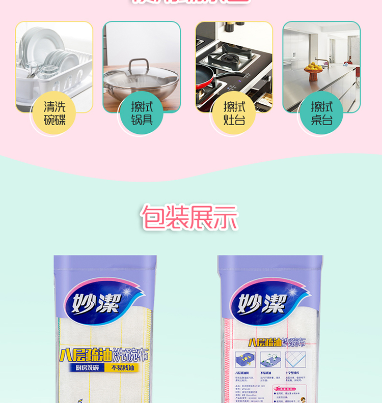妙洁八层疏油洗碗布 去油抹布清洁纤维巾厨房擦地桌子玻璃杯干净不掉毛用品工具 3片装