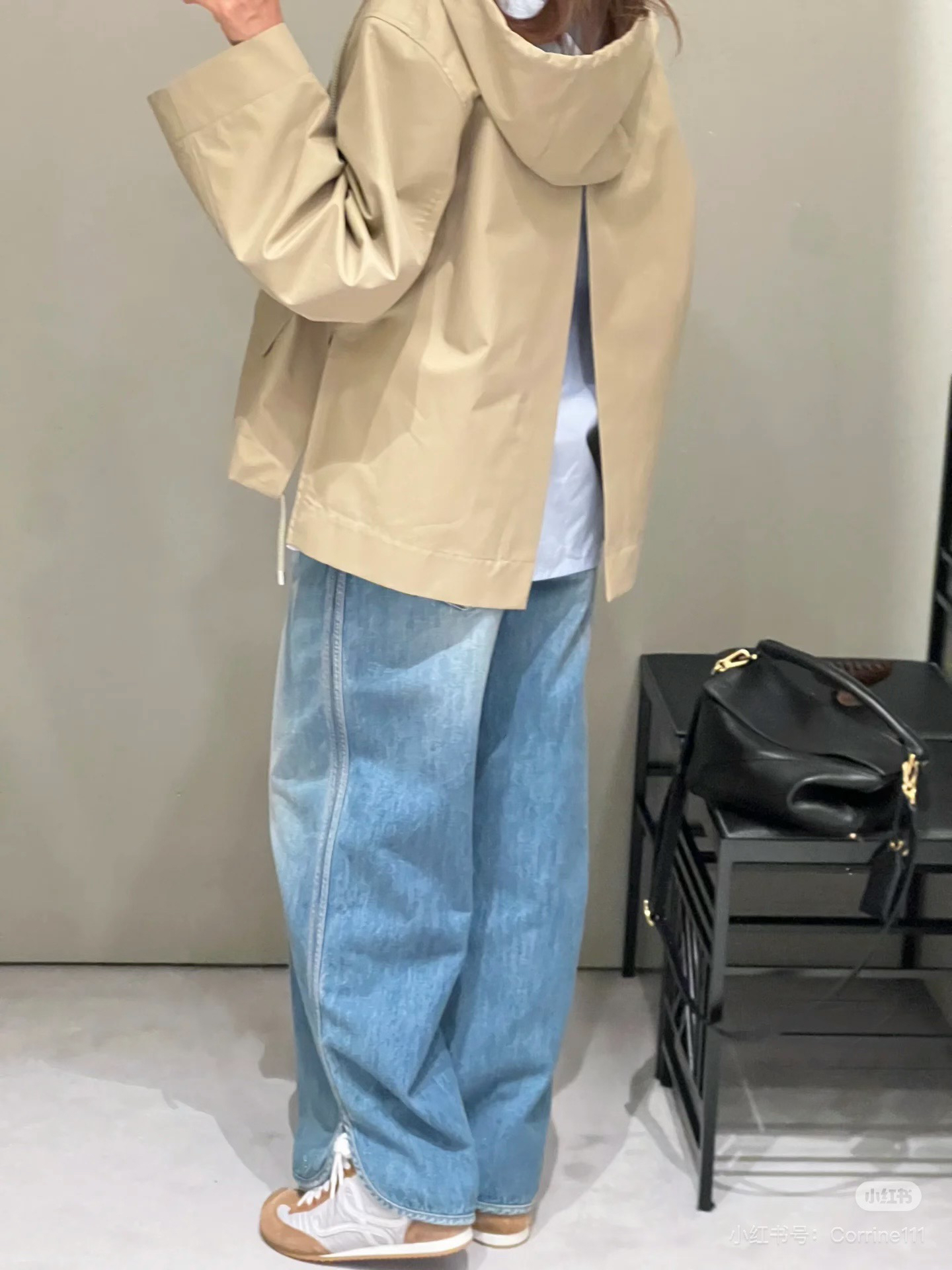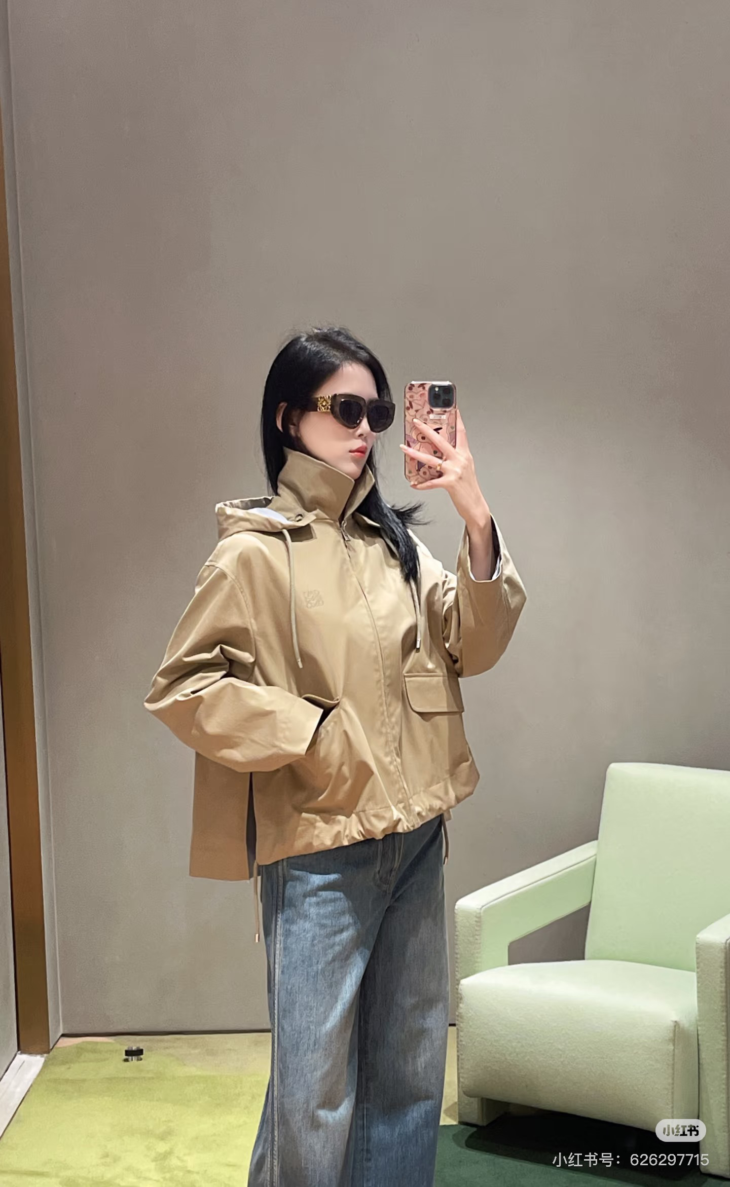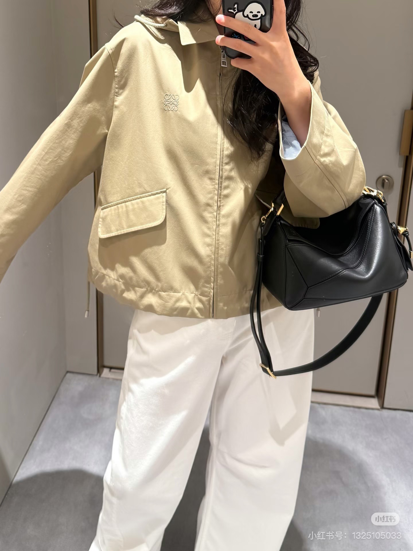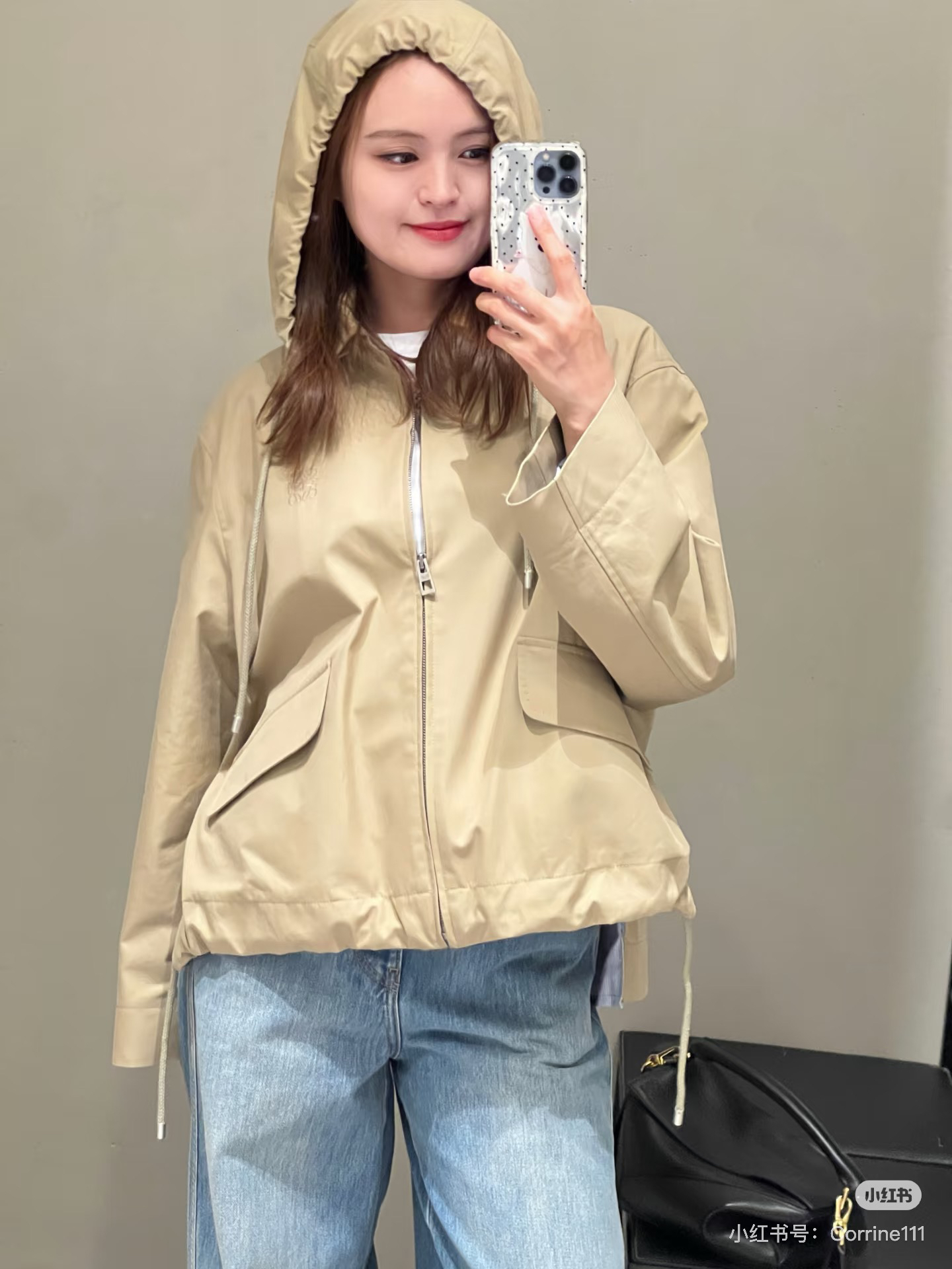 一眼就是心动款LOEWE外套自带工装酷感,卡其色连帽外套自带慵懒滤镜