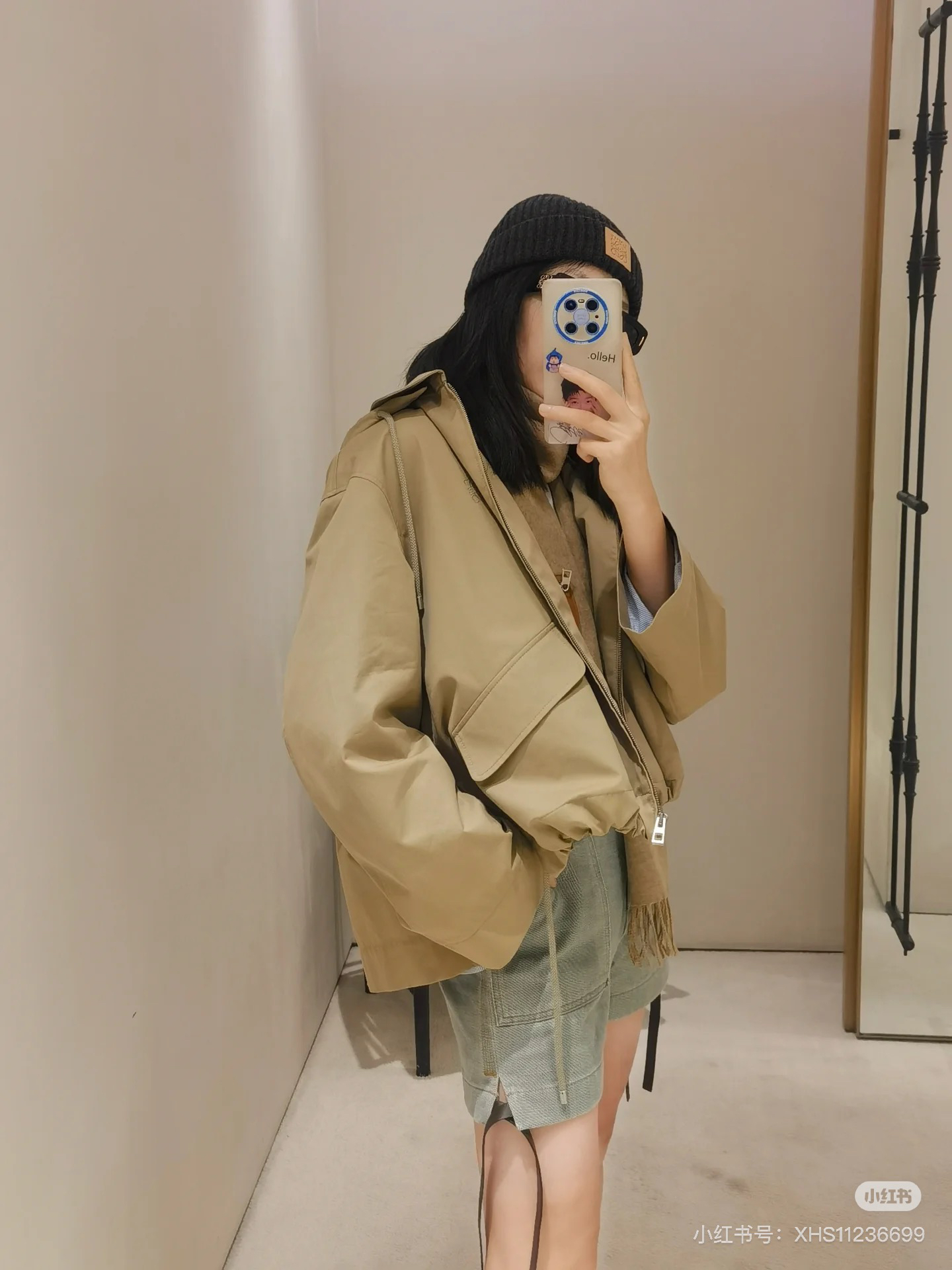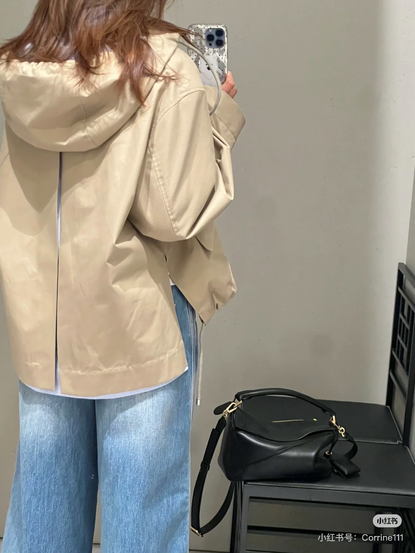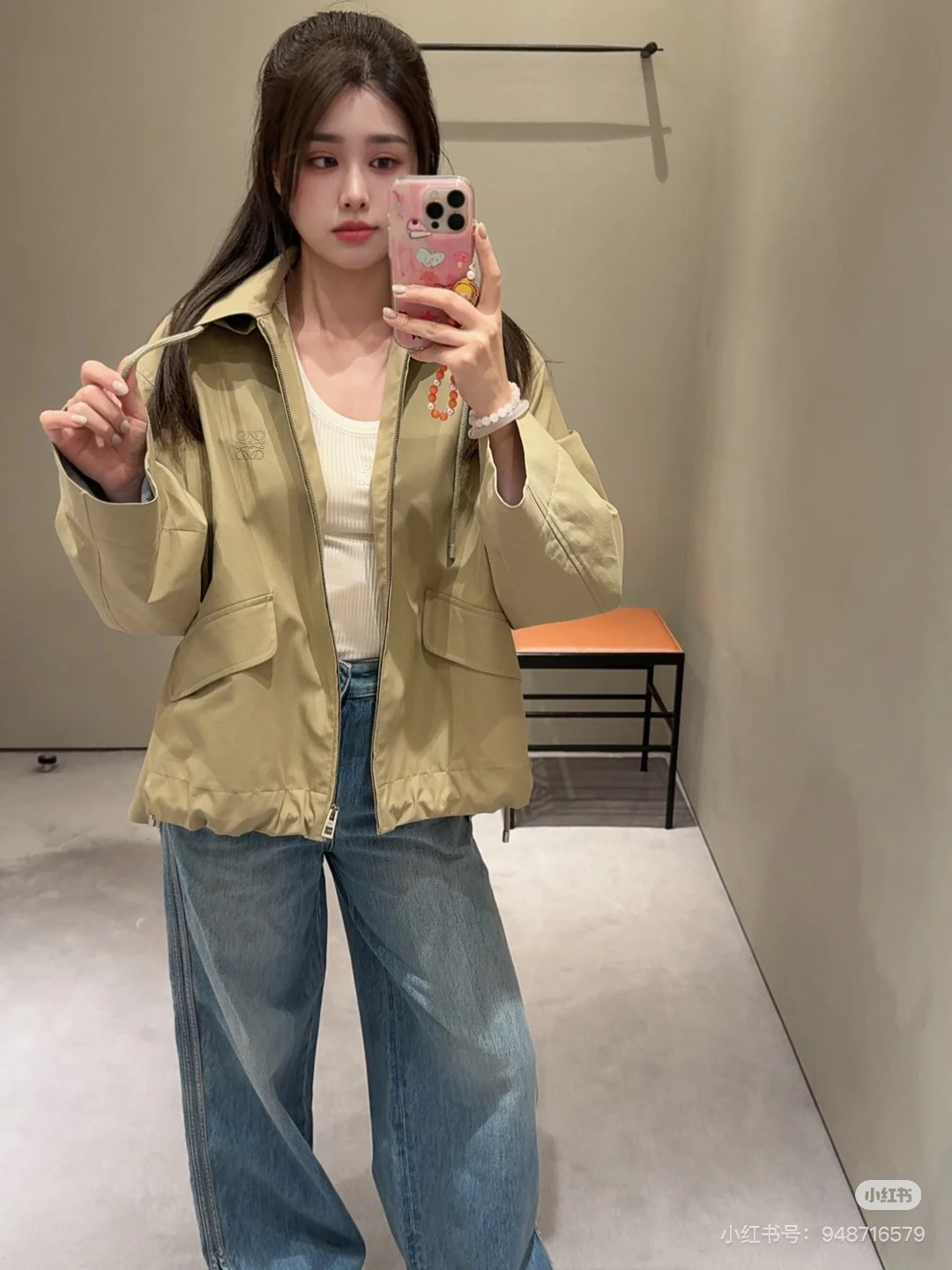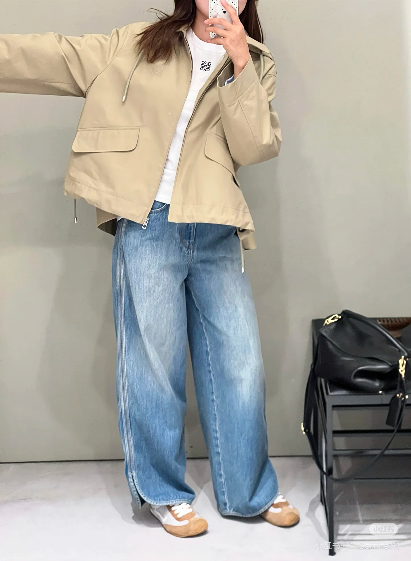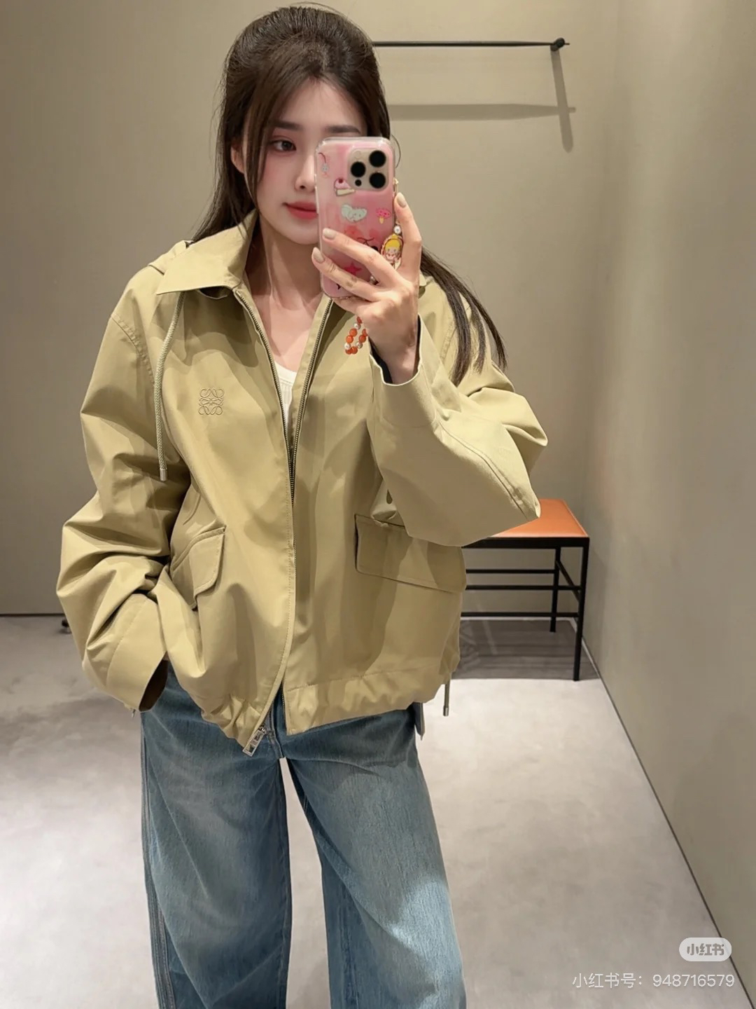 一眼就是心动款LOEWE外套自带工装酷感,卡其色连帽外套自带慵懒滤镜