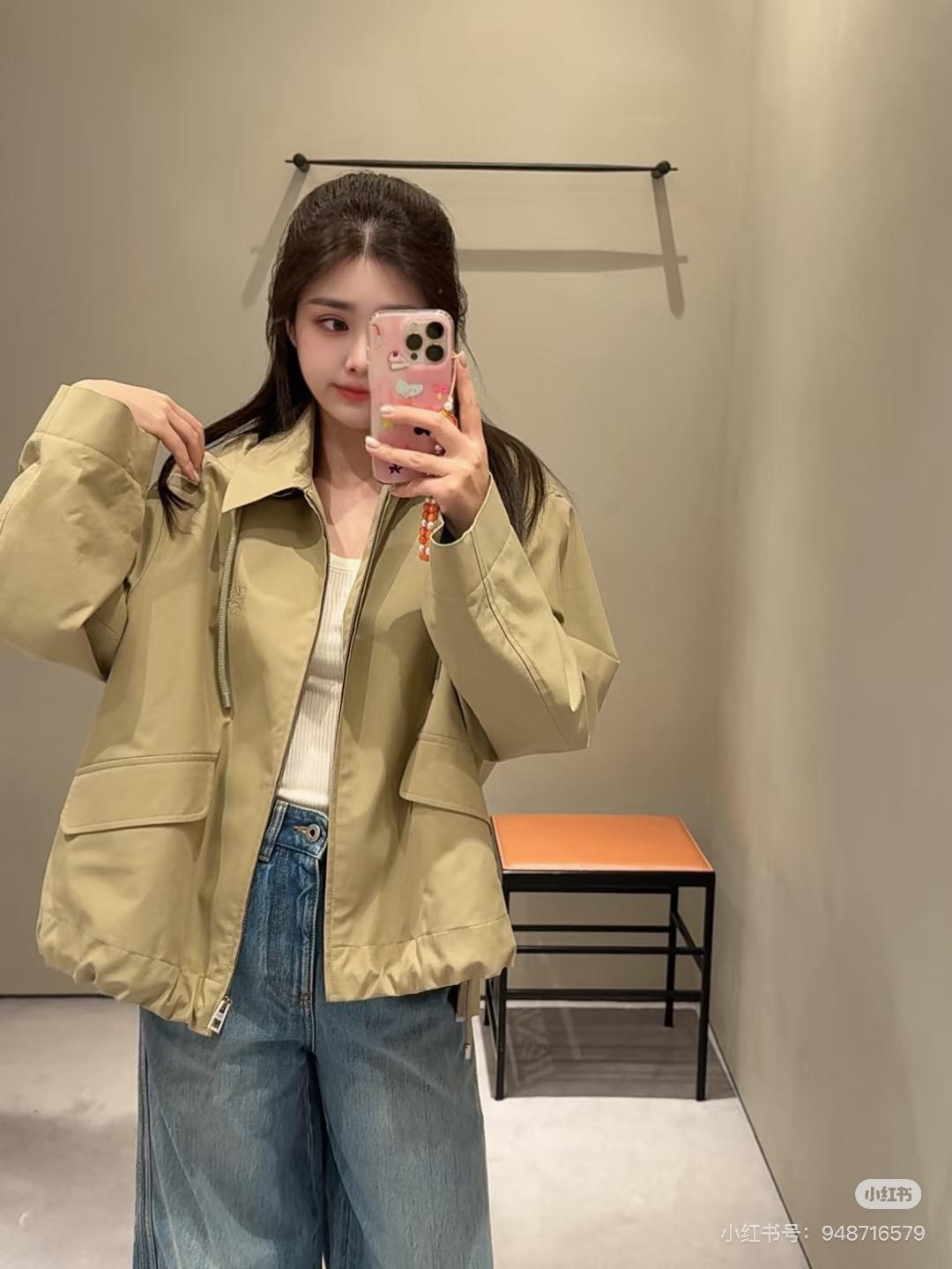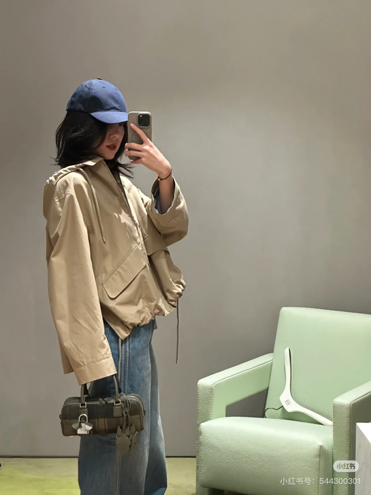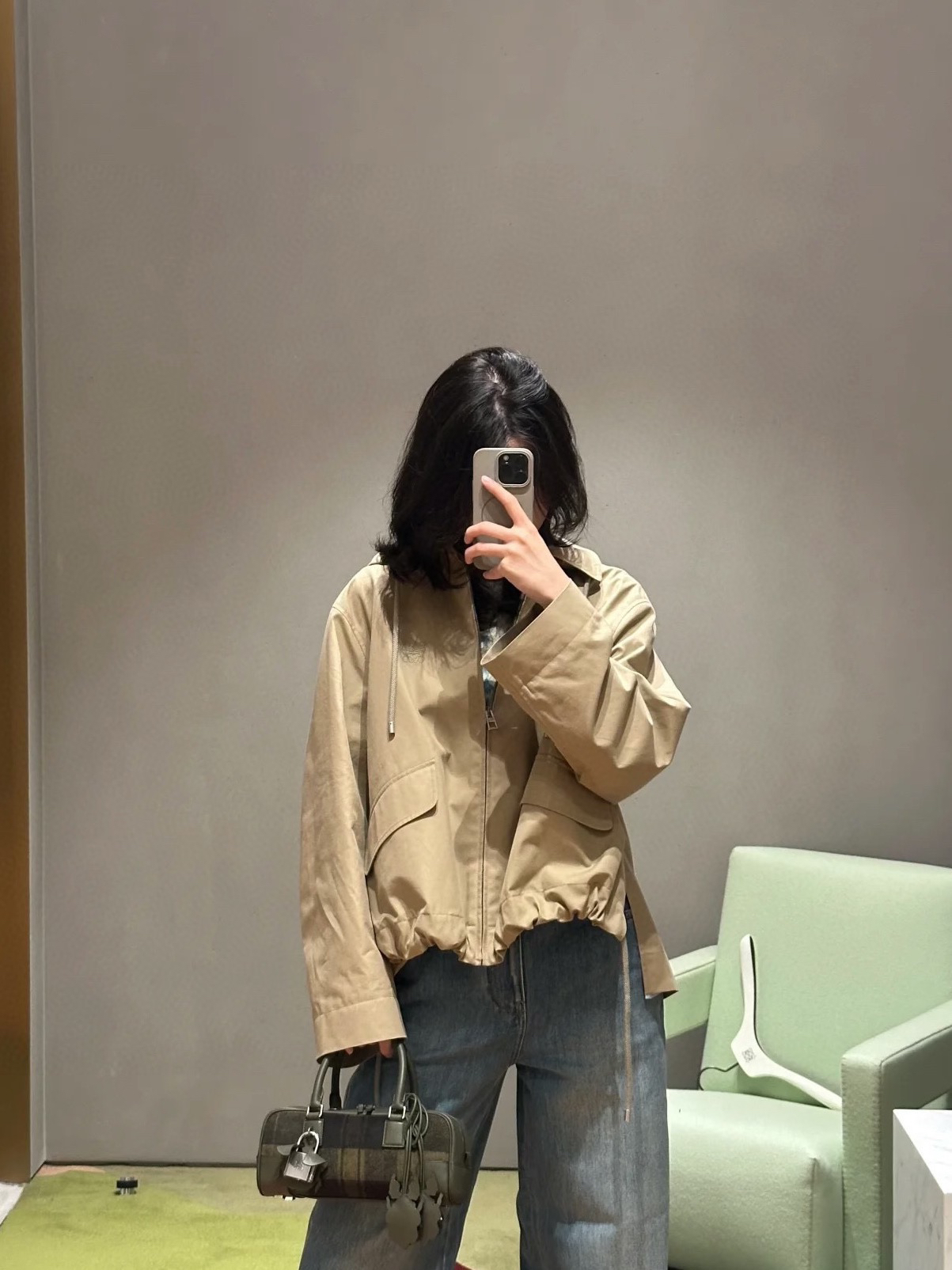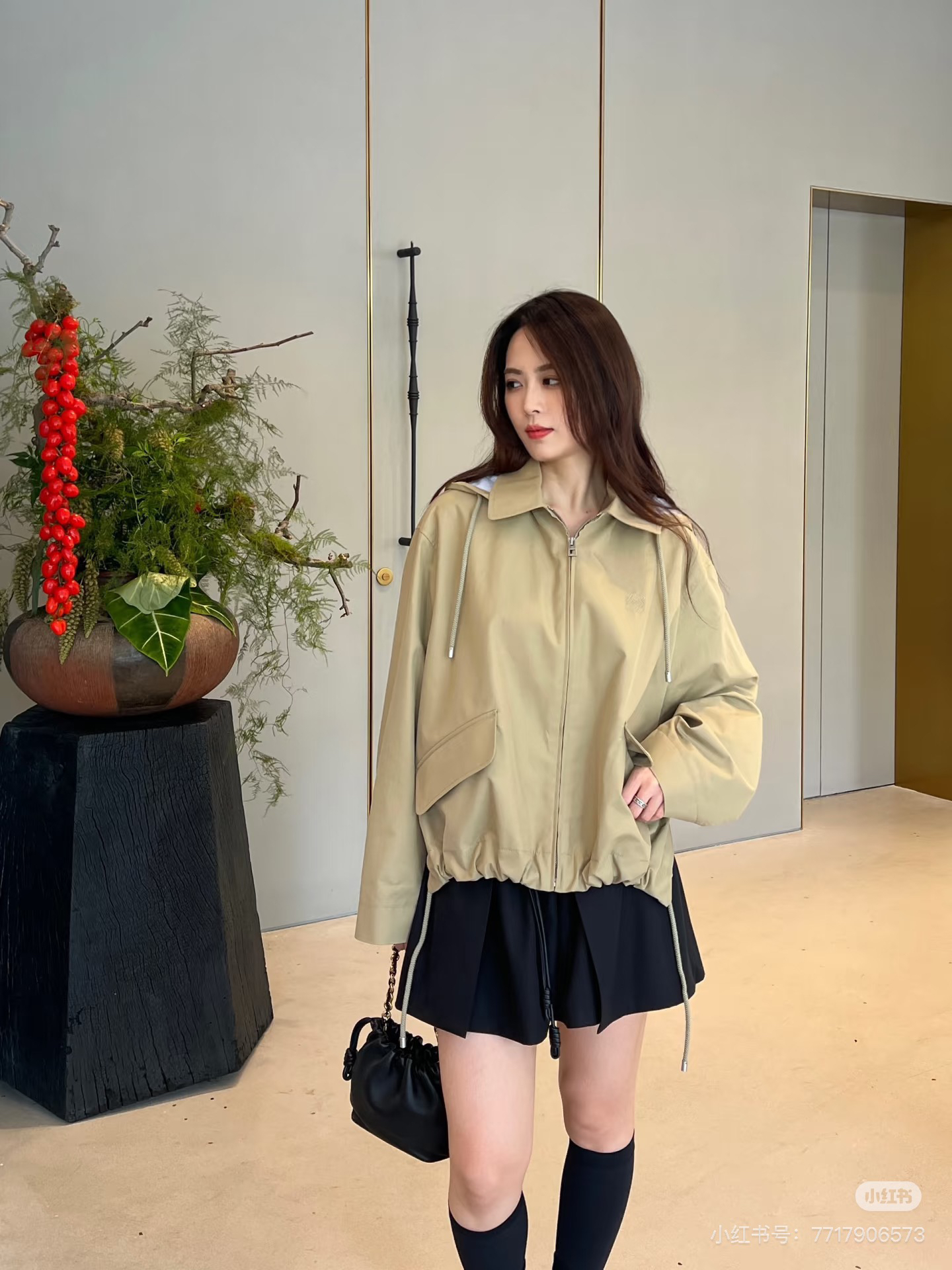一眼就是心动款LOEWE外套自带工装酷感,卡其色连帽外套自带慵懒滤镜